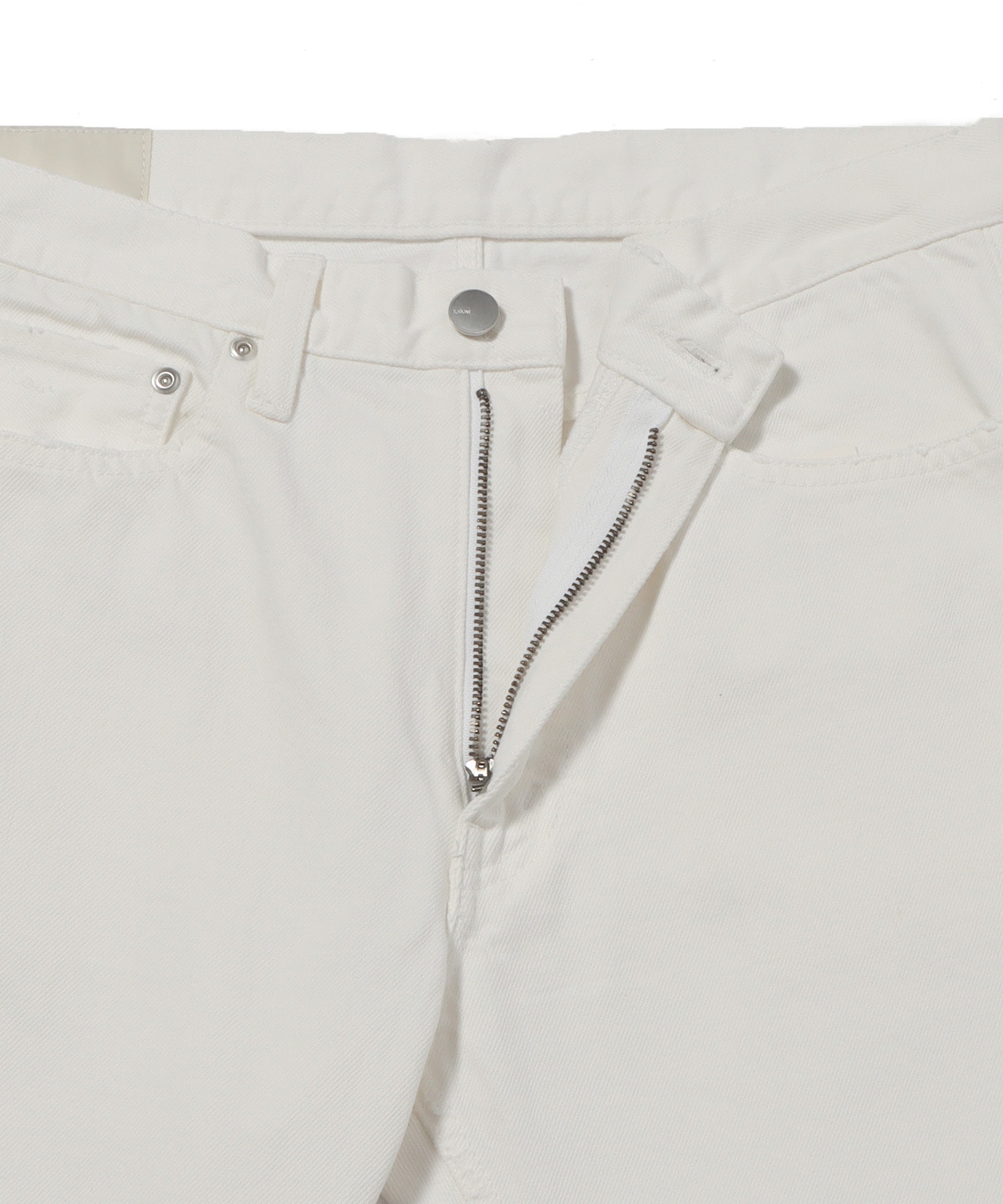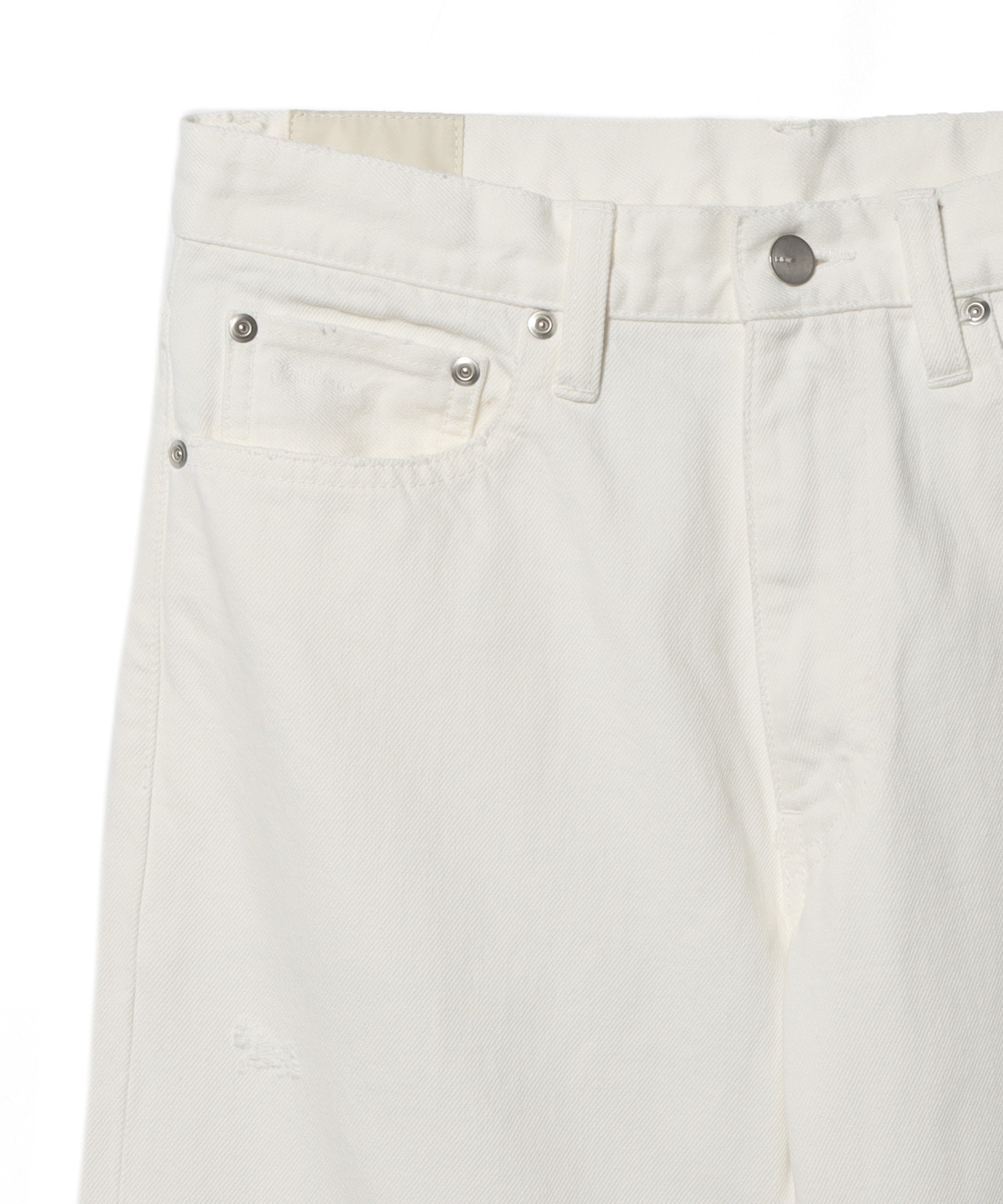 ブリーチ加工を施したホワイトデニムを使用したパンツ。