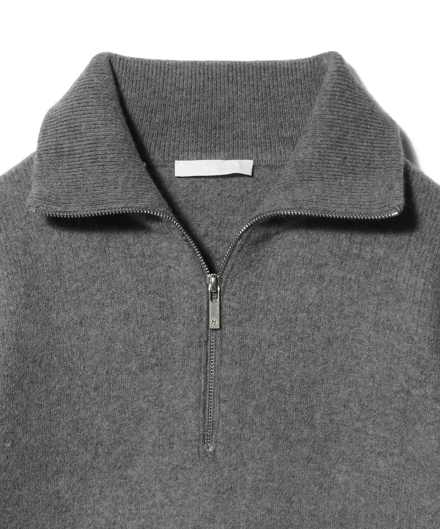 ハーフジップを閉じてタートルネックにしたり、開けて抜け感をだしたりと幅広い着こなしをお楽しみいただけます。