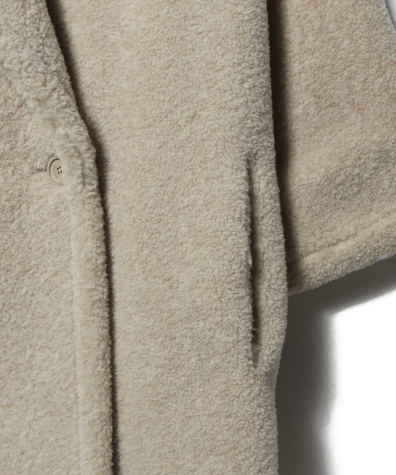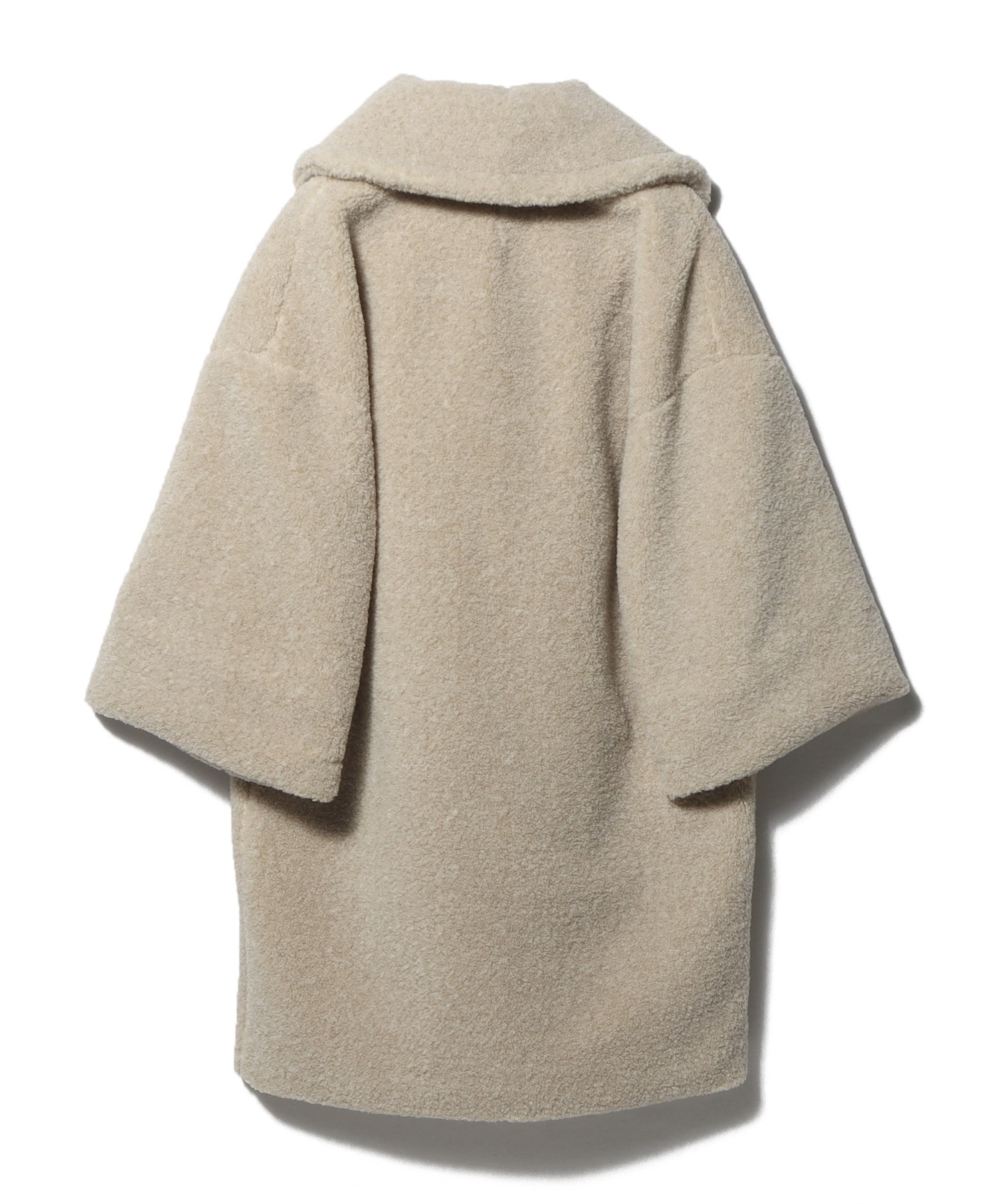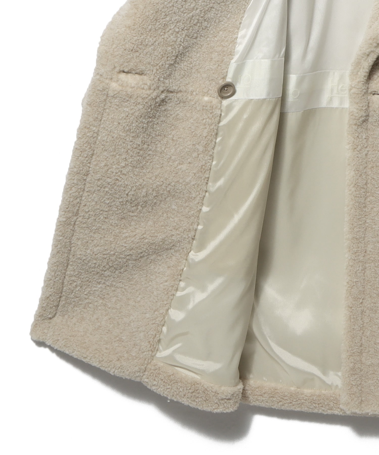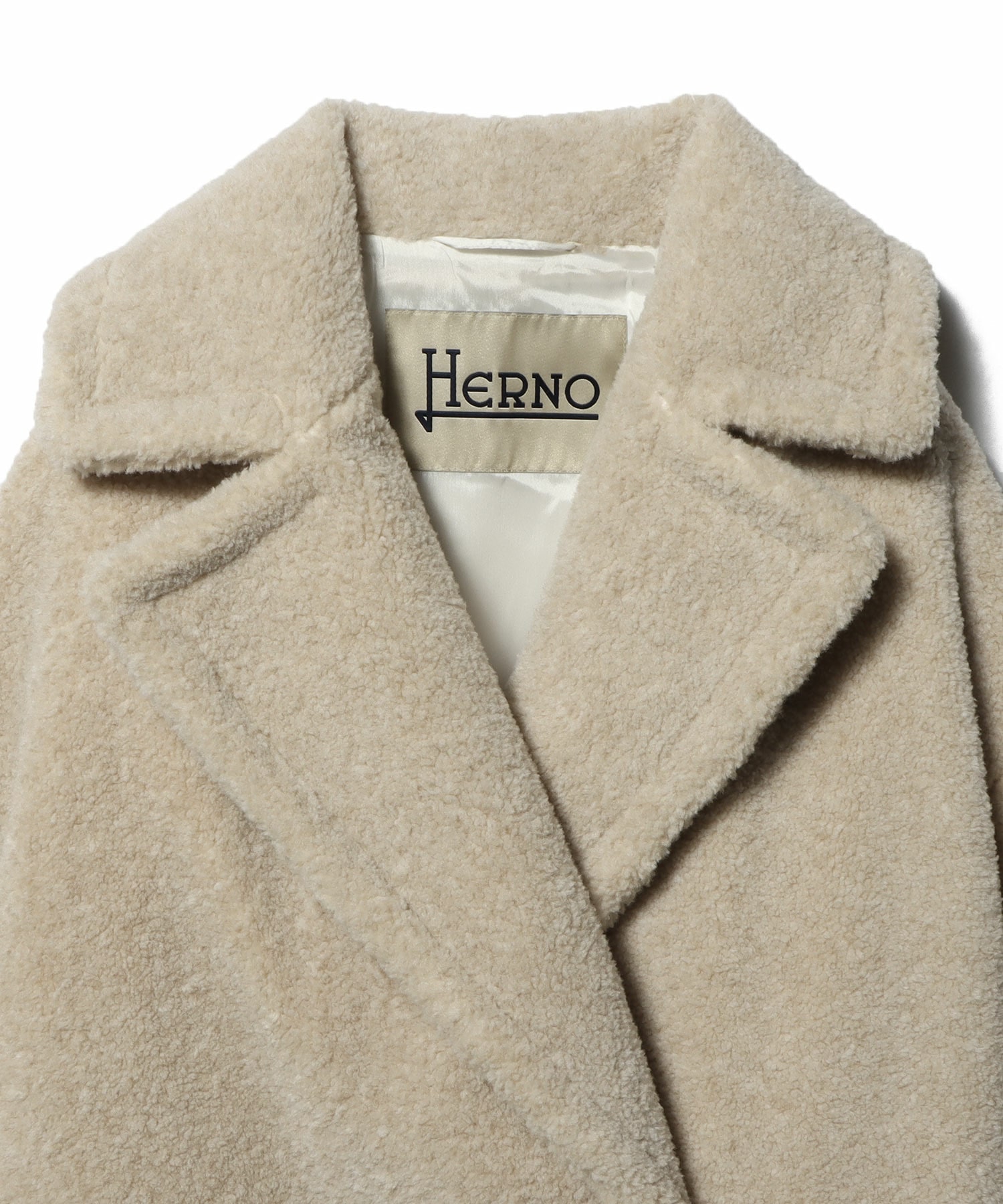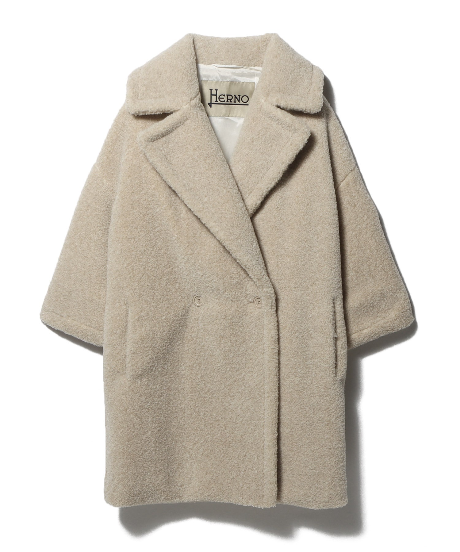 ポリエステルのカールボア素材「MELANGE TEDDY」を使用したHERNOの7分袖ダブルコート。