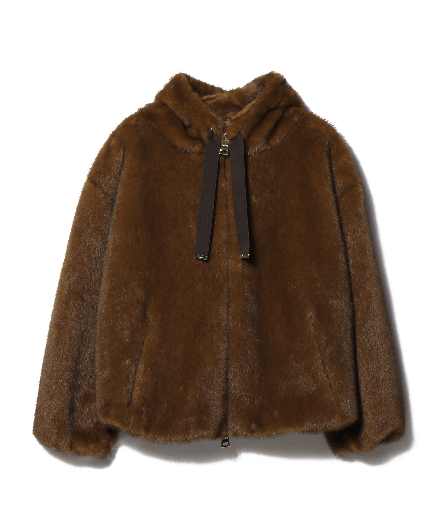 毛足を絶妙な長さにすることで高級感のある艶としっとりとした柔らかな肌触りが特徴です。ボリューム感のあるフードや、肩から袖口にかけて緩やかに広がる立体的な袖のデザイン。体を柔らかく包み込むようなシルエットで非常に軽い着用感のラグジュアリーな1着です。