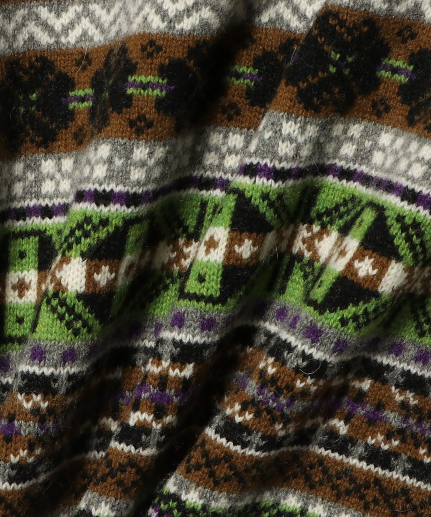 鮮やかな配色の糸を使用し、伝統的な柄を現代的にアレンジしたオリジナルのジャガード柄。シェットランドのような素材ですが柔らかく、着れば着るほど体に馴染んでいき長く愛用していただけるニットです。