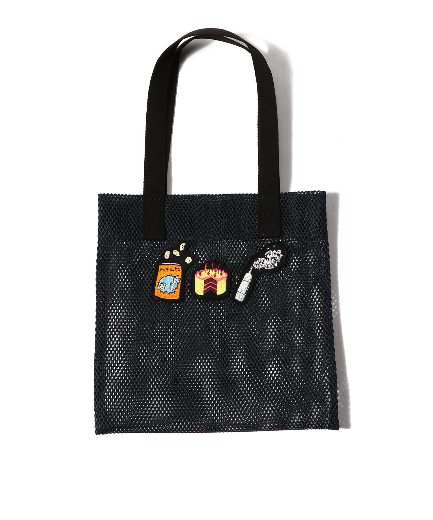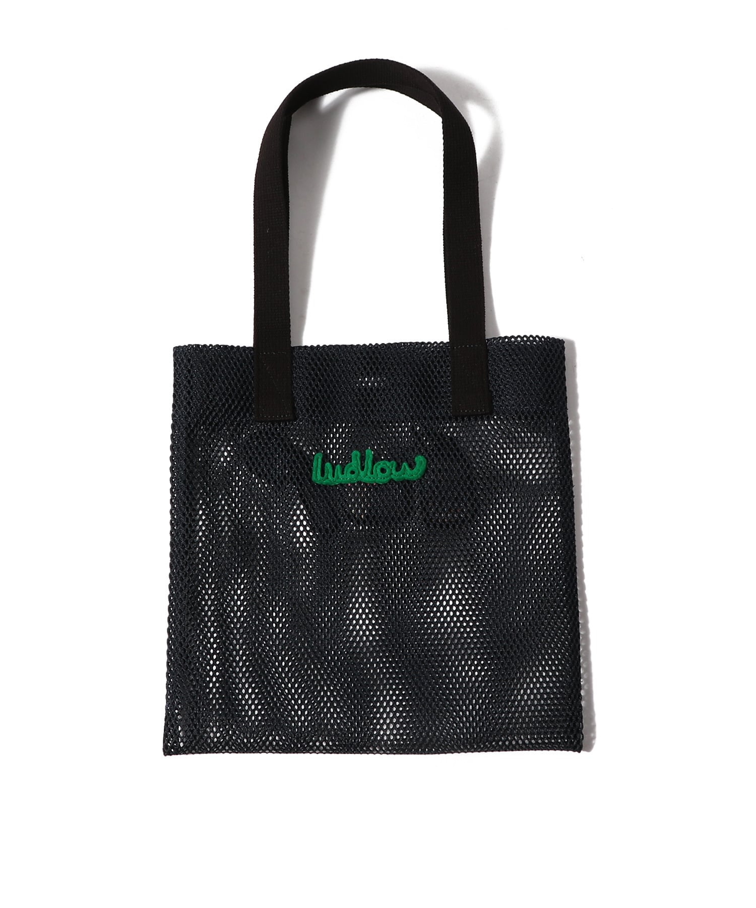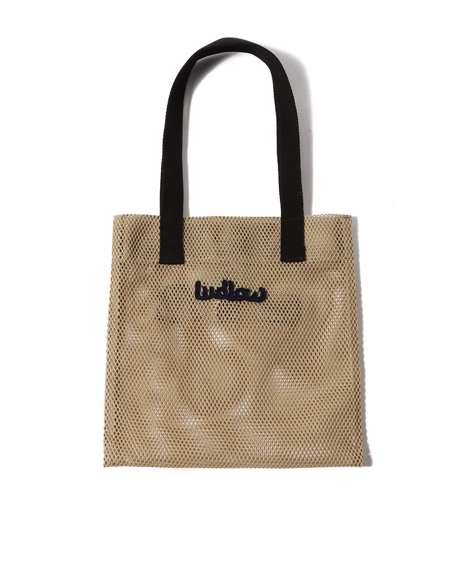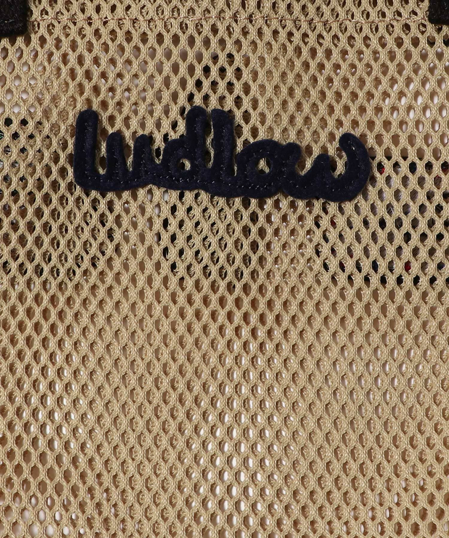 チャーミングなワッペンが目を引く、ラドローのメッシュミニトート。