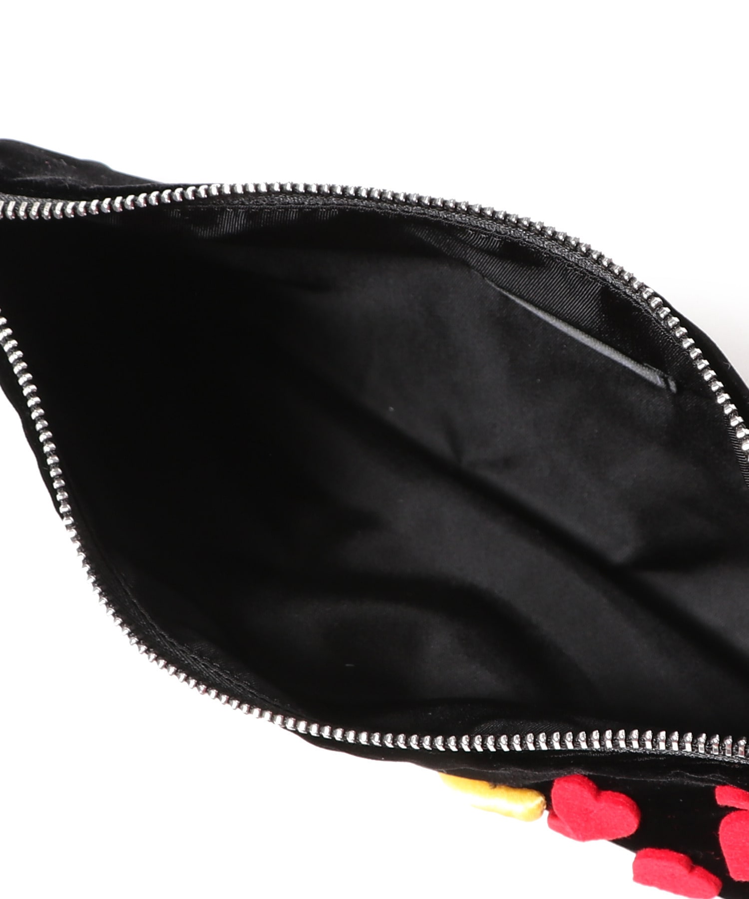 ハートがあふれるタクシーモチーフが愛らしい、ベルベット素材の横長ポーチ。