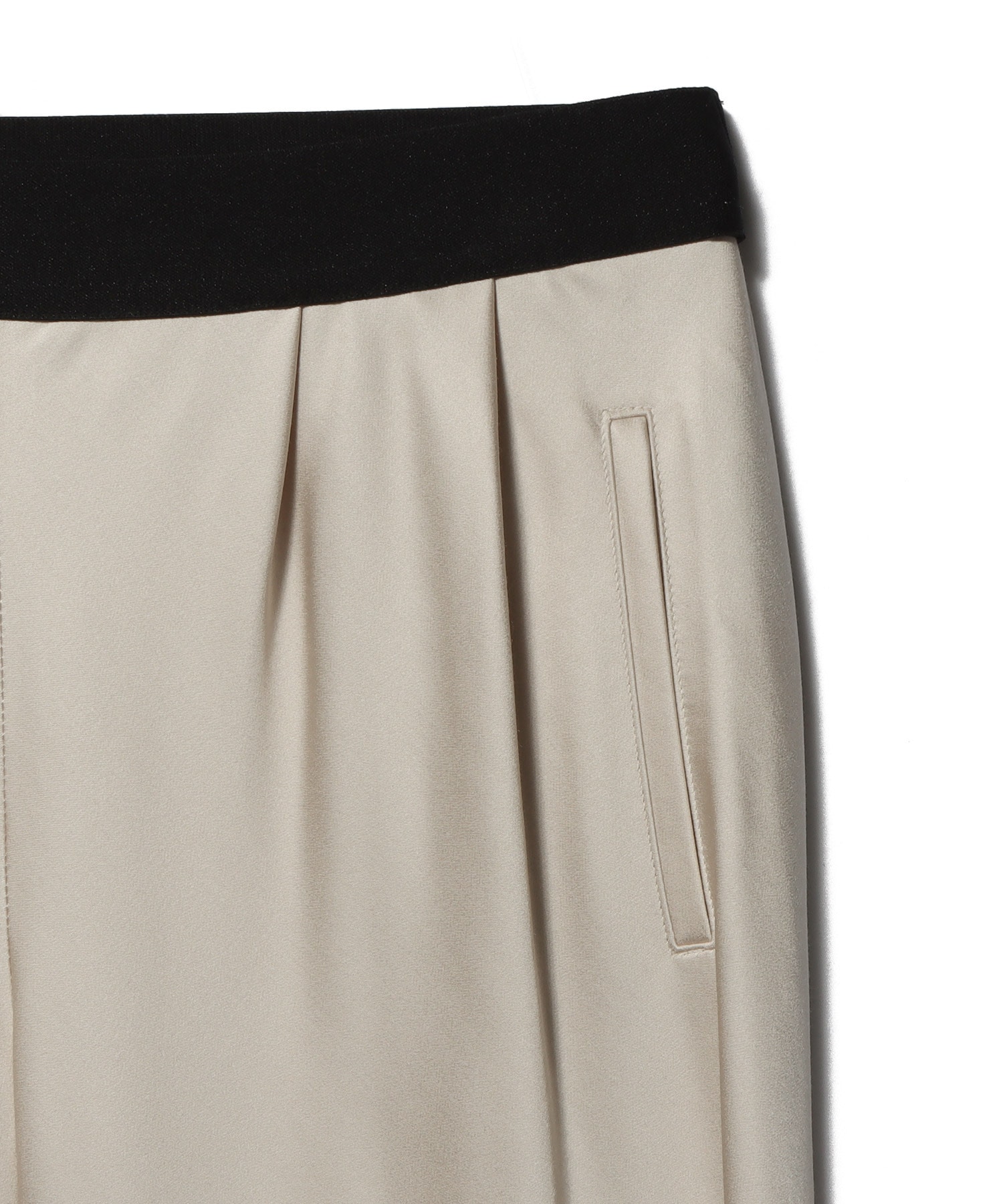 レーヨン特有の上品な光沢に、ウールの温かみをプラスした高級感あふれるテーラードパンツ。