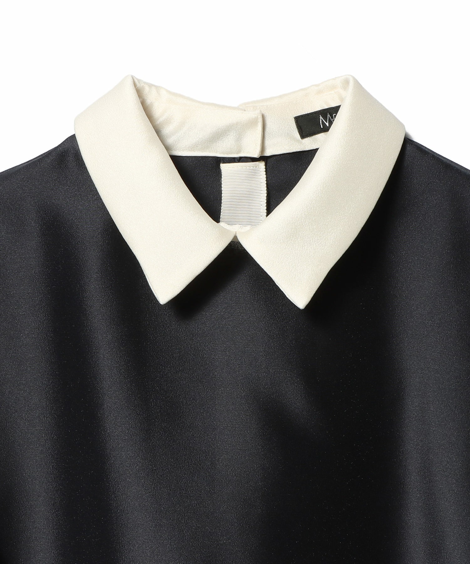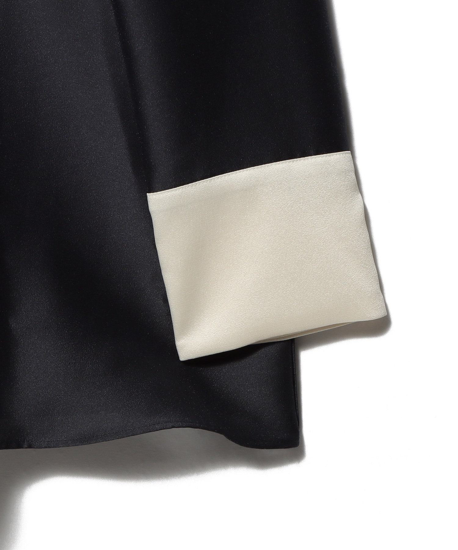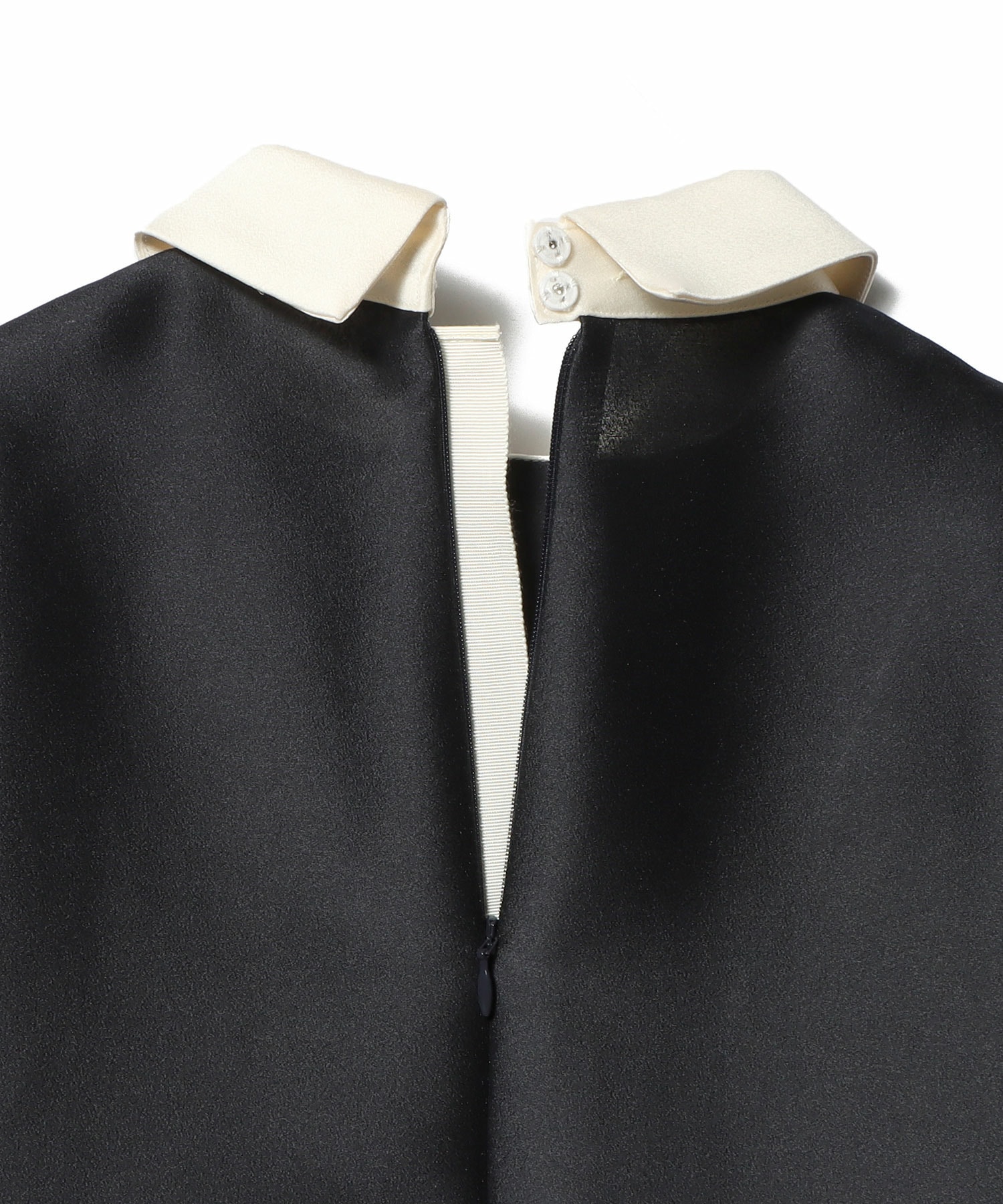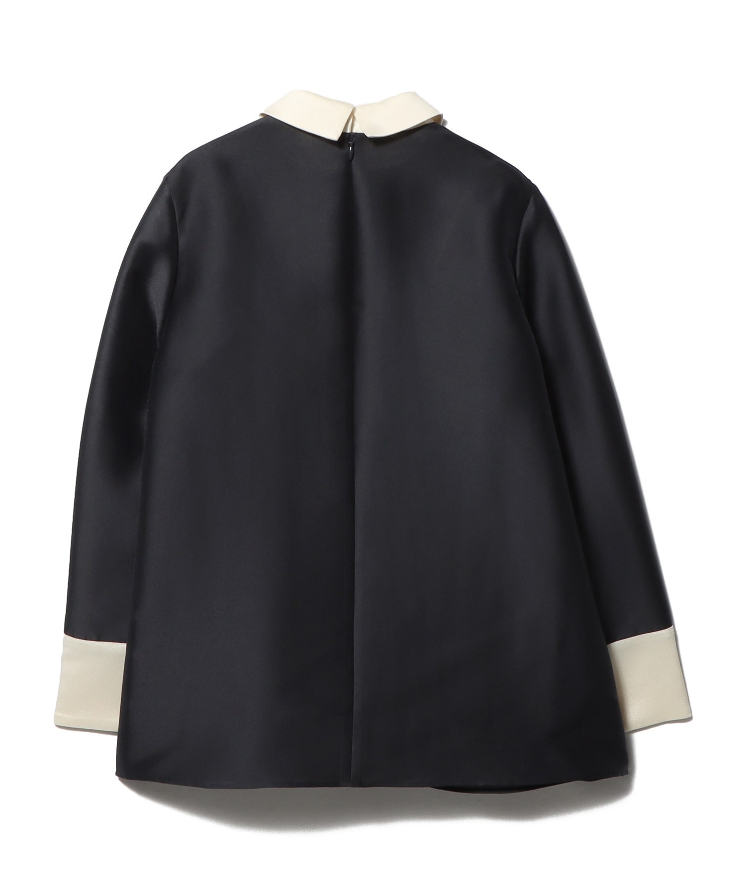 コントラストの効いた配色デザインが目を引き、クラシカルで大人っぽい印象に。小さめでシャープな衿元が甘さを抑え、どこかマニッシュなニュアンスもプラスされています。
