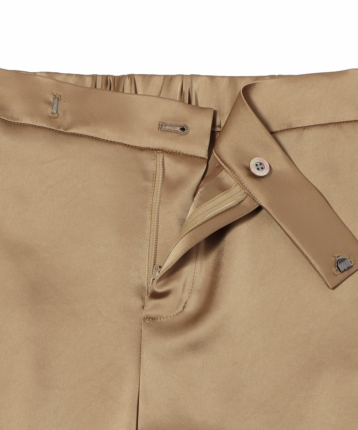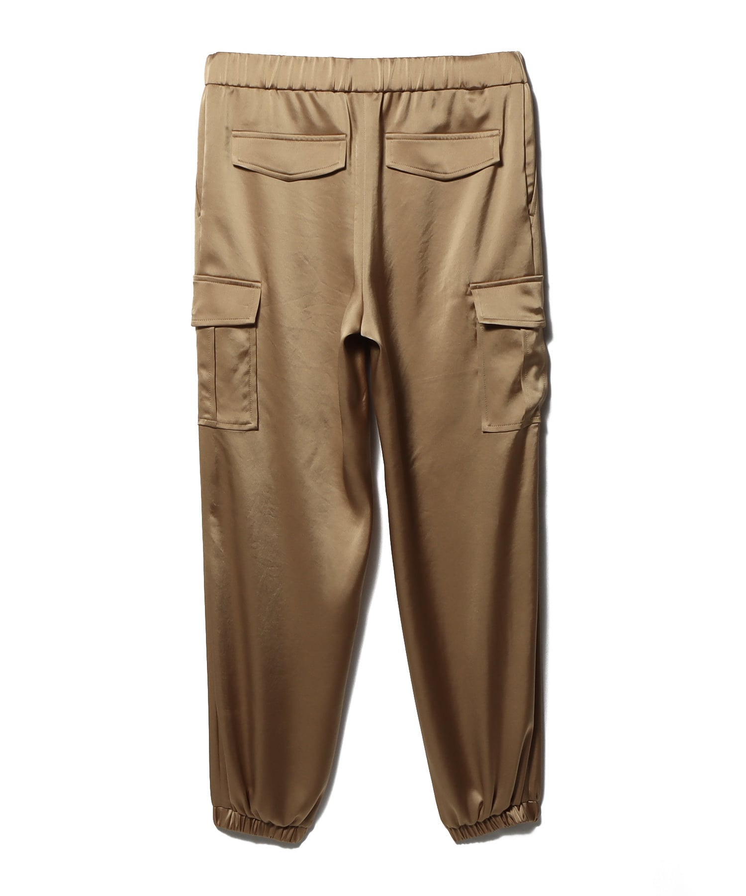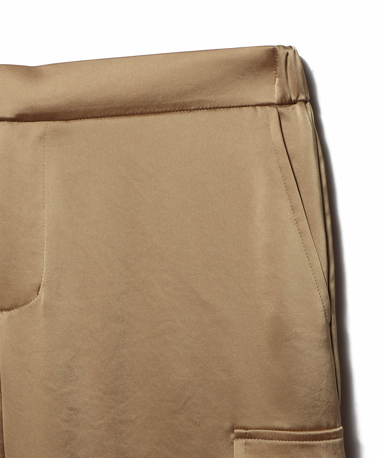 カジュアルなカーゴデザインに艶やかなサテン素材を採用することで、スポーティーさとエレガンスが共存する洗練された一本に仕上がっています。