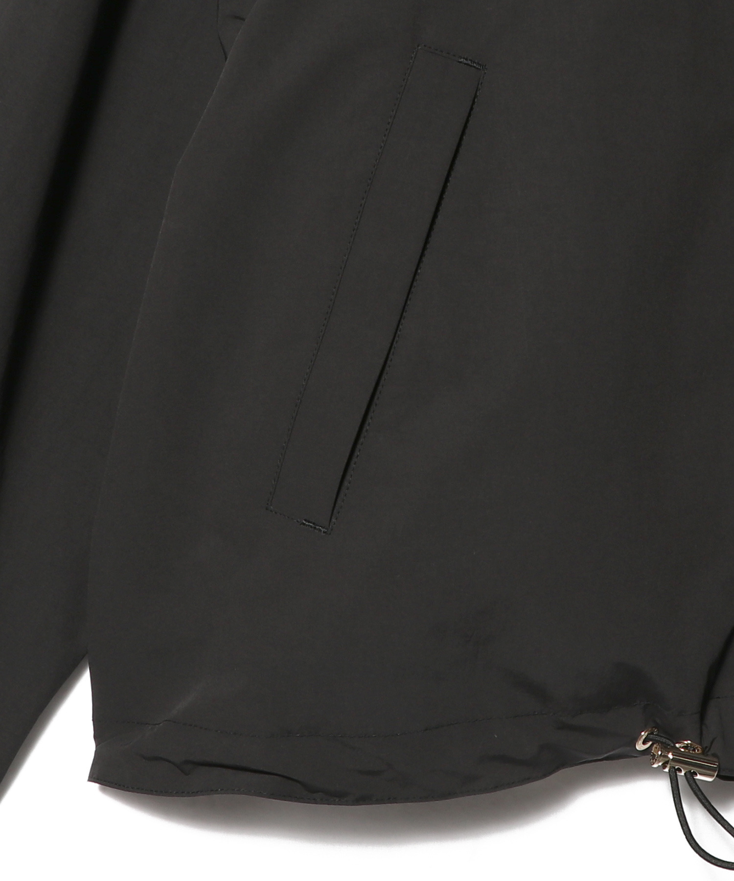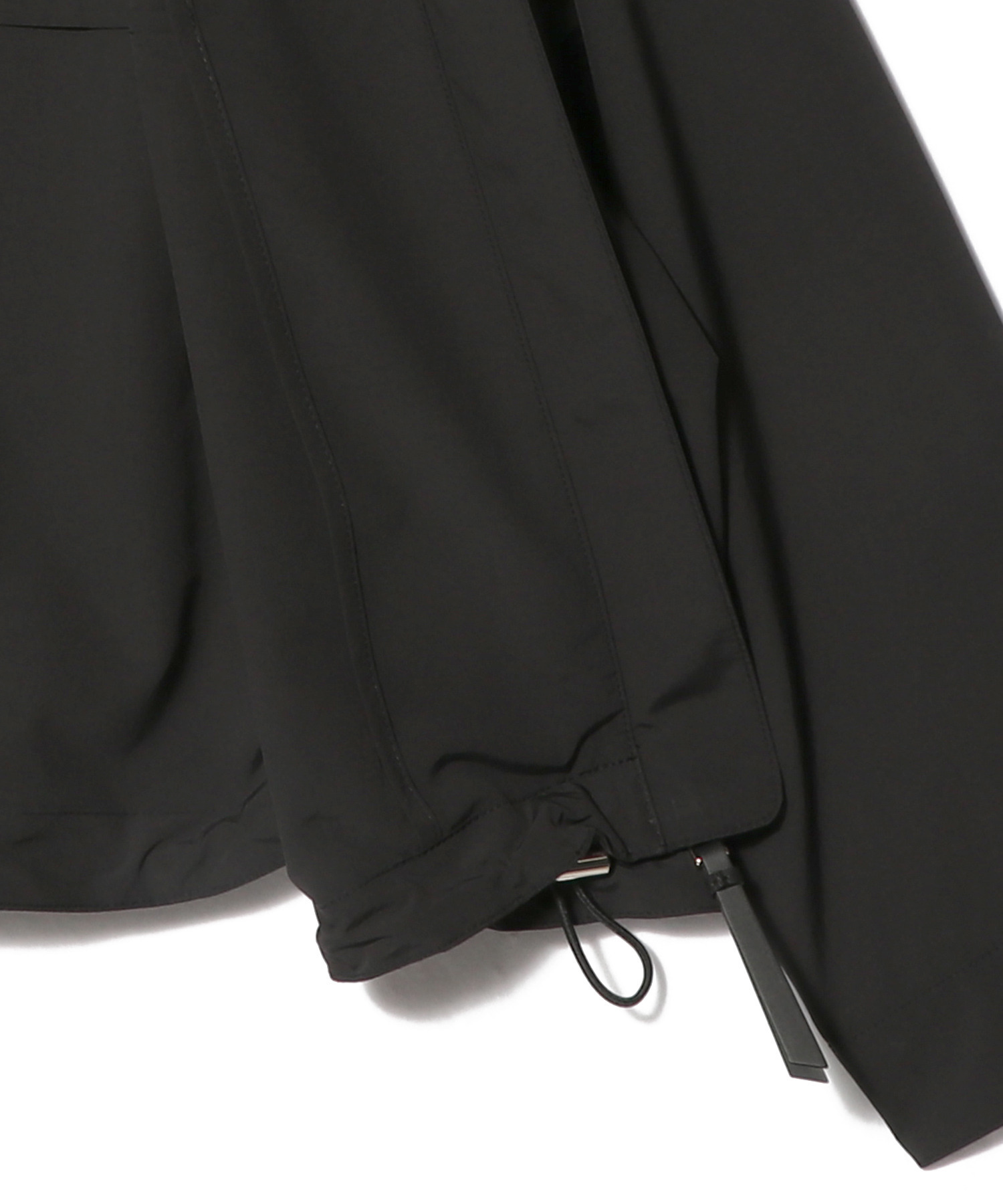 適度なハリのあるポリエステル素材で、裾はドローコードで調節可能。