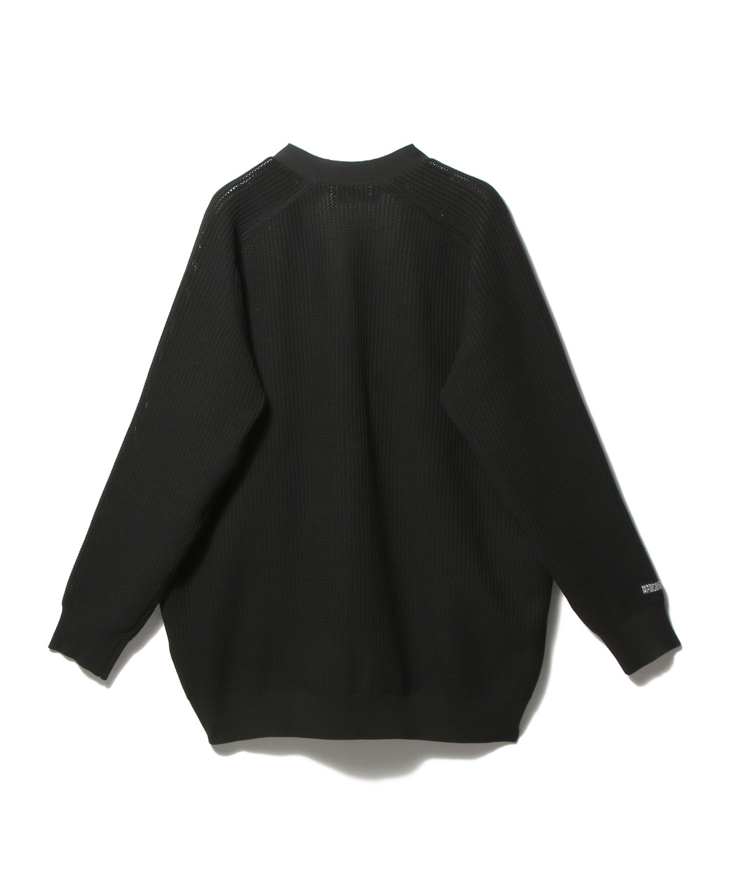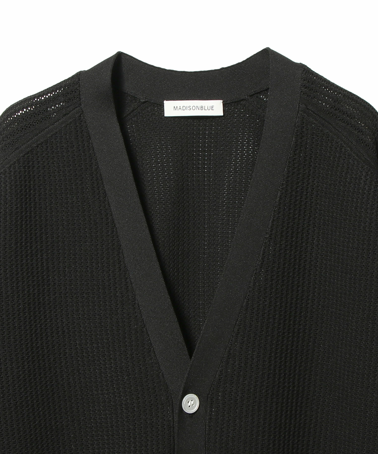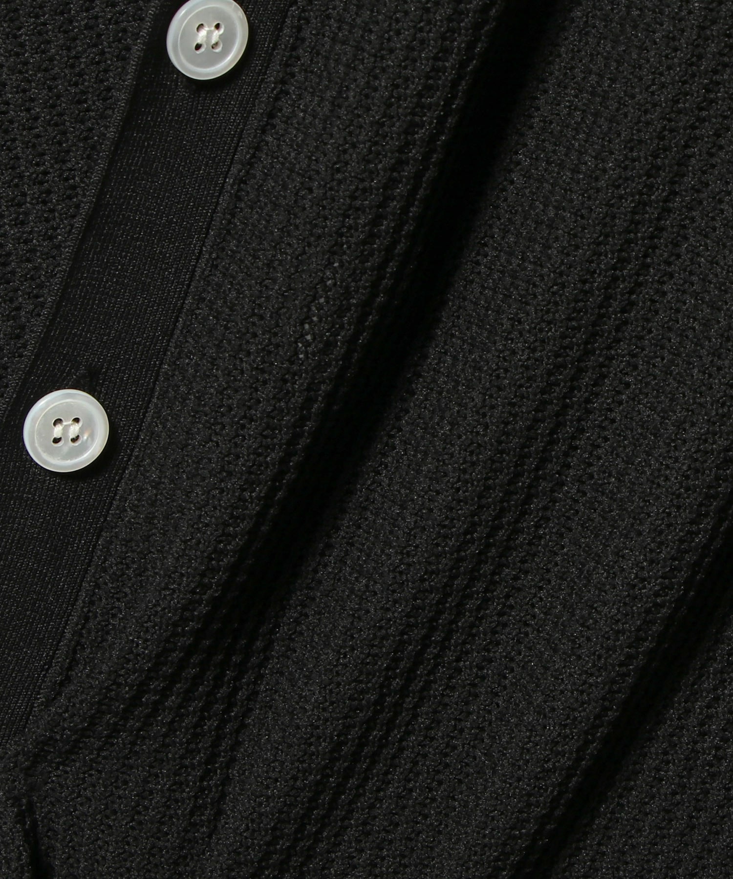 軽量でドライタッチなポリエステル糸を使用し、スポーティなメッシュ感を表現したVネックカーディガン。