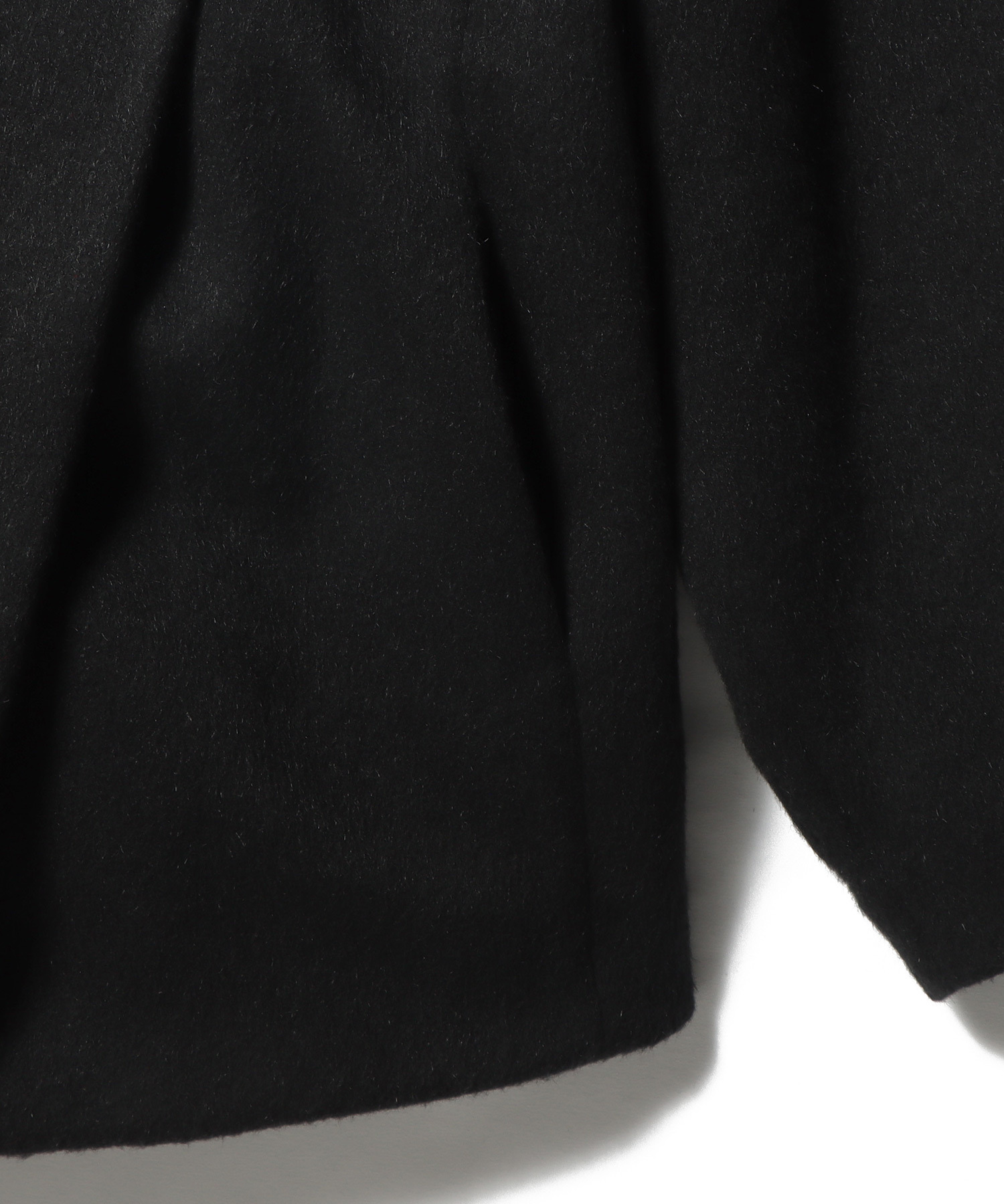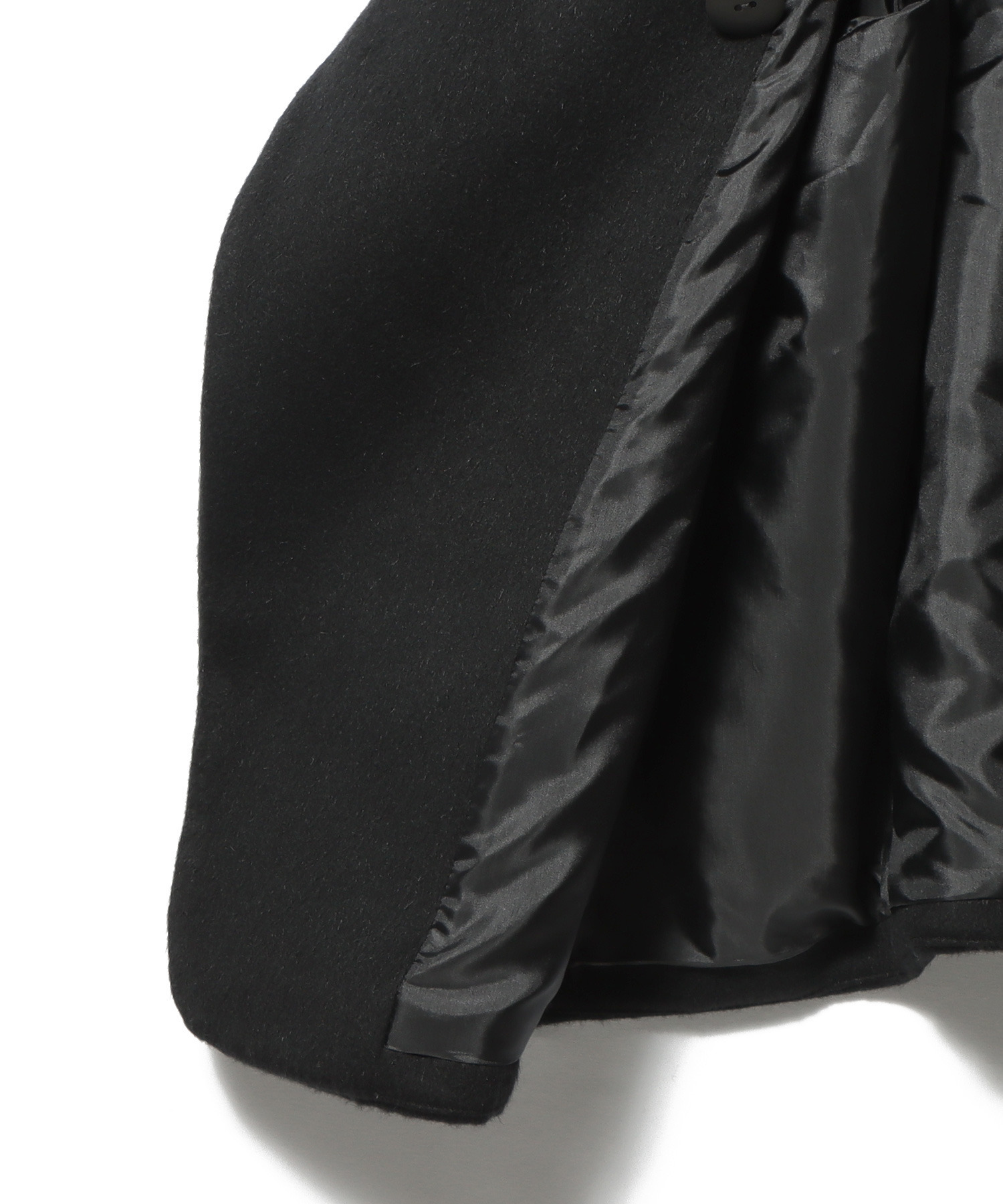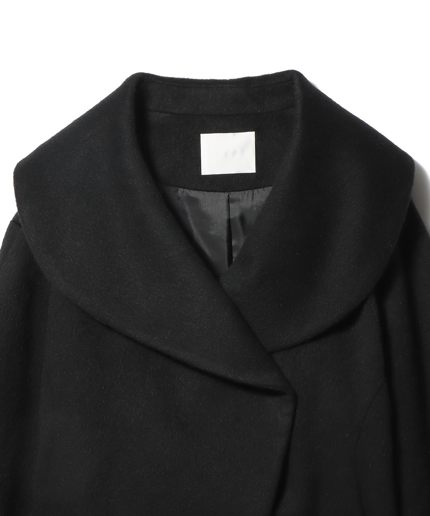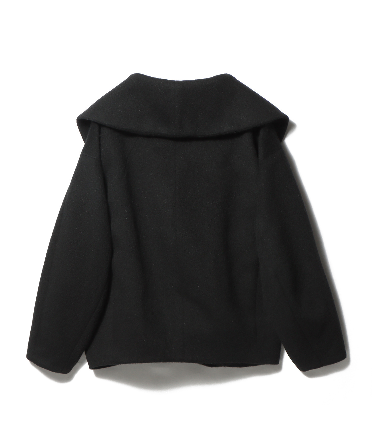 大きな襟と丸みを帯びたフォルムがコンセプチュアルな印象のショートコート。