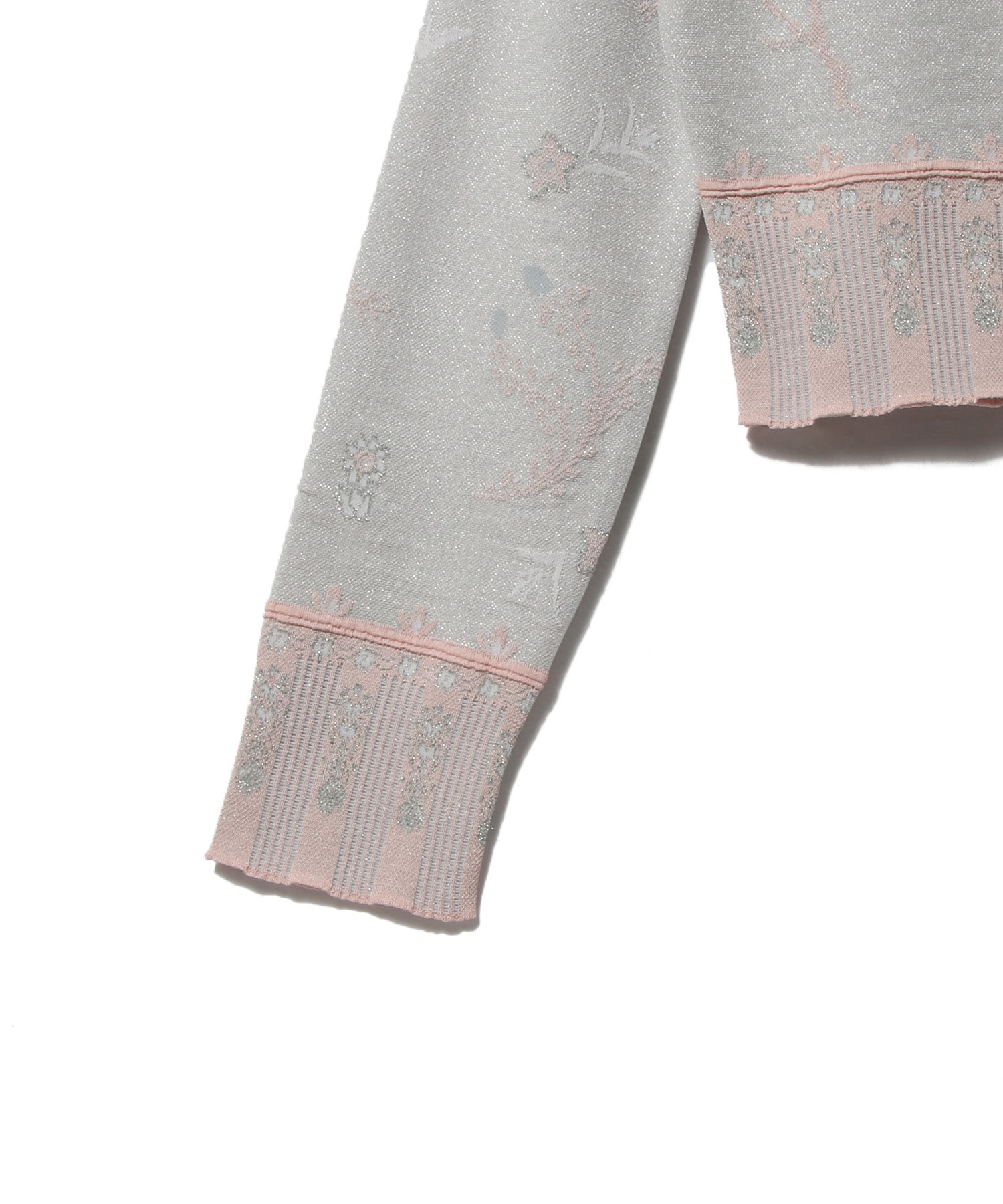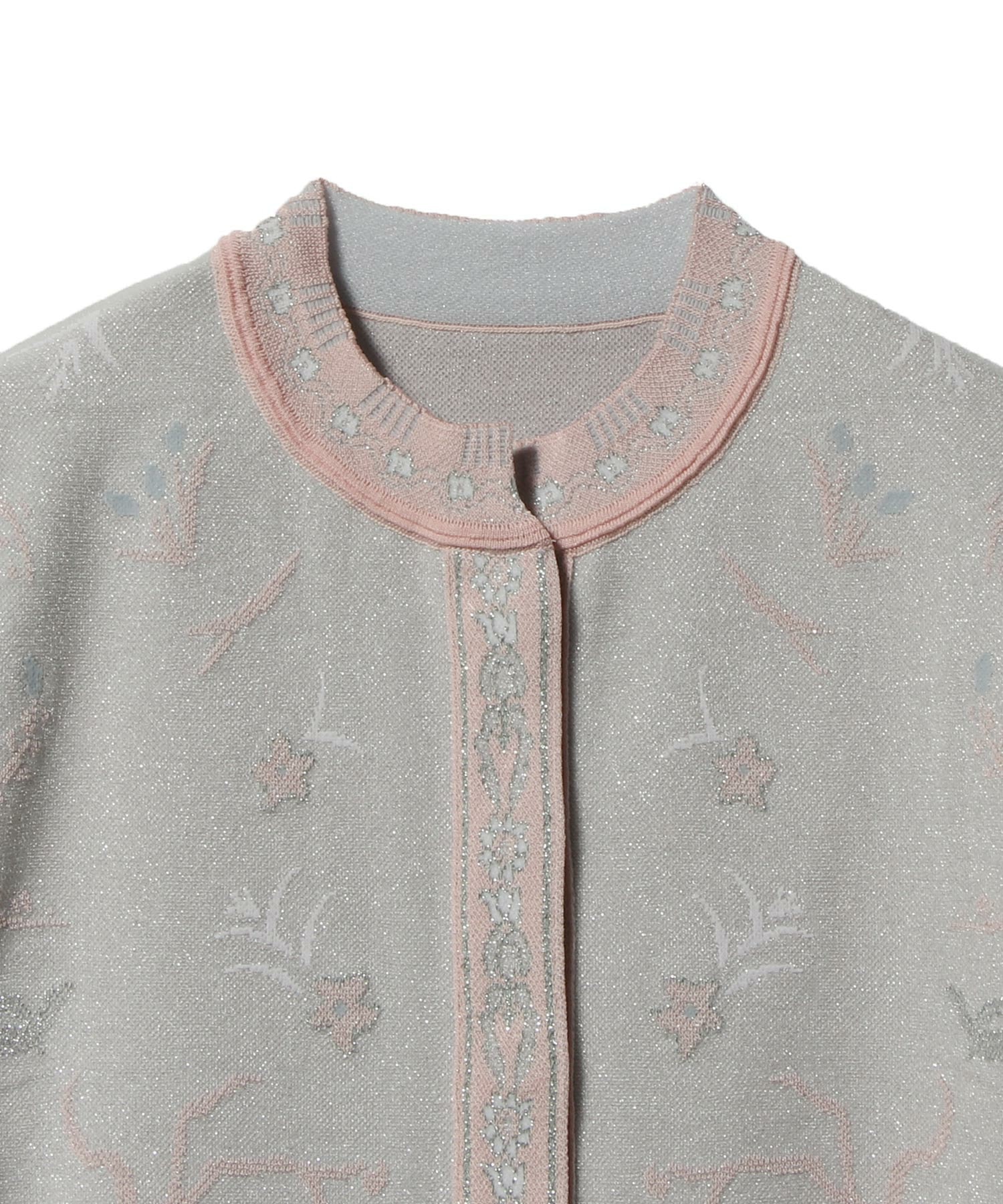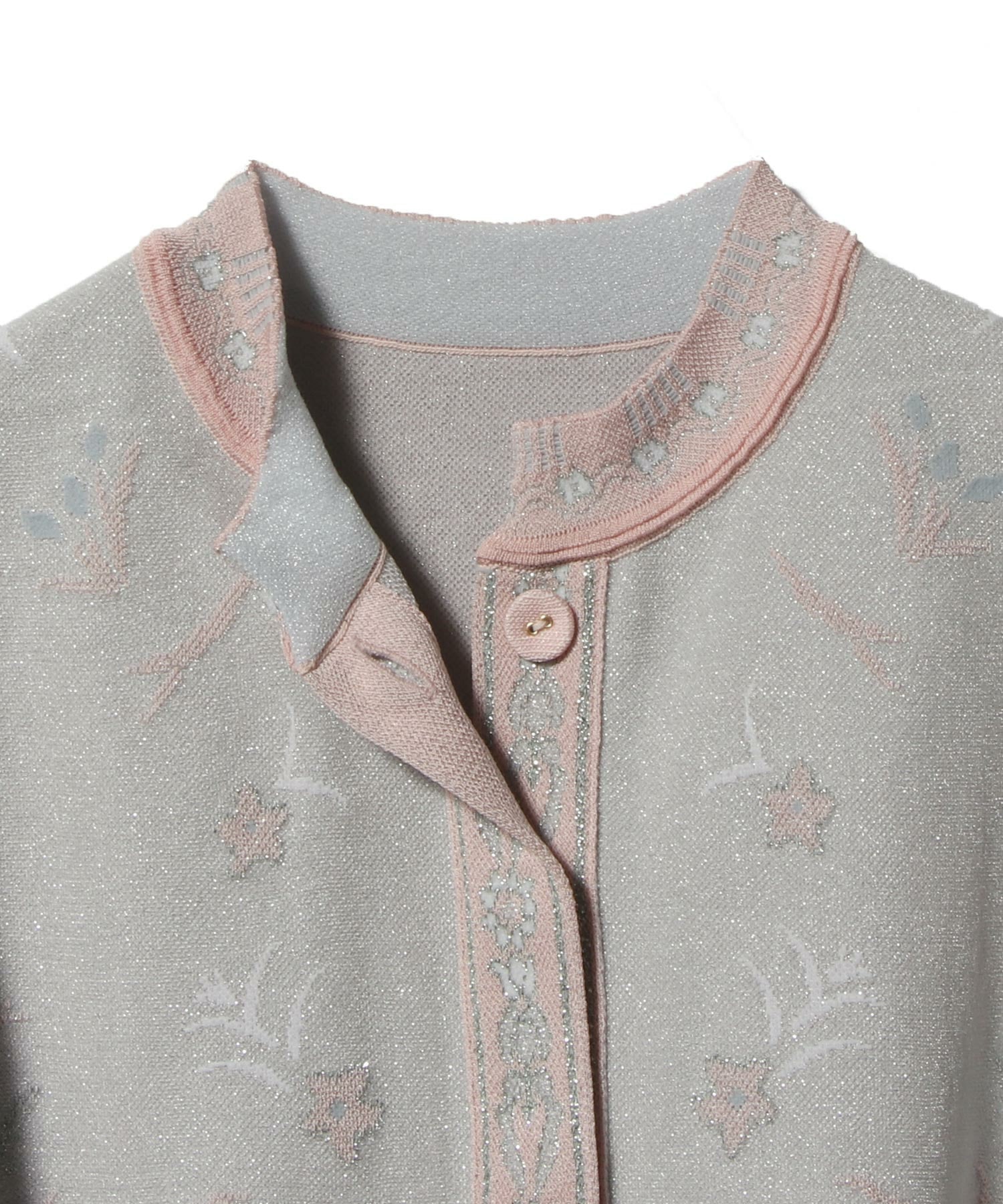 西洋のガラス工芸に見られる花柄を、ニットジャカードで表現しています。