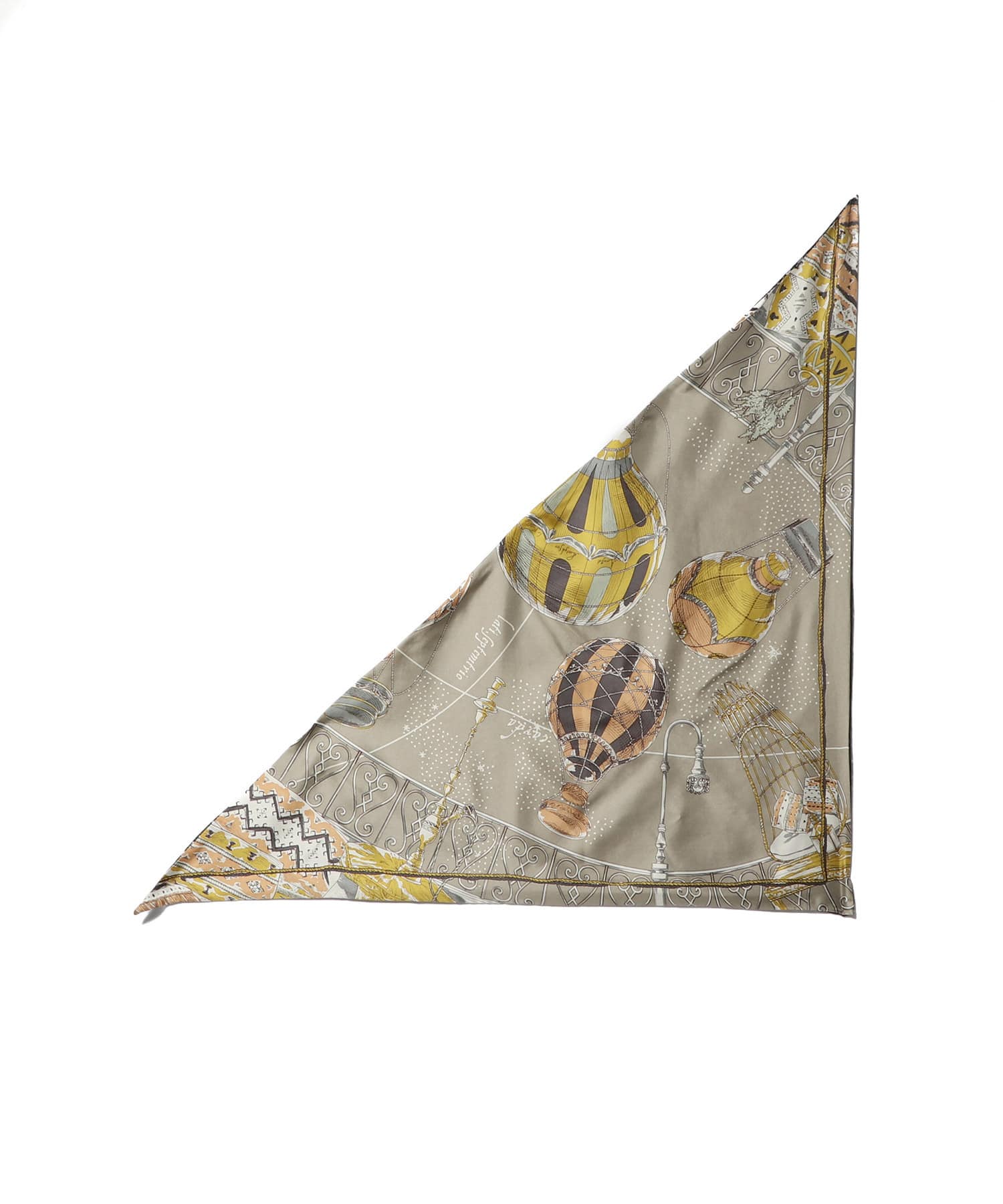 スクエアスカーフを対角線でカットしてデザインされた三角形のスカーフ。