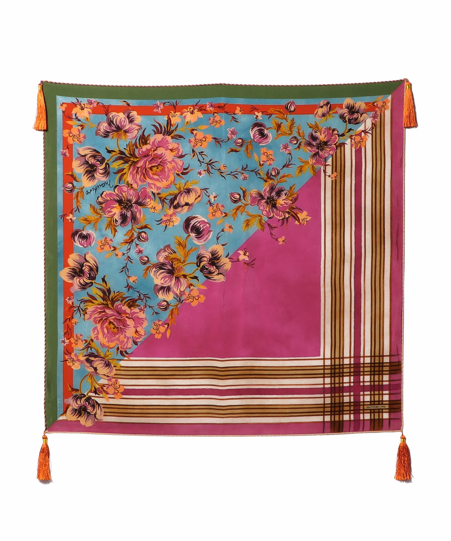 タッセルがついた華やかなシルクスカーフ。