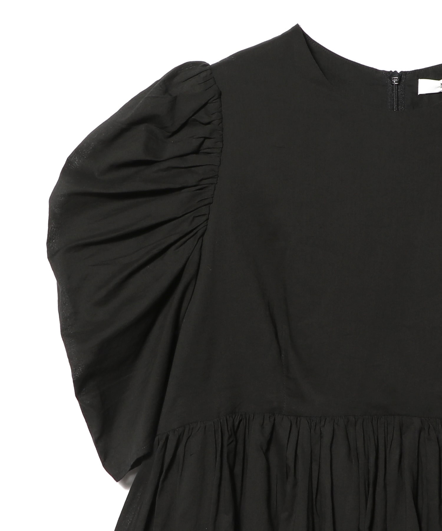 あえて細身に仕立てたトップスは華奢な表情を醸し出し、女性らしい繊細なムードを美しく称えています。胸元の切り替えには可憐なギャザーをたっぷりあしらい、うっとりするほどの情緒を薫り立たせて前後でアシンメトリーに配されたペプラムはウエストやヒップをさりげなく覆い、素晴らしいスタイルアップ効果も実現。
