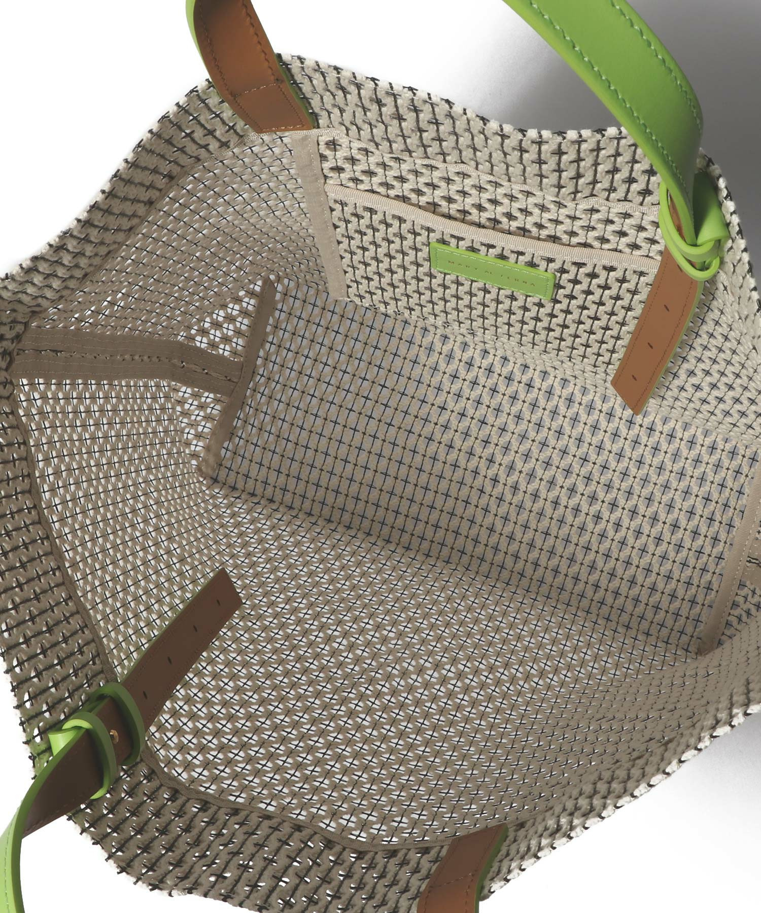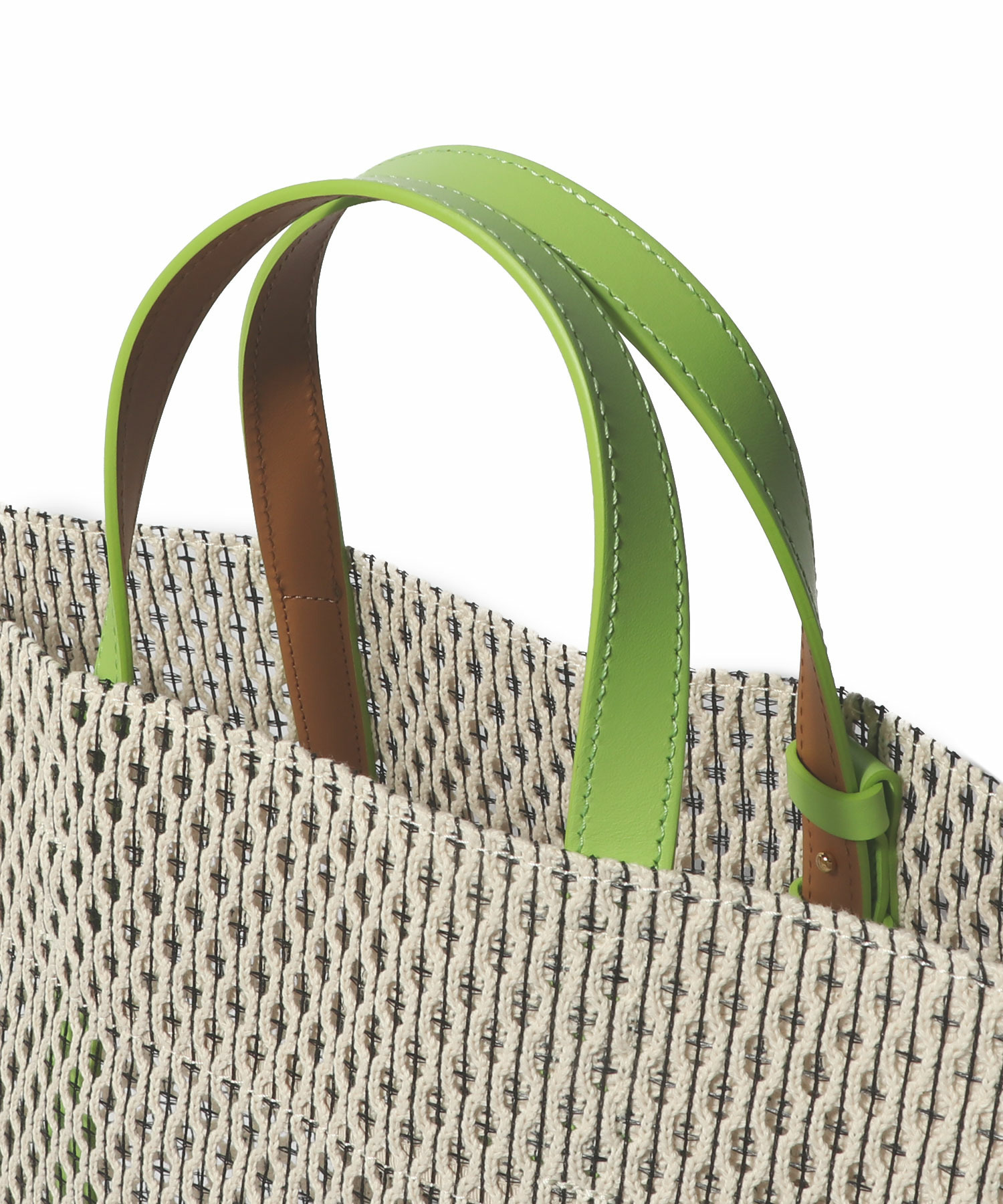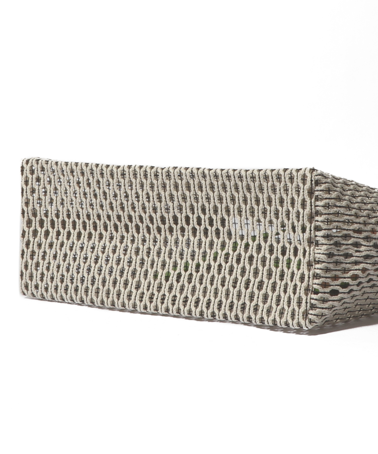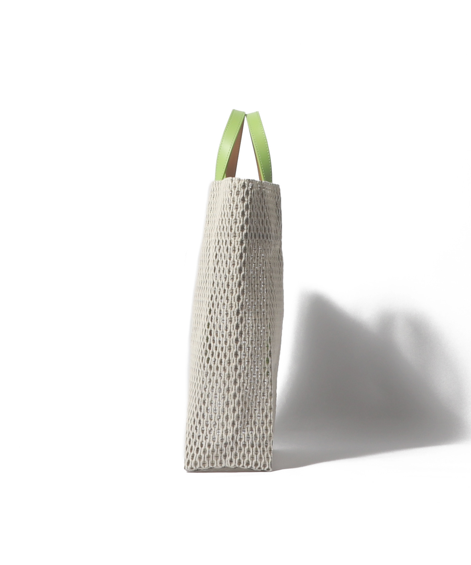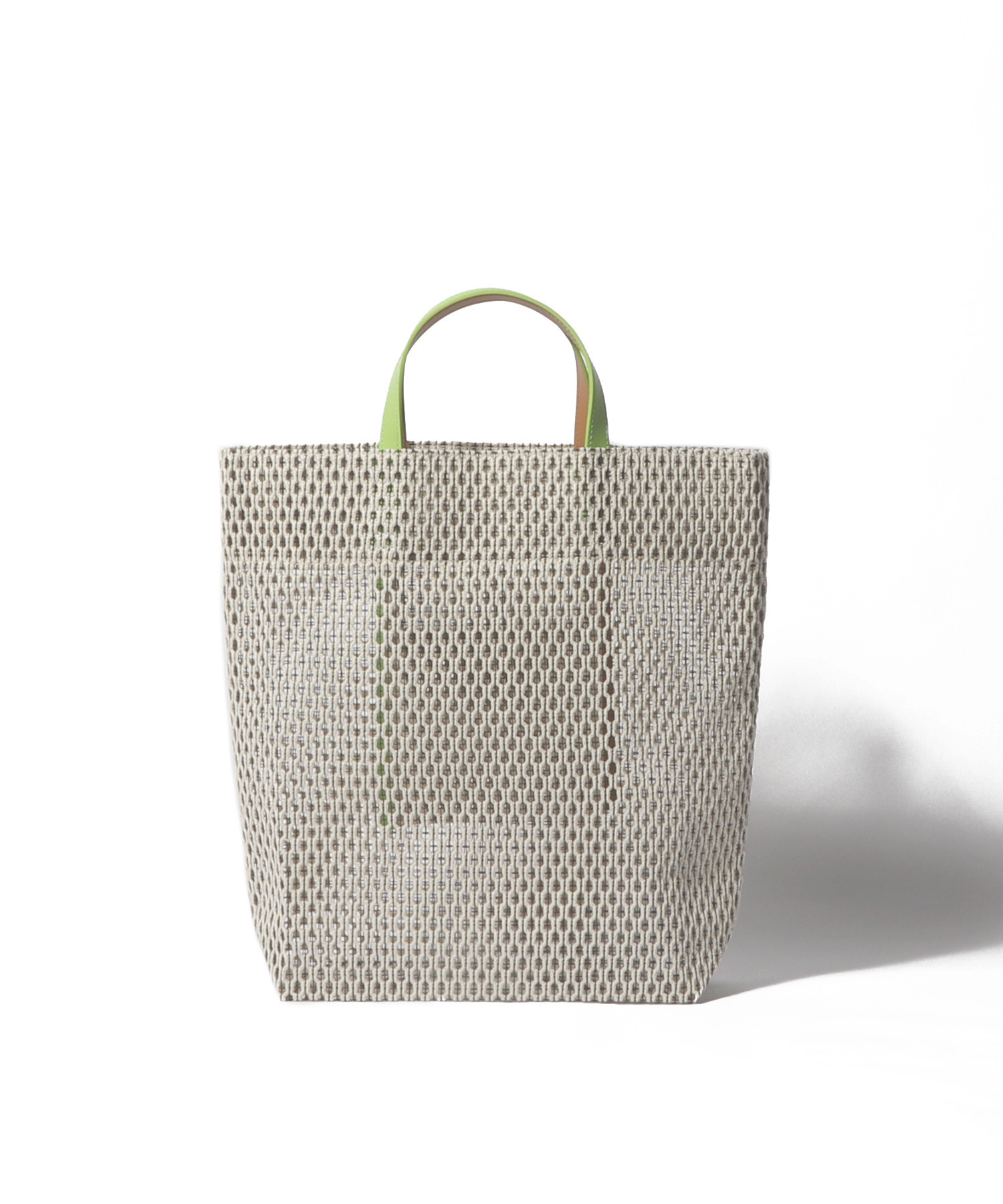しっかりとした張り感があり、通気性にも優れてたコットンメッシュの素材を使用。中の荷物が透け過ぎず、カジュアル素材でありつつも上品なアイテムです。