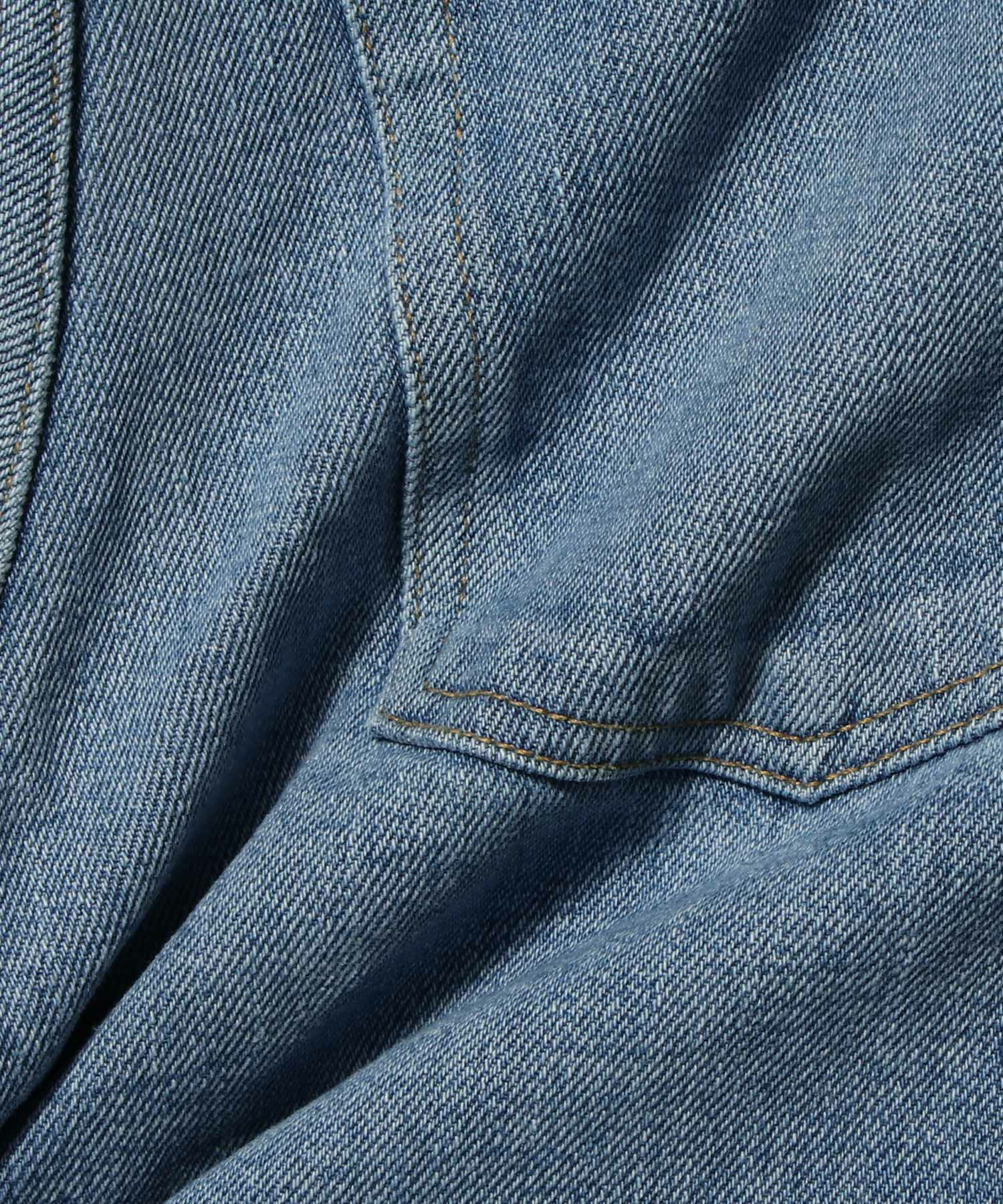 現代の量産設備では表現できないデニム特有の立体感・縫製表情・アタリ感を再現。縫い目のキレさや、さりげない立体感など、はきこむほどに味が出るクラシックさのある縫製とモダンさのあるシルエットが特徴です。