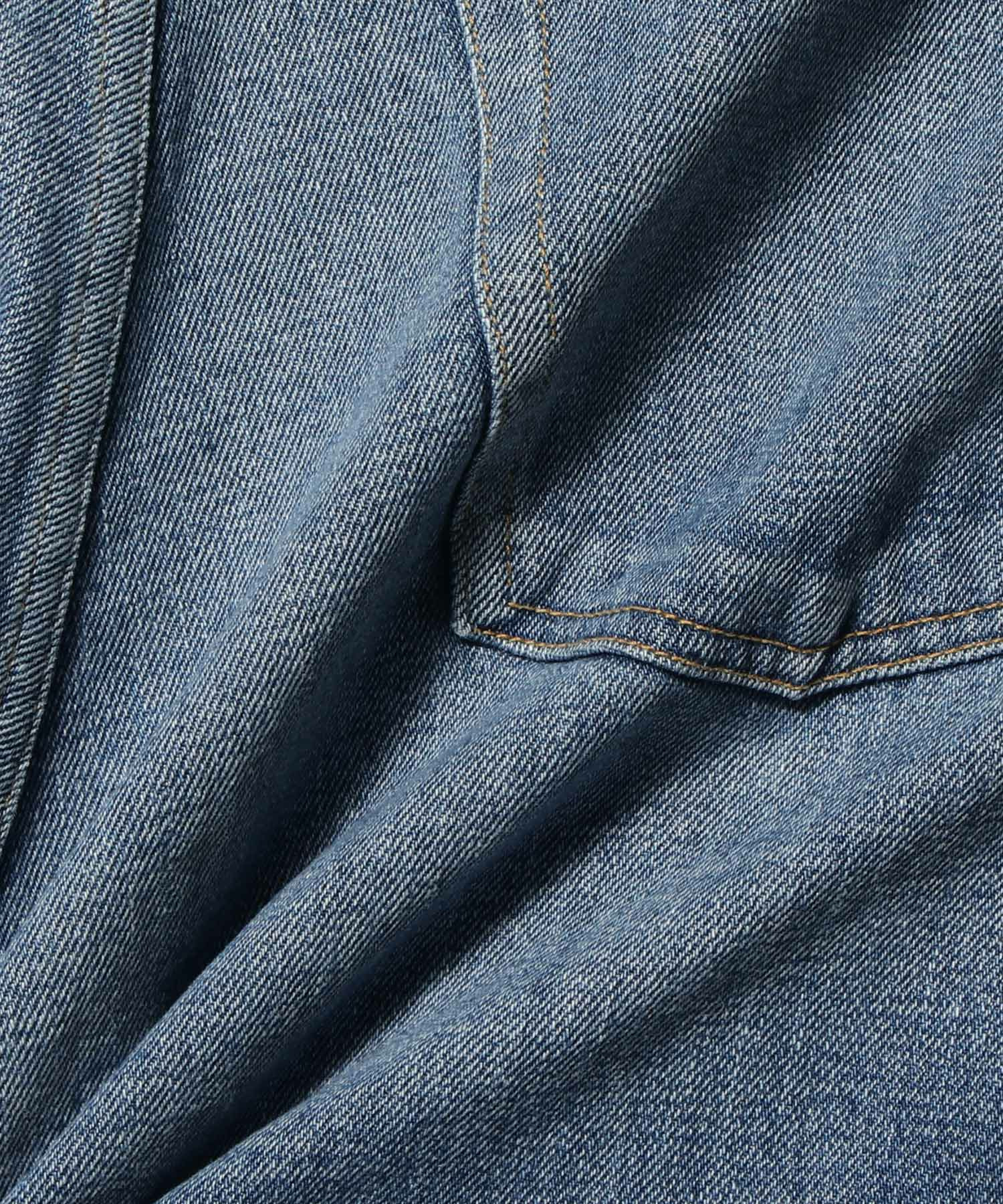 現代の量産設備では表現できないデニム特有の立体感・縫製表情・アタリ感を再現。縫い目のキレさや、さりげない立体感など、はきこむほどに味が出るクラシックさのある縫製とモダンさのあるシルエットが特徴です。