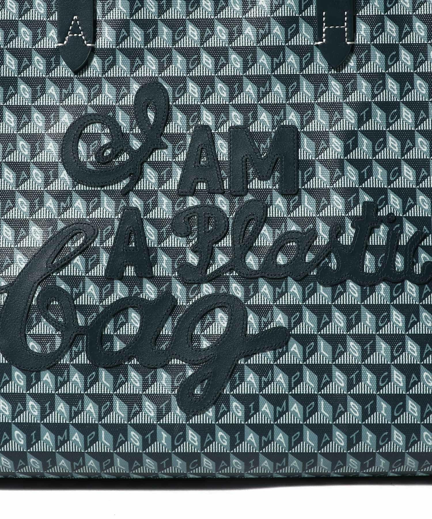 「I AM A Plastic Bag」がユニークに施されたトートバッグ。