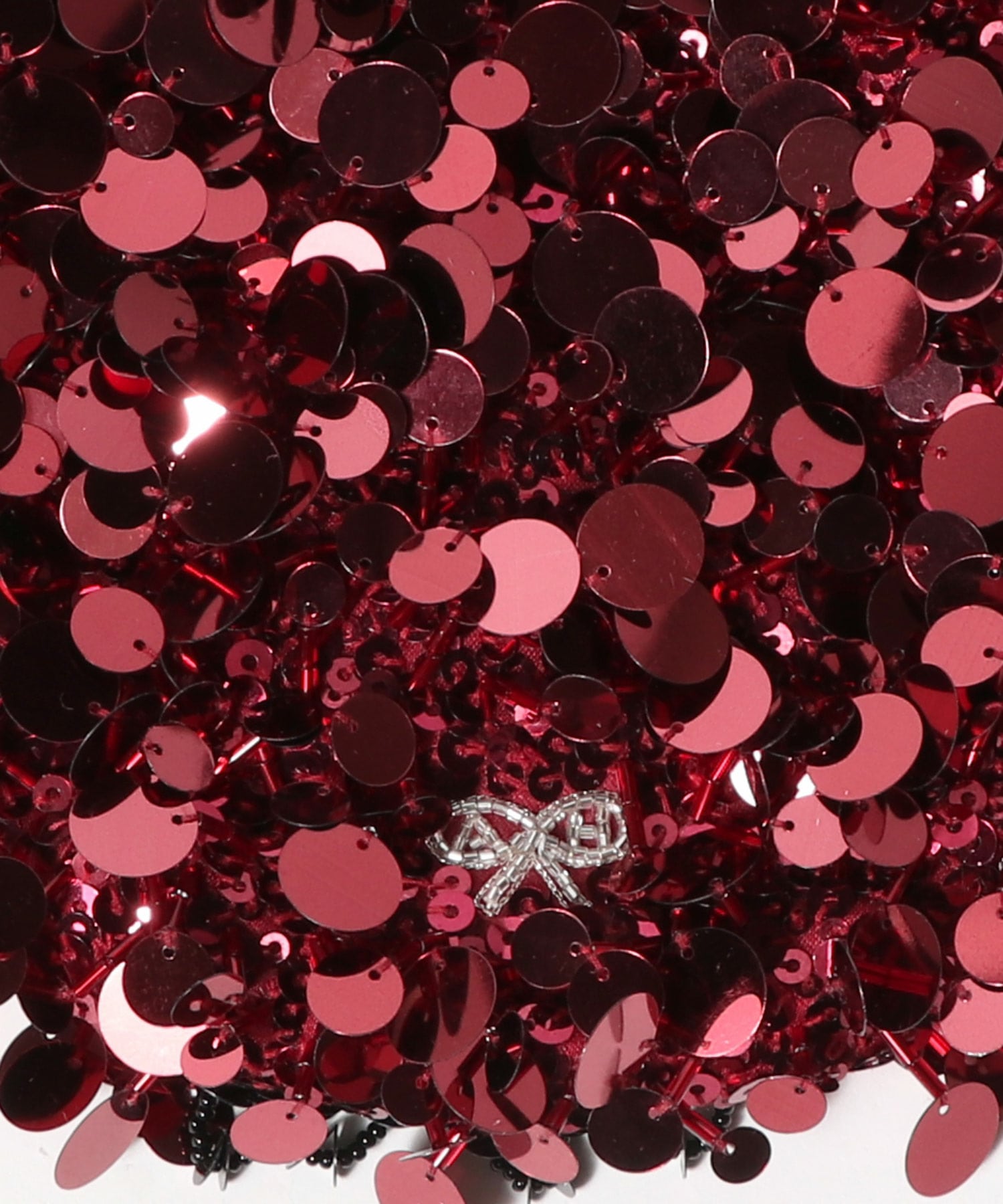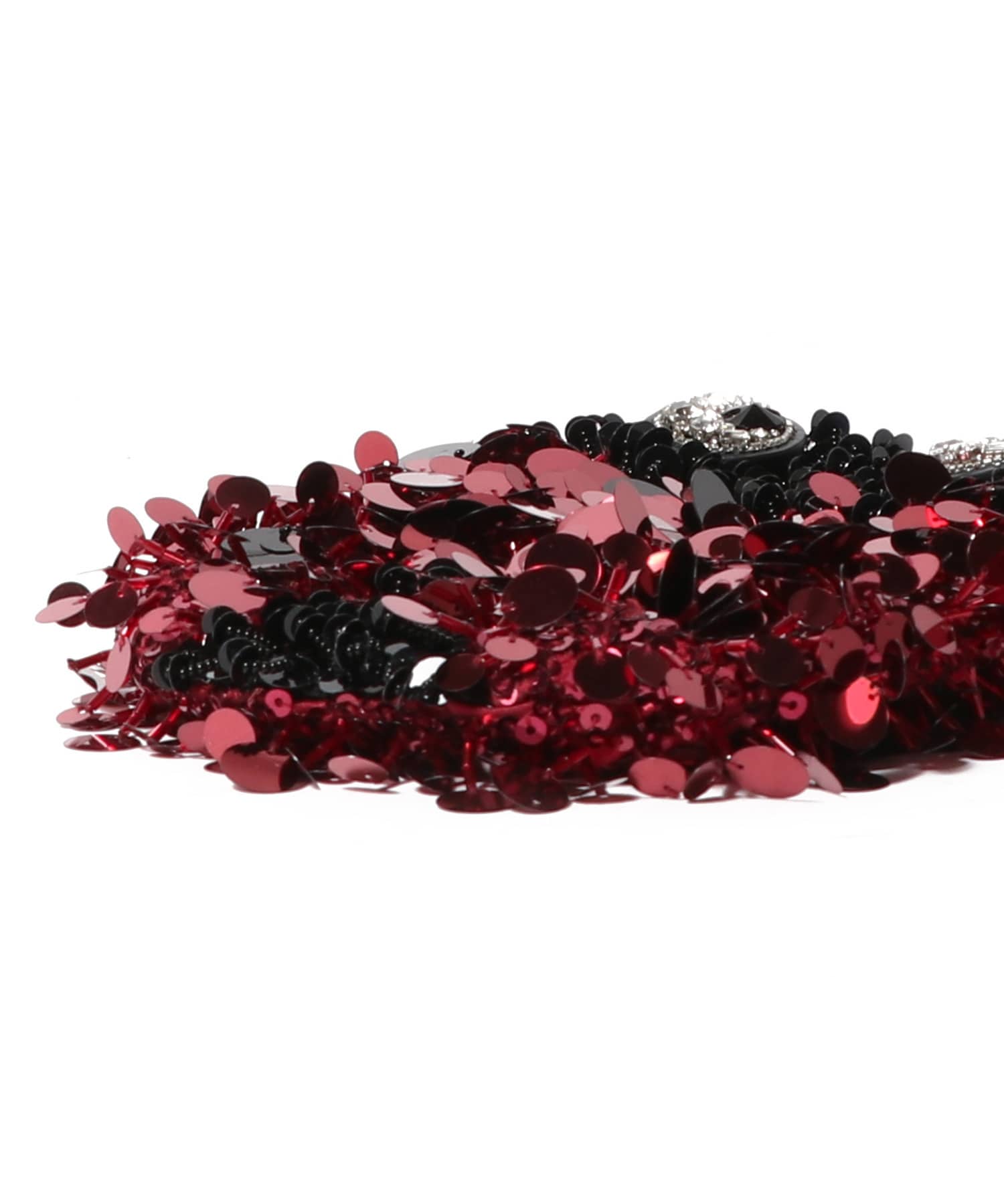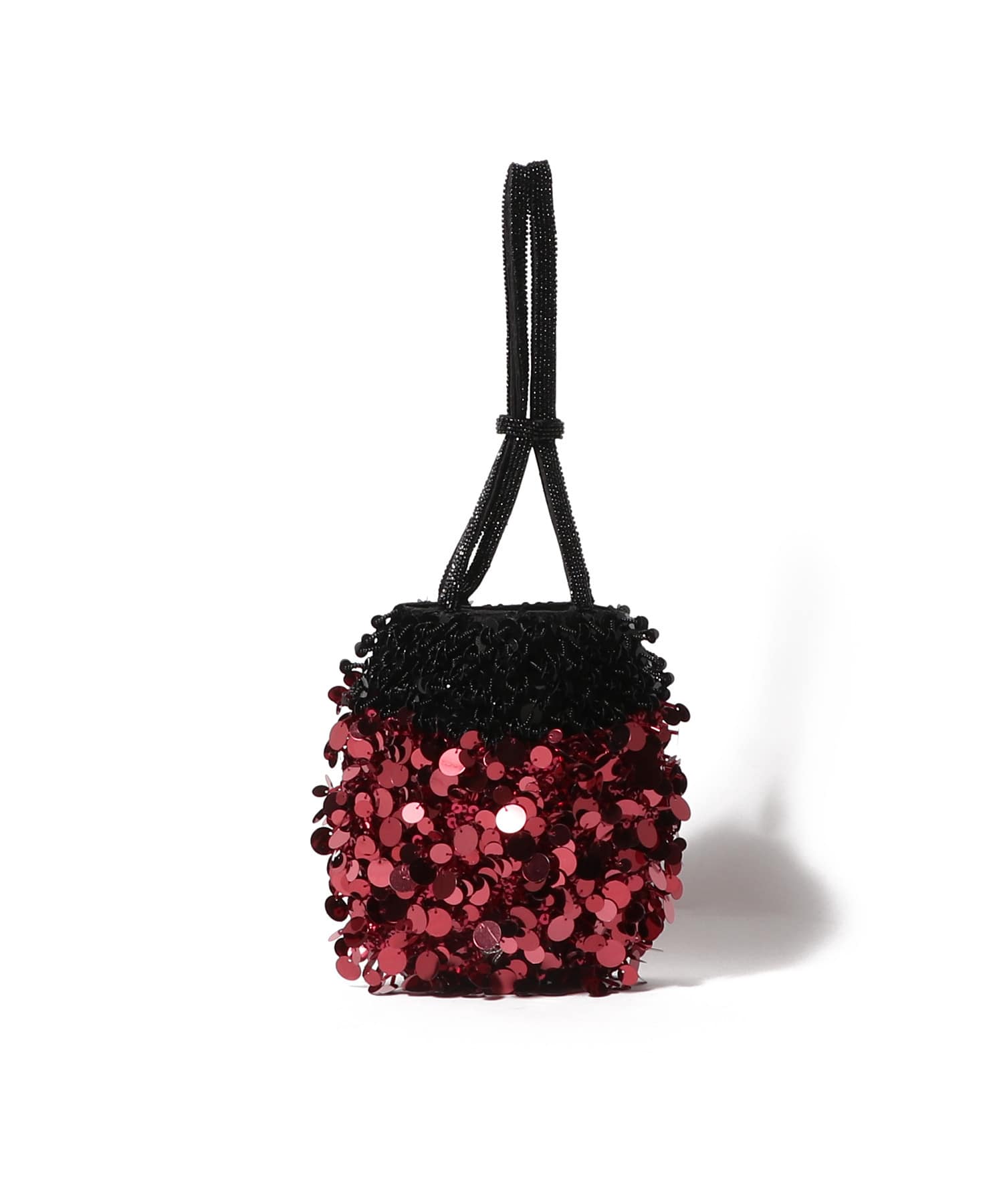 サテン地にスパンコールとビーズをあしらって、てんとう虫をかたどった小ぶりなバケットバッグ。