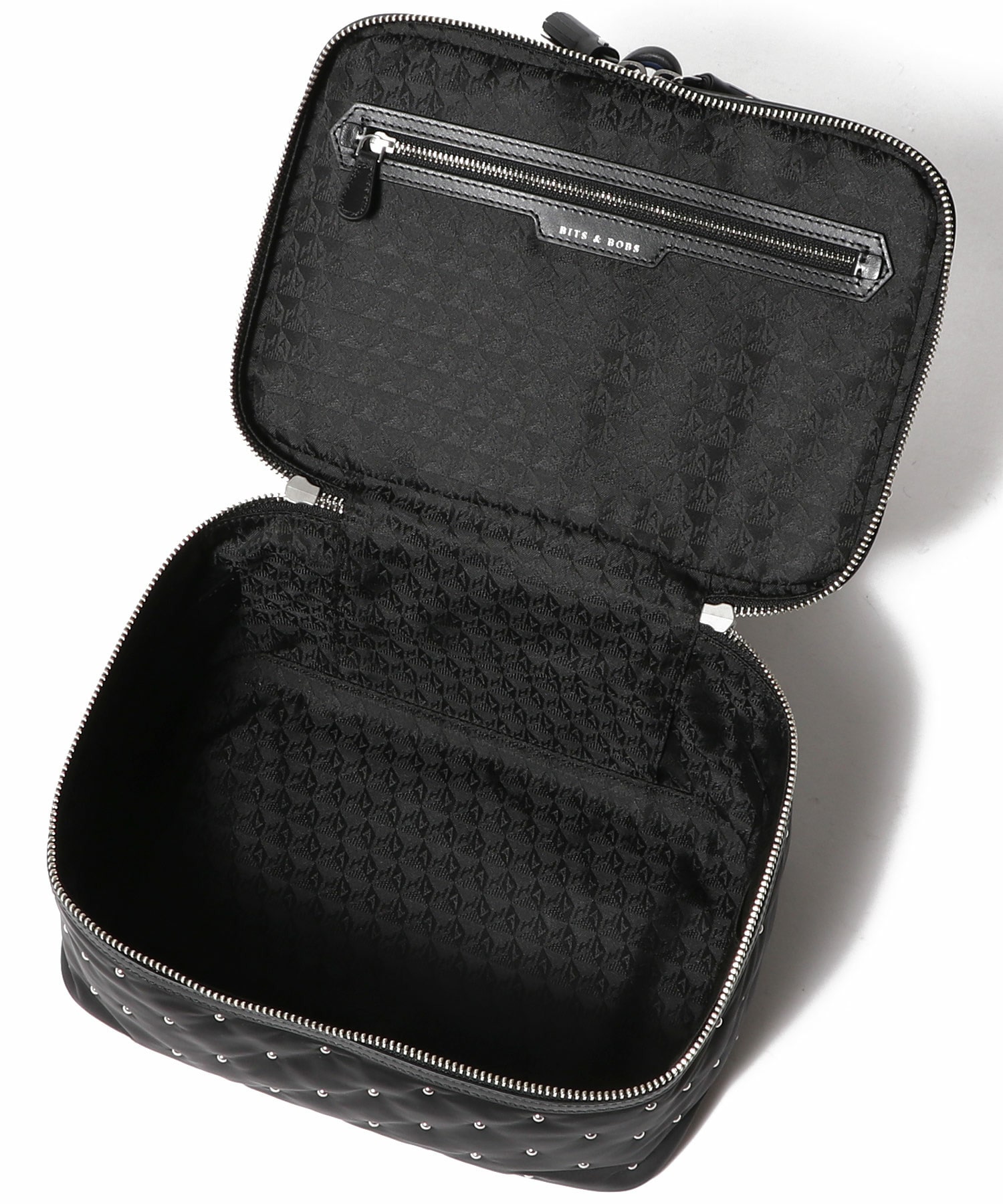 スキンケアとメイクアップに必要なあれこれをまとめて収納できるバニティポーチ。