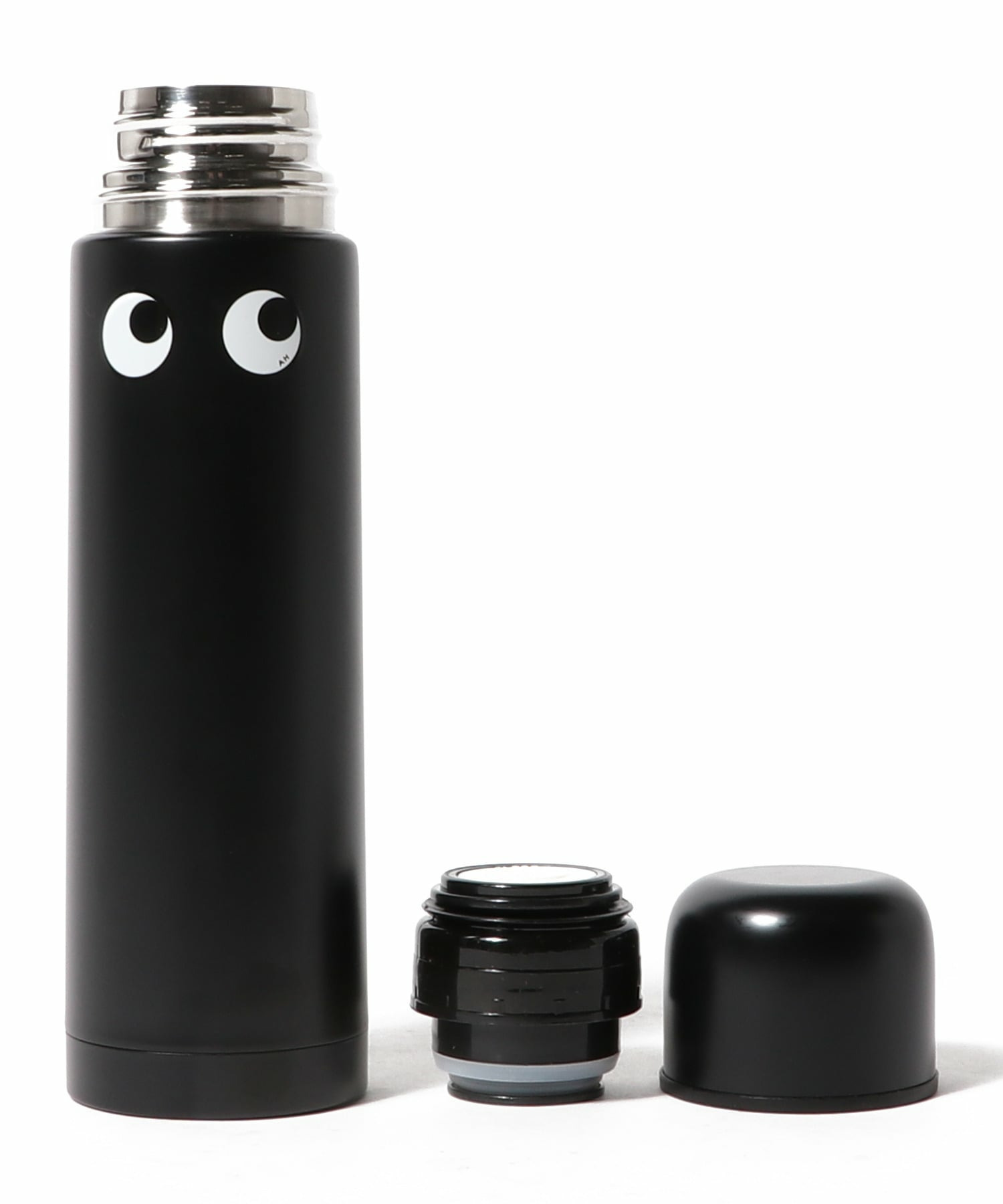 マットな黒地にアイコニックなアイデザインを施したウォーターボトル。