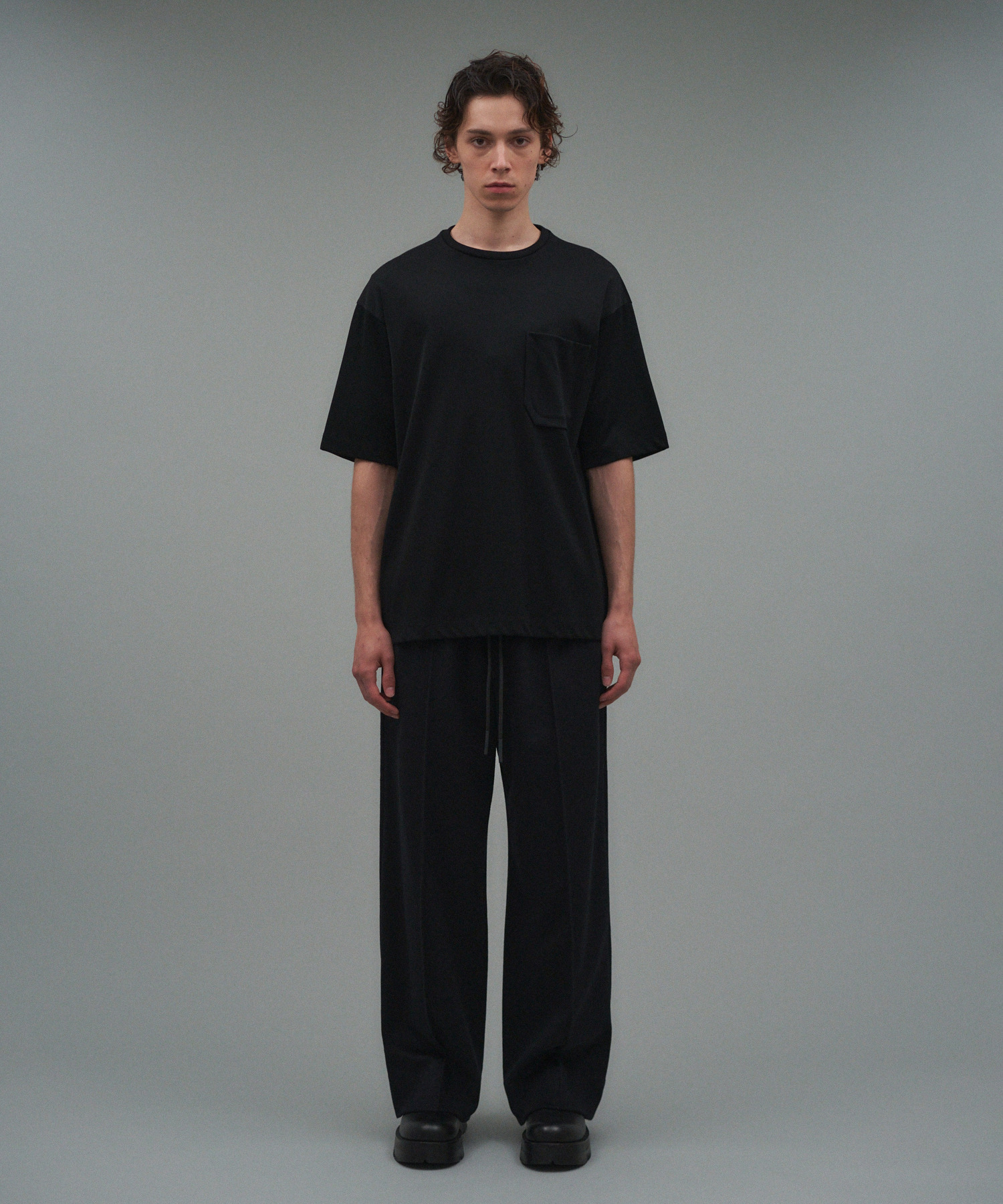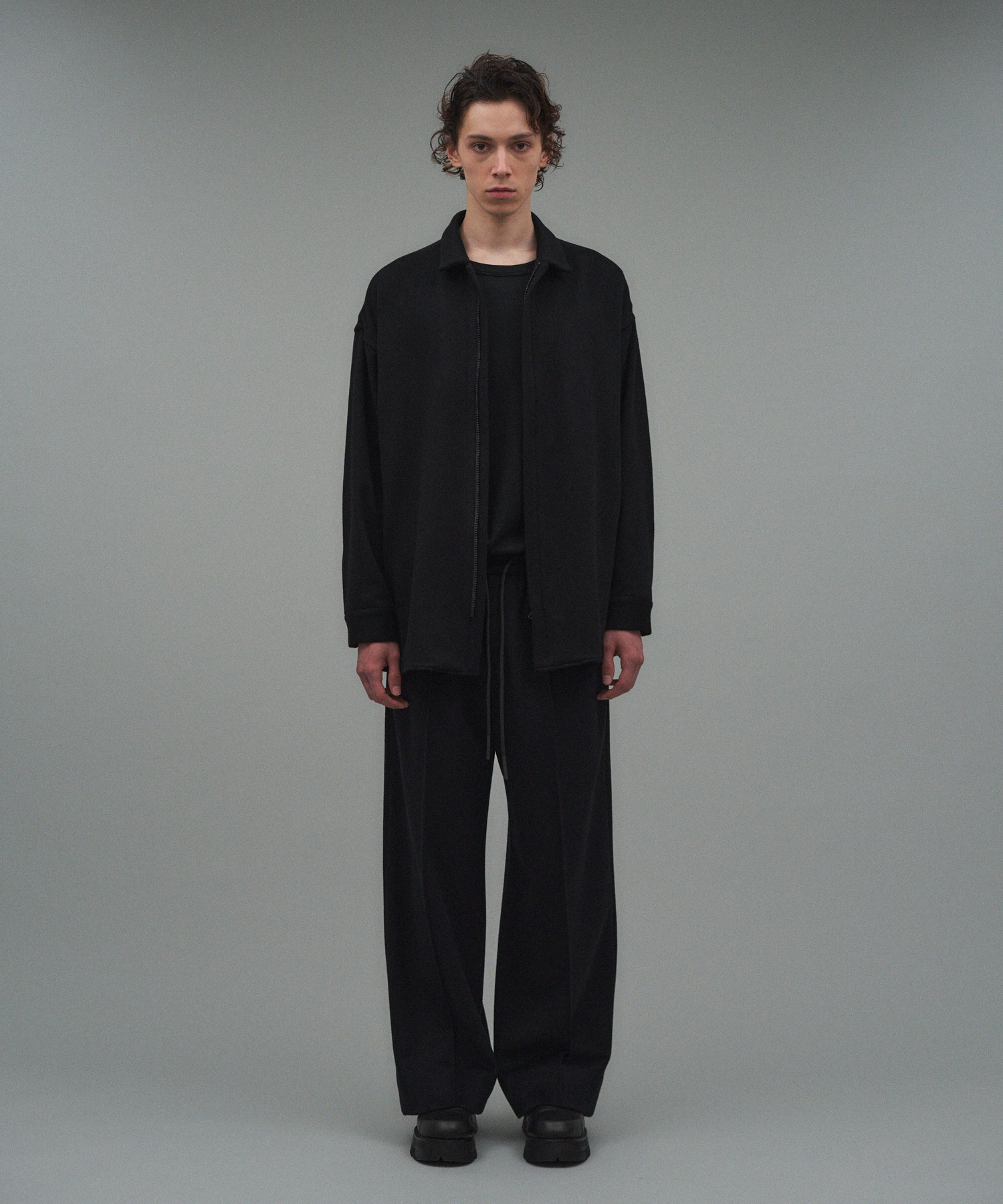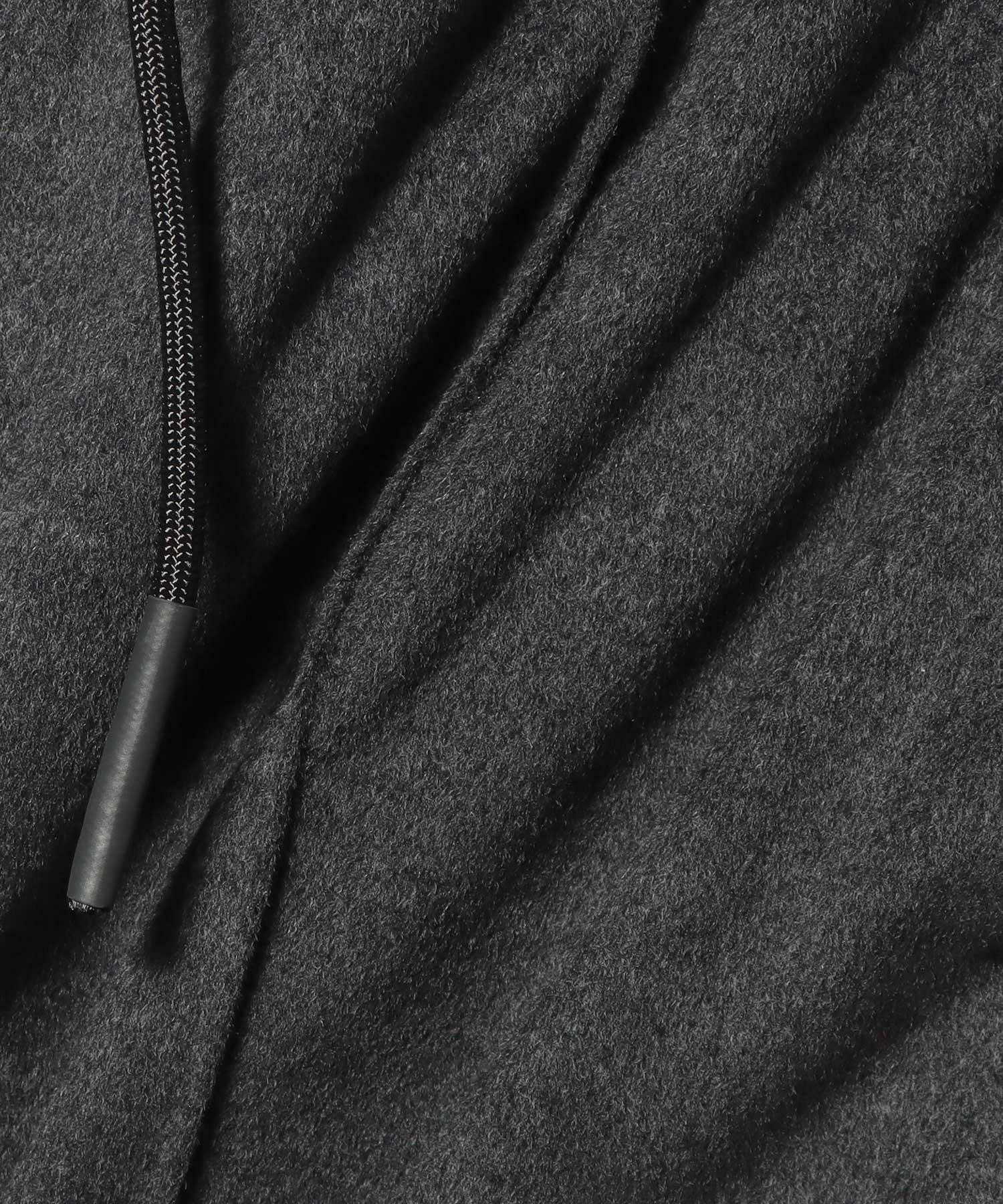 ハイゲージのジャージに丁寧に起毛をかけることで、布帛の様ななめらかな表面感を実現しました。
