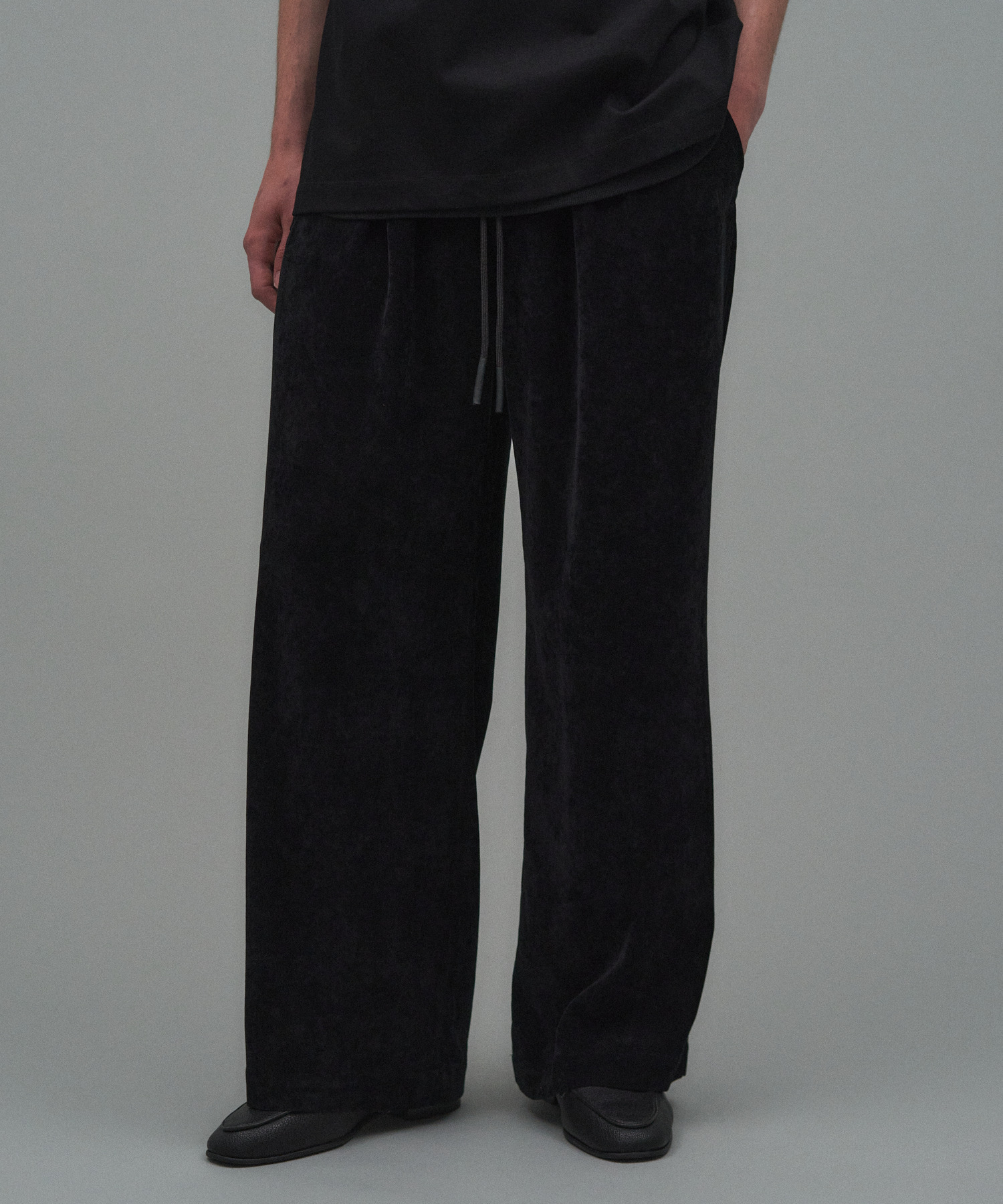 まるでベルベットのような美しいパイル素材を使用したワイドパンツ。