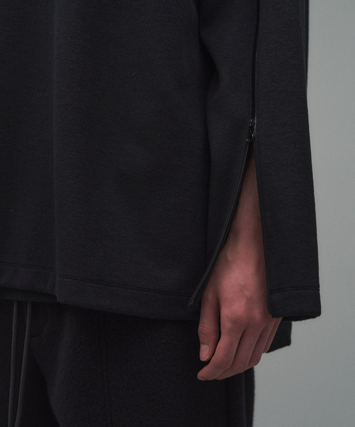 ハイゲージのジャージに丁寧に起毛をかけることで布品のようななめらかな表面感を実現しました。