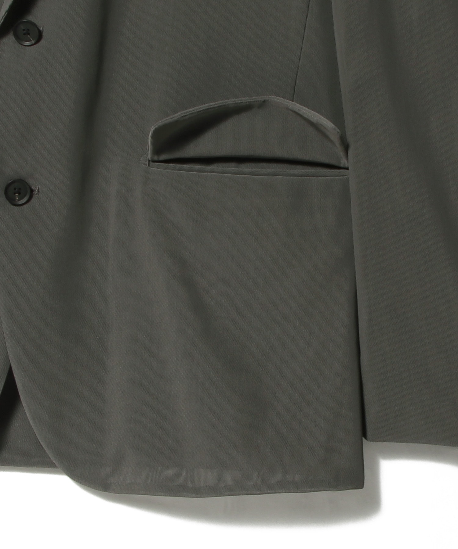 2枚仕立ての為、動くことによって透け感が活かされスタイリングのアクセントに。ベーシックなジャケットに夏らしい雰囲気を加えた一着です。