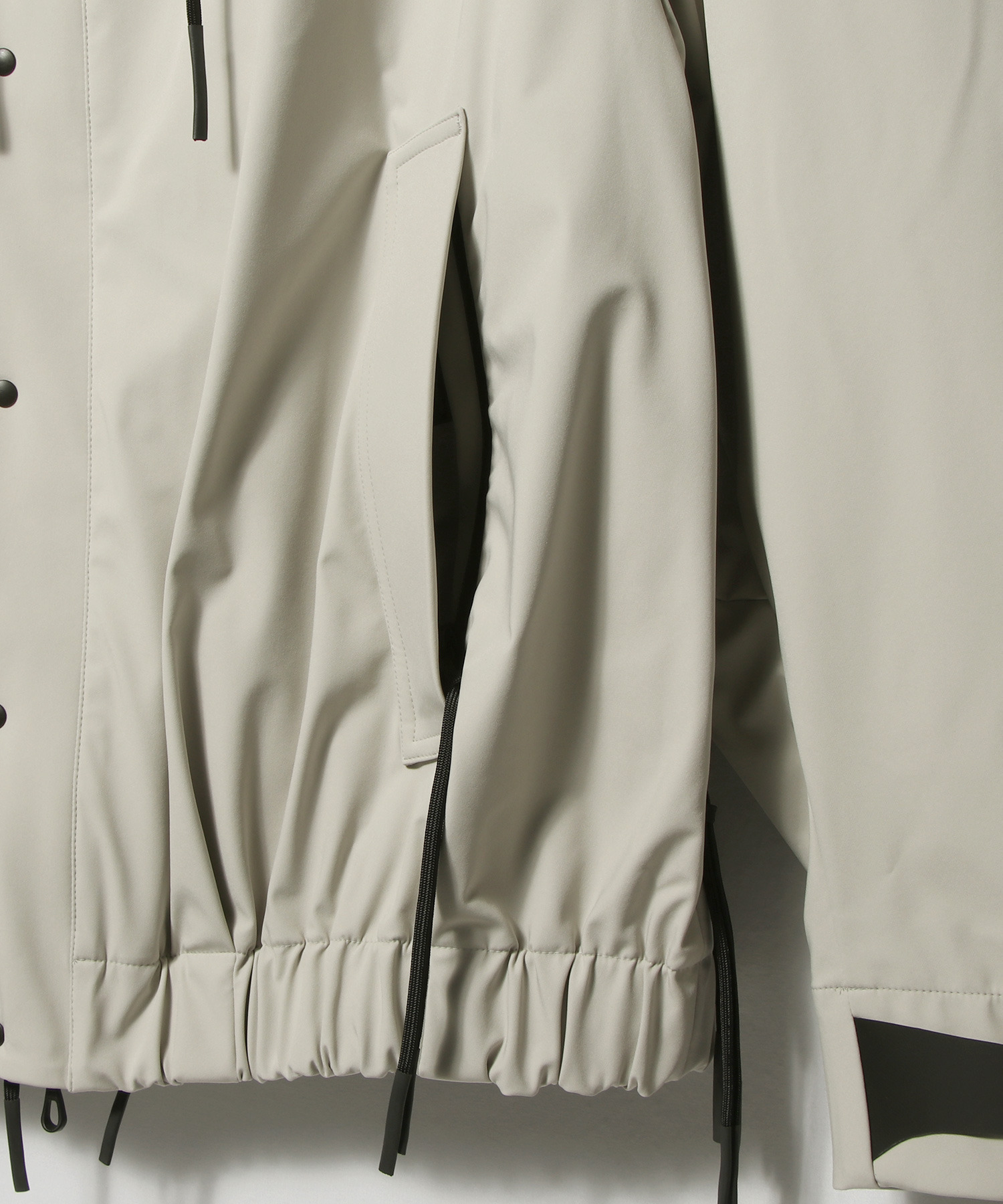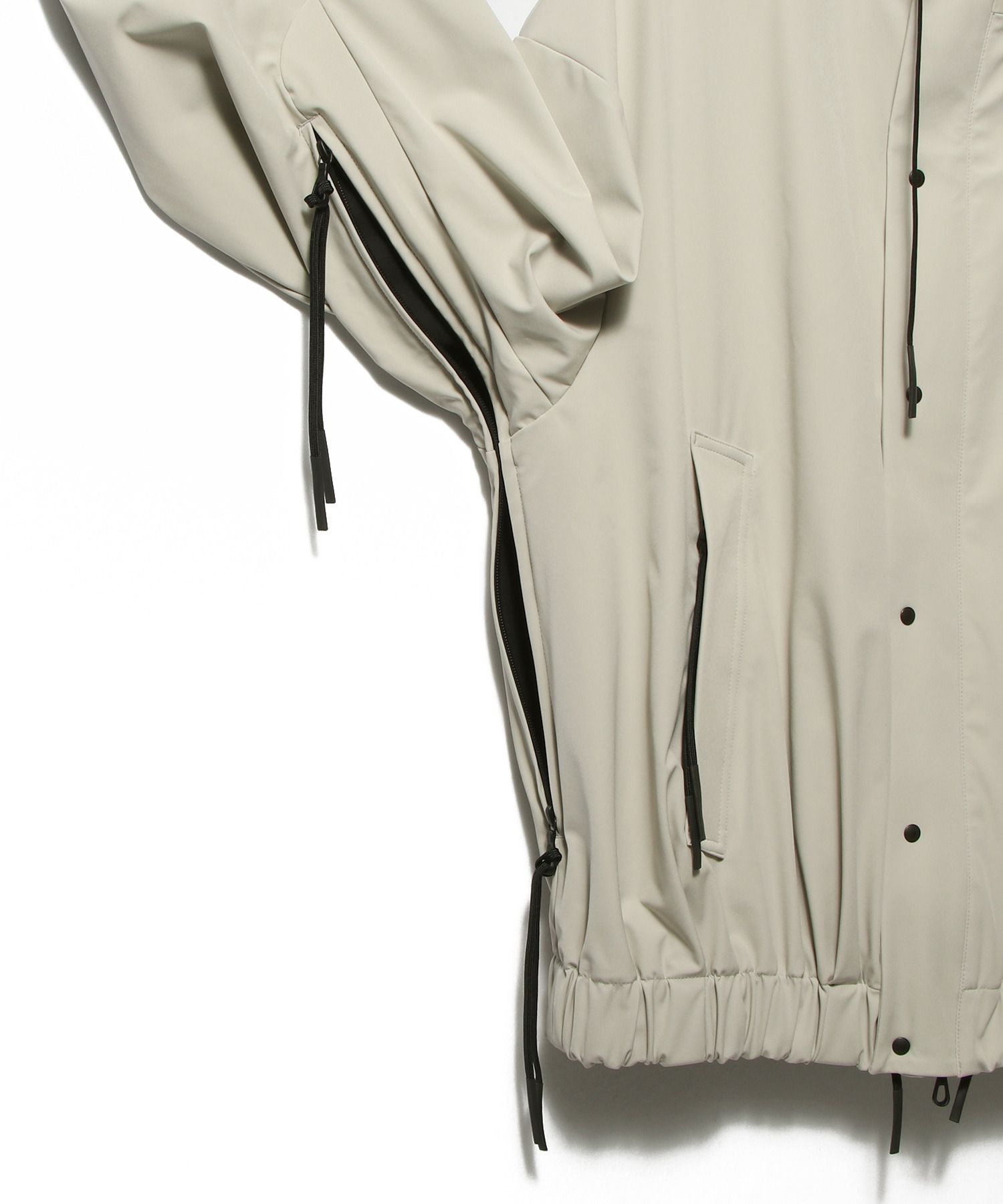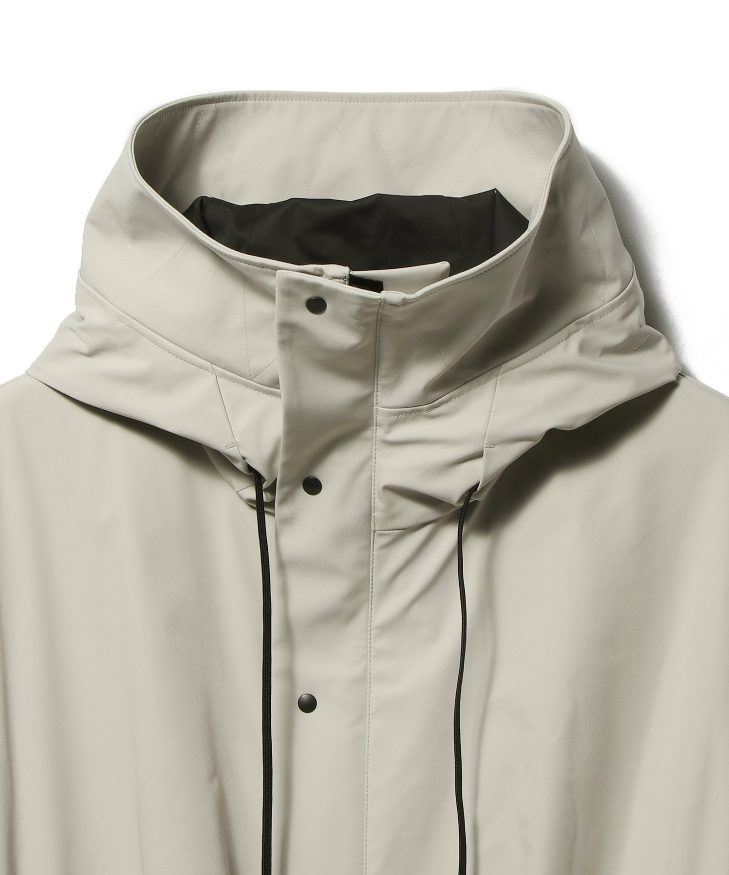 大きめに設計されたフードが印象的なデザインアクセントに。さらに、脇下にはベンチレーションを配し、通気性を確保しデザイン性と快適性を両立。ダブルジップ仕様のため、インナーとのレイヤードスタイルも自在に。普段の着こなしの幅を広げてくれる一着です。