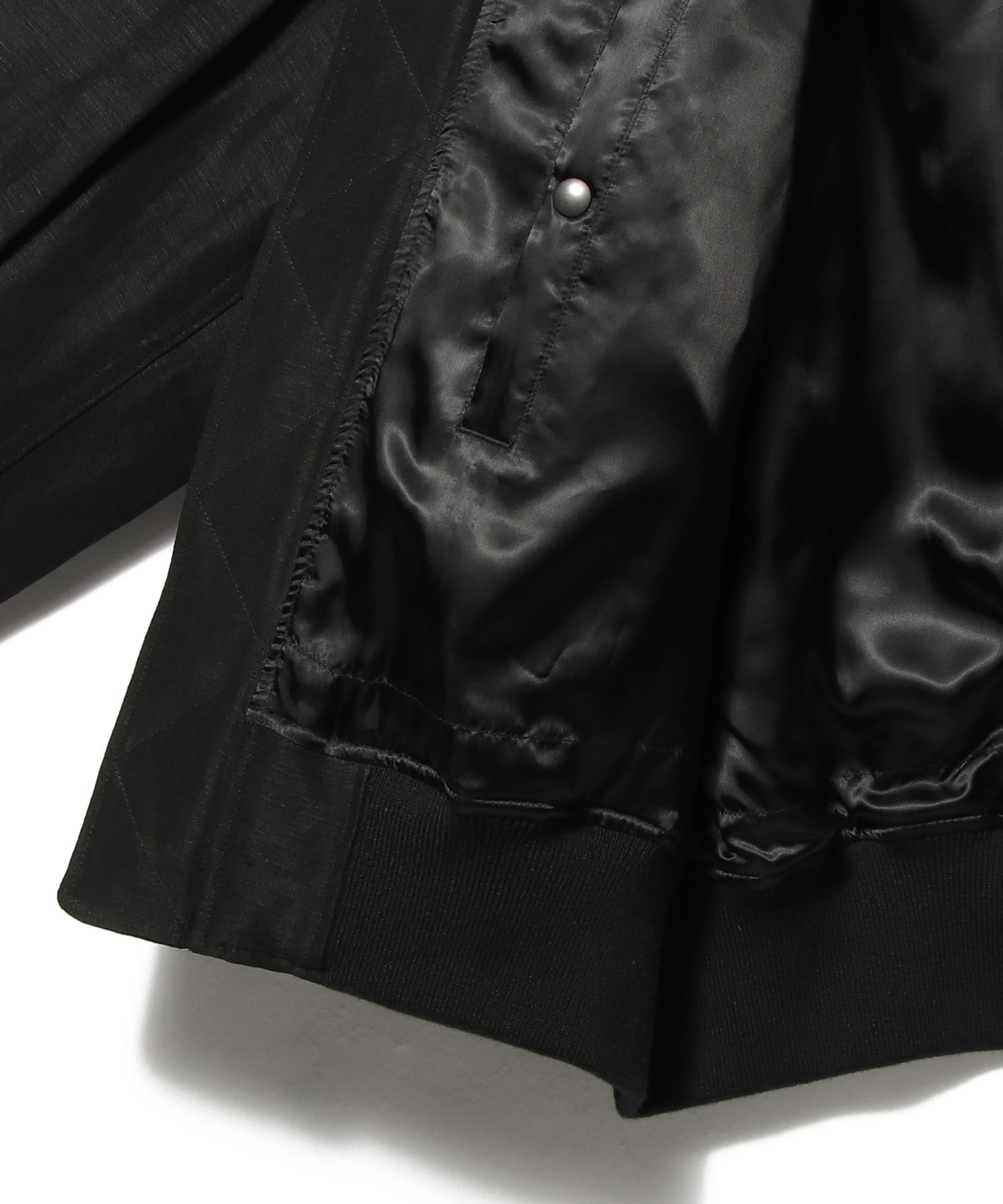 デザインはミリタリー由来のMA-1デザインをベースにしながらも、素材の表情がもたらす奥行きと品のある質感によって、都会的で洗練された雰囲気を演出します。