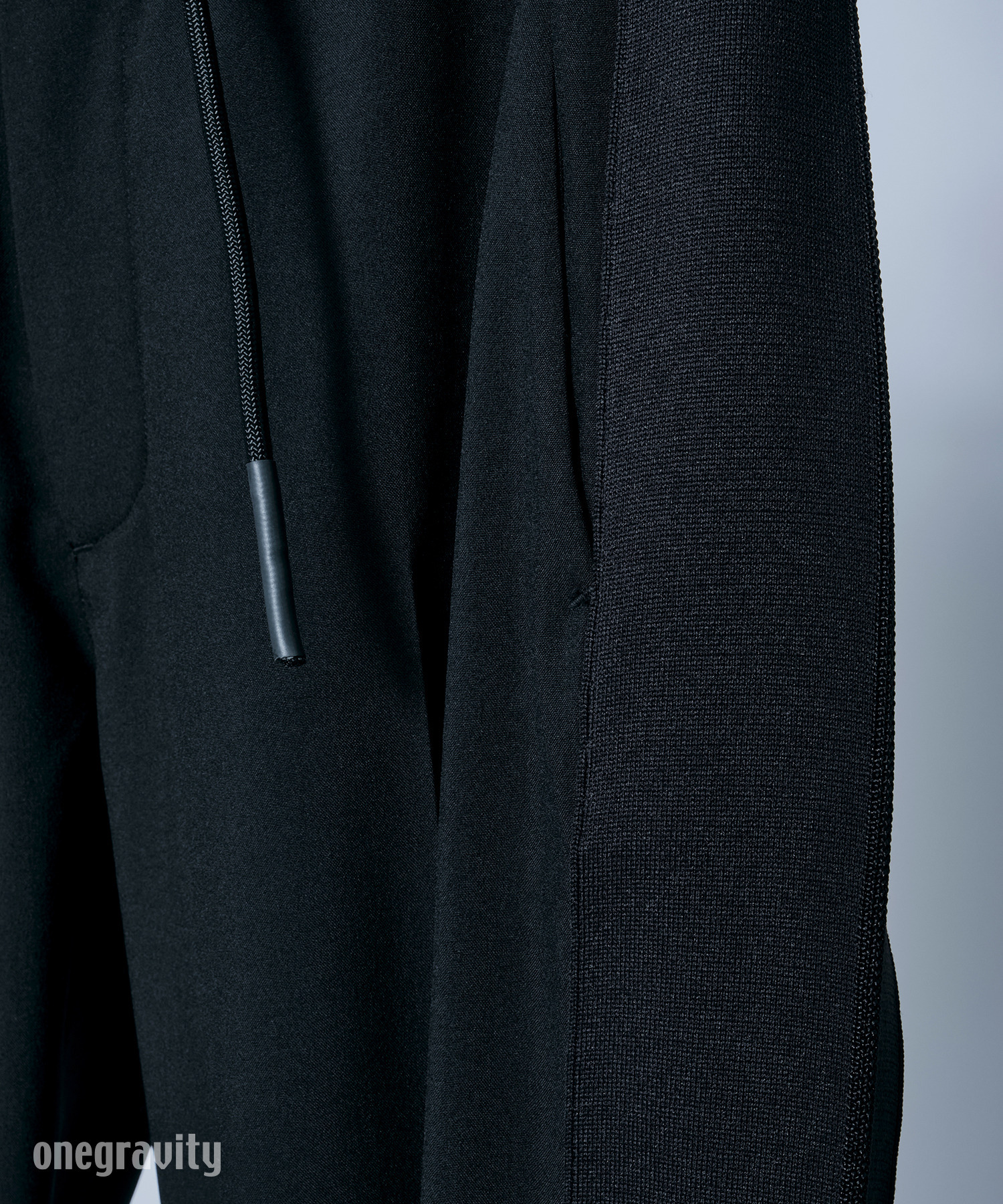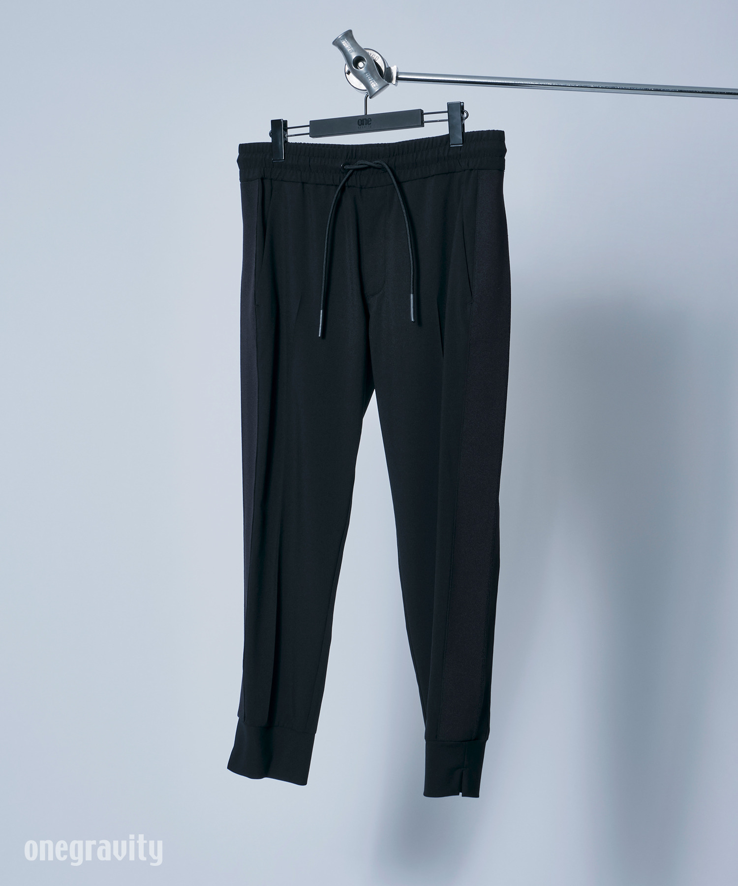 合繊の優れた特性を活かしながら、ウールのような上質な質感を追求した素材を使用したリブパンツ。