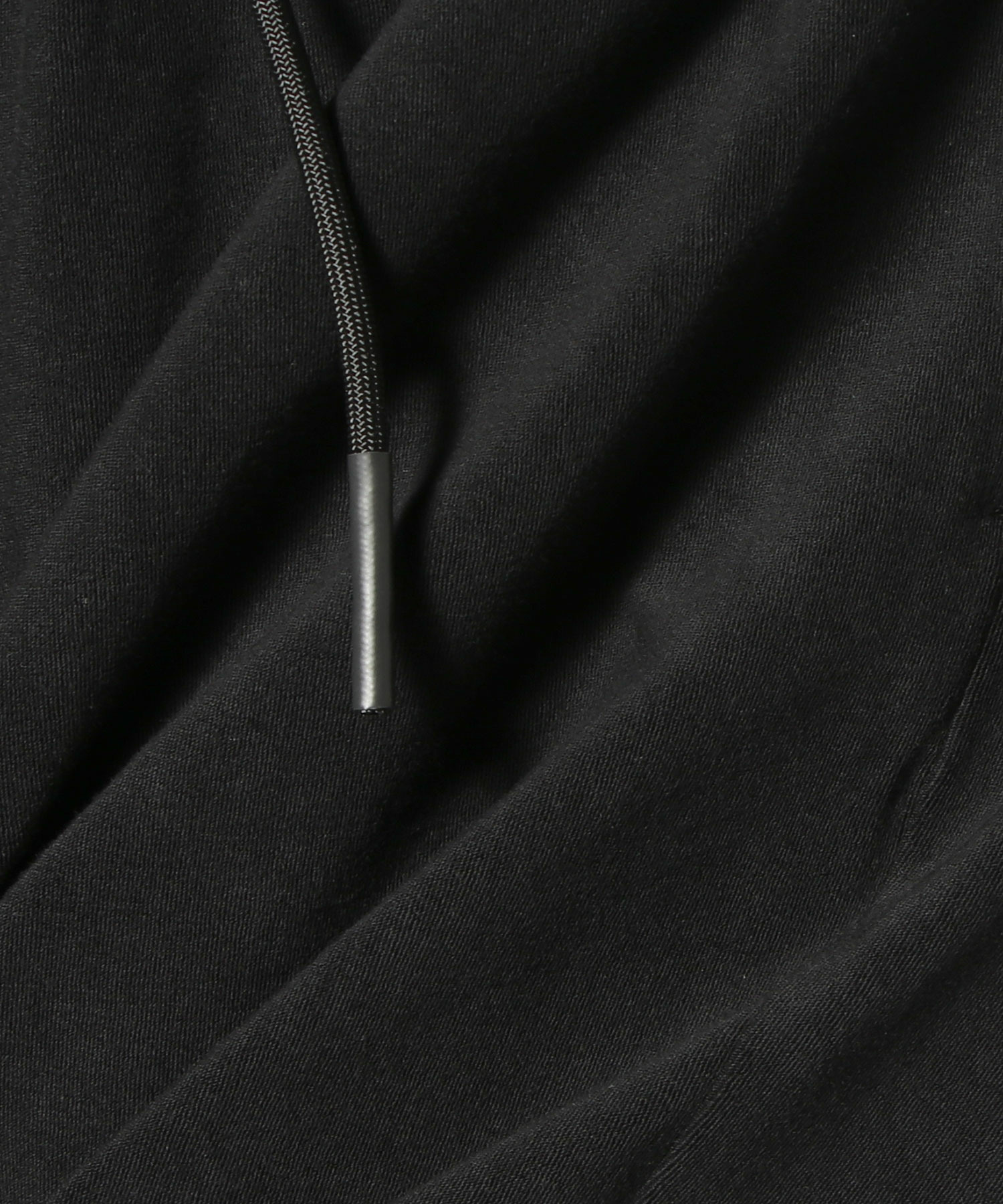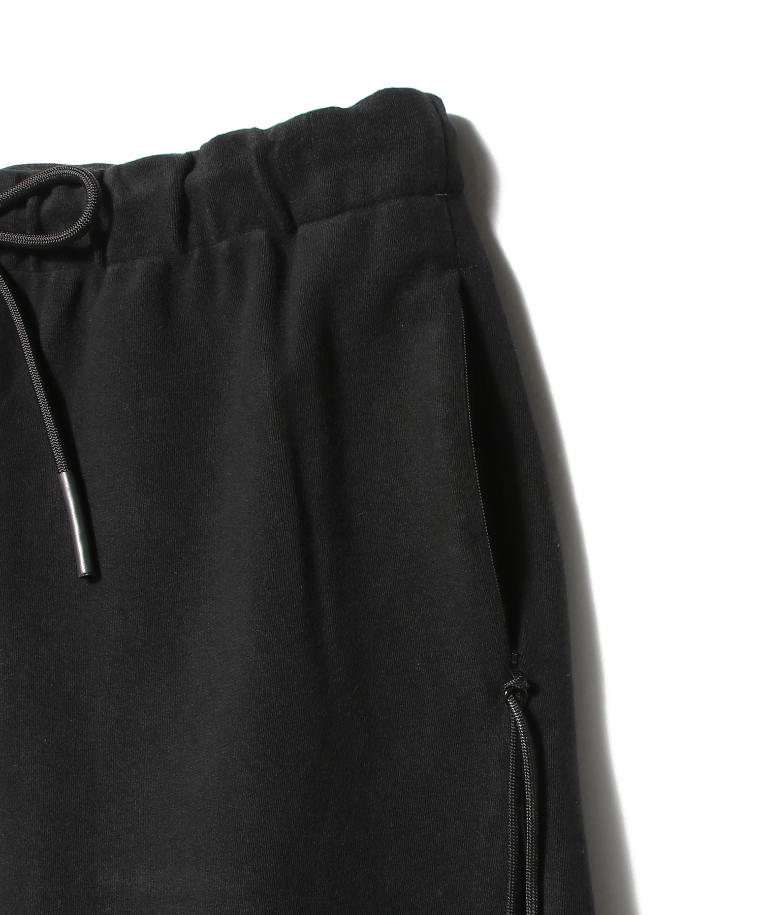 油分を含んだしっとりとした上質なタッチと、カジュアル見えしすぎない繊細なパイル目が特徴。サイドにジップを配し、片側だけにつけられた紐がデザインアクセントに。