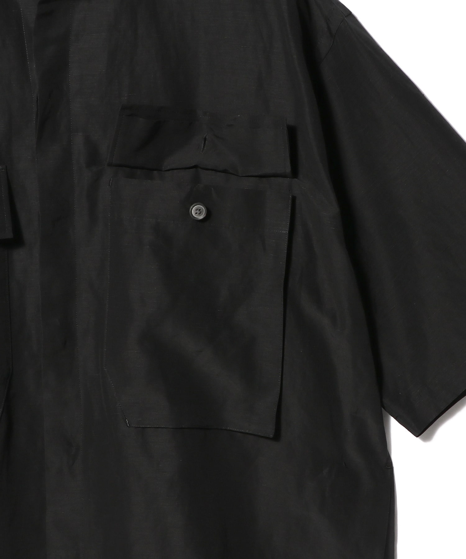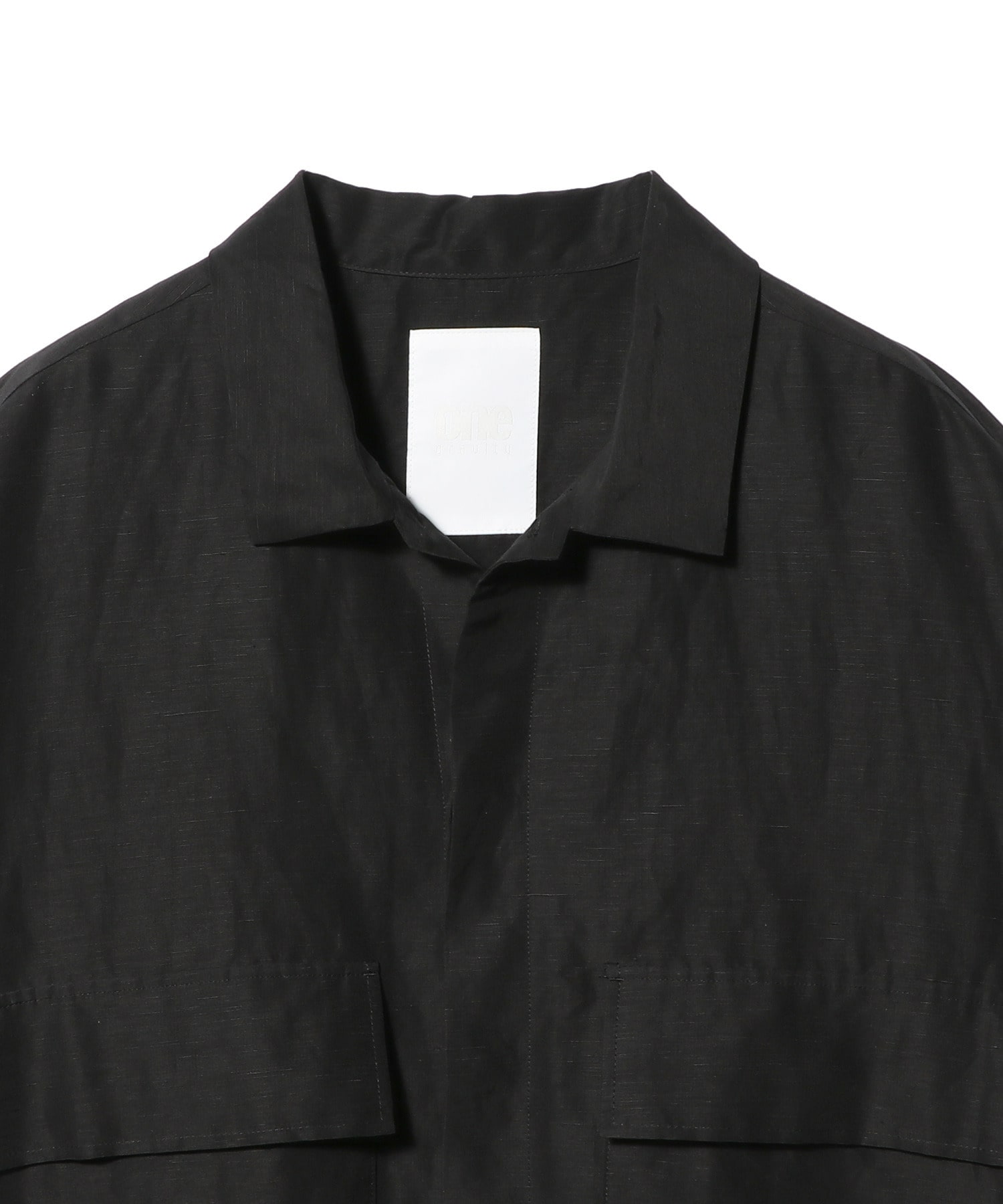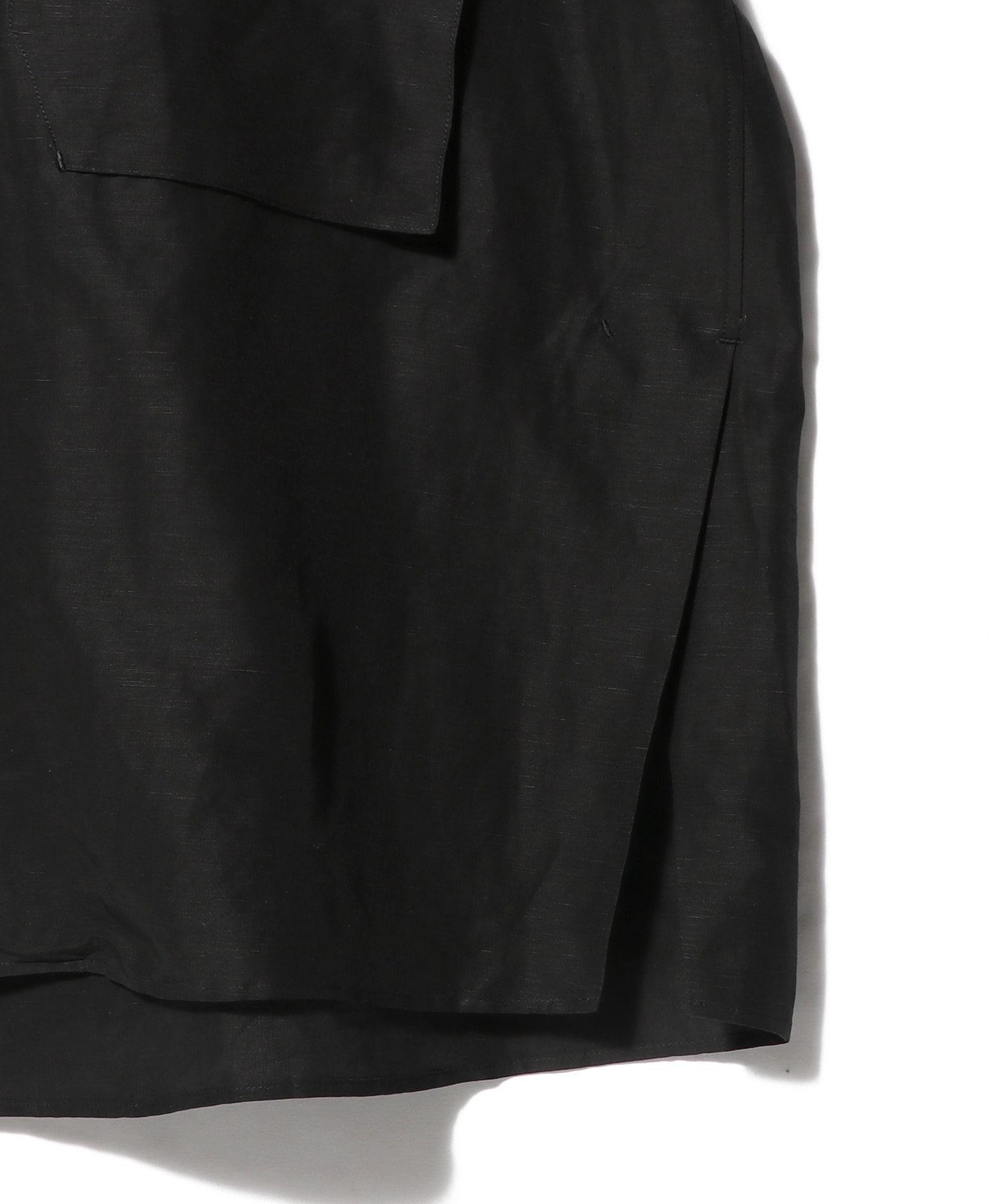 リネンをプラスすることで、ほどよいハリ感と上品な軽さが加わり、季節を問わず着用しやすい仕上がりです。玉虫色のように輝く奥行きのある表情も魅力のひとつで、動きに合わせてさりげなくニュアンスが変化します。フロントには大き目のポケットを配し存在感のある一着に。