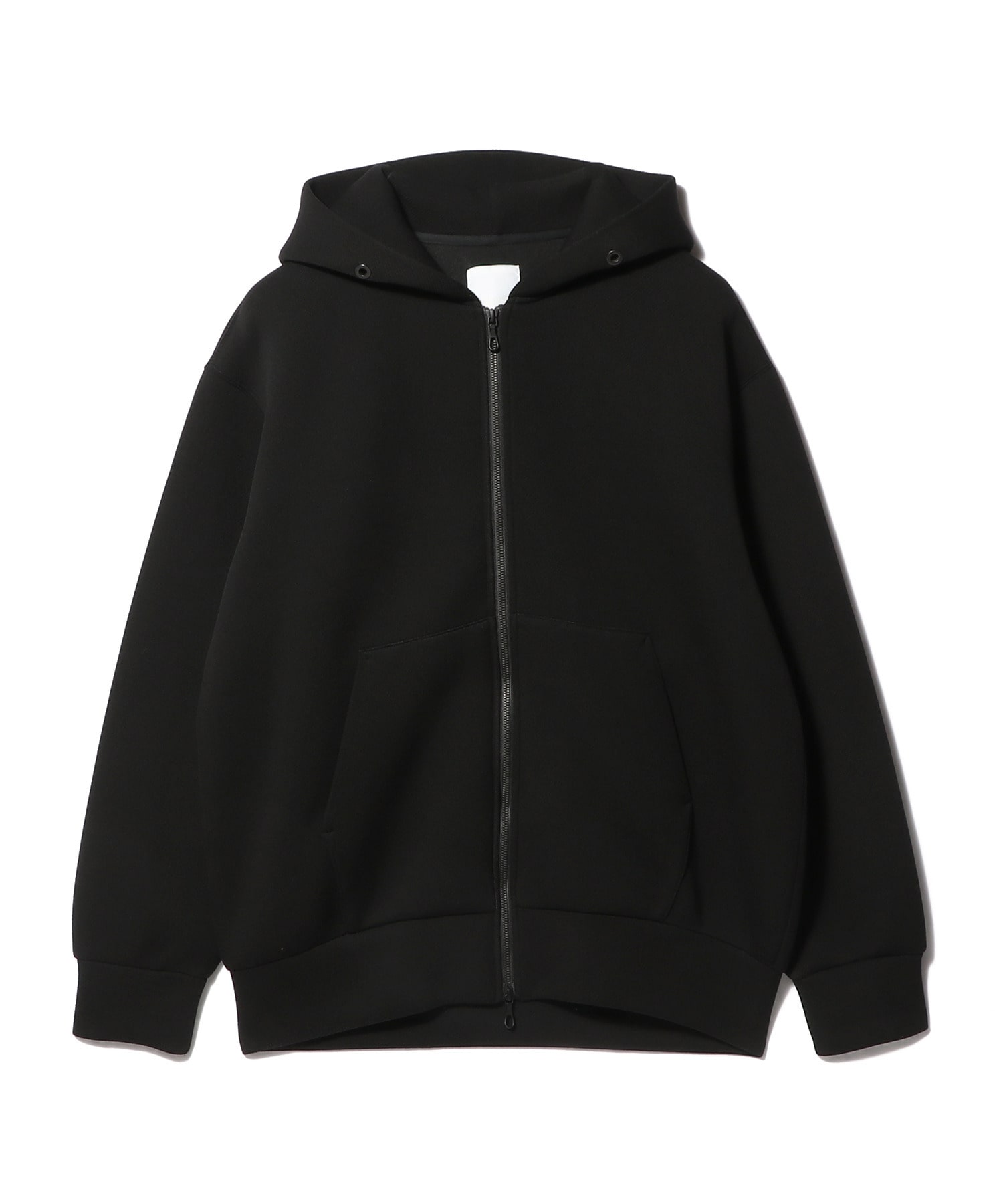 素材のハリを活かし、フードがくたっとならず顔周りに美しく立ち上がるよう設計されています。 単品使いはもちろん、同素材のパンツとのセットアップスタイルは、素材のユニークさが際立つおすすめのコーディネートです。