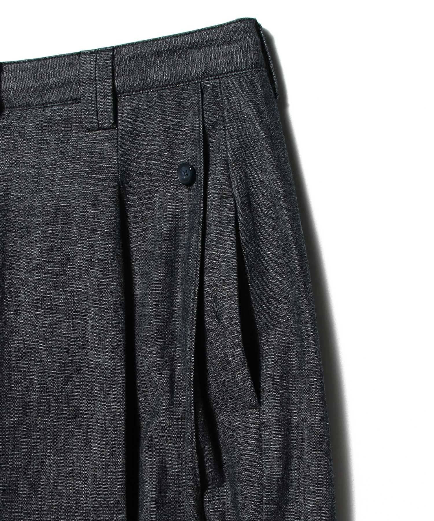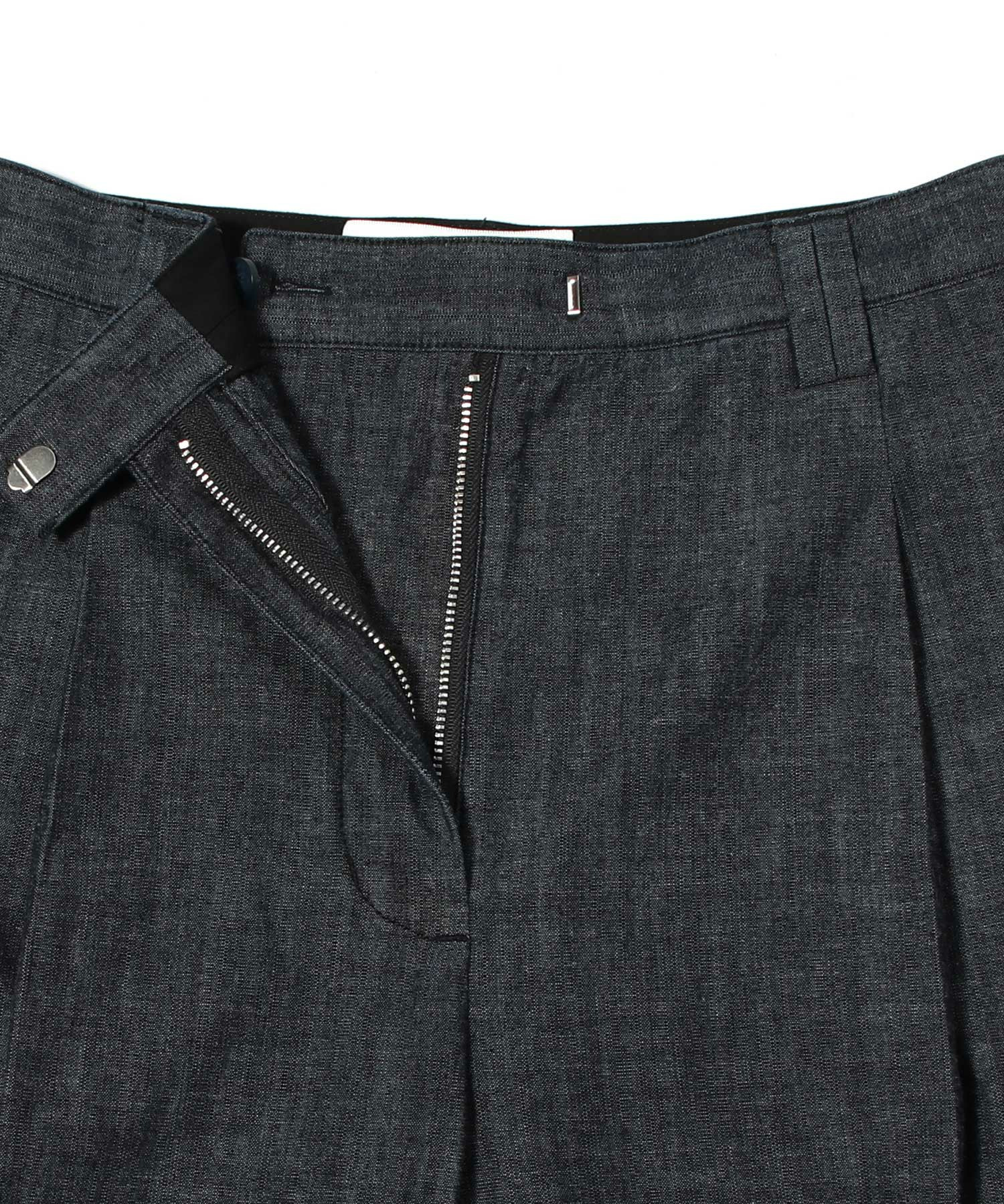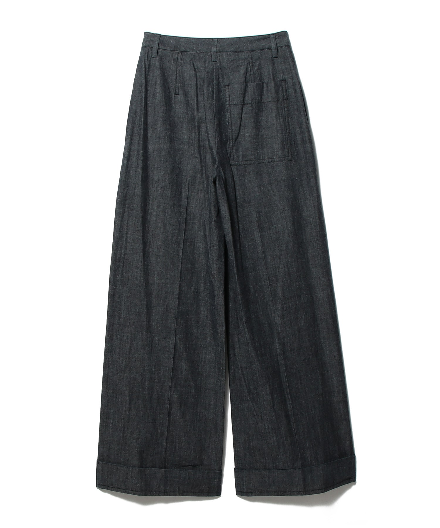 軽やかなシャンブレー生地を使用したワイドレッグパンツ。