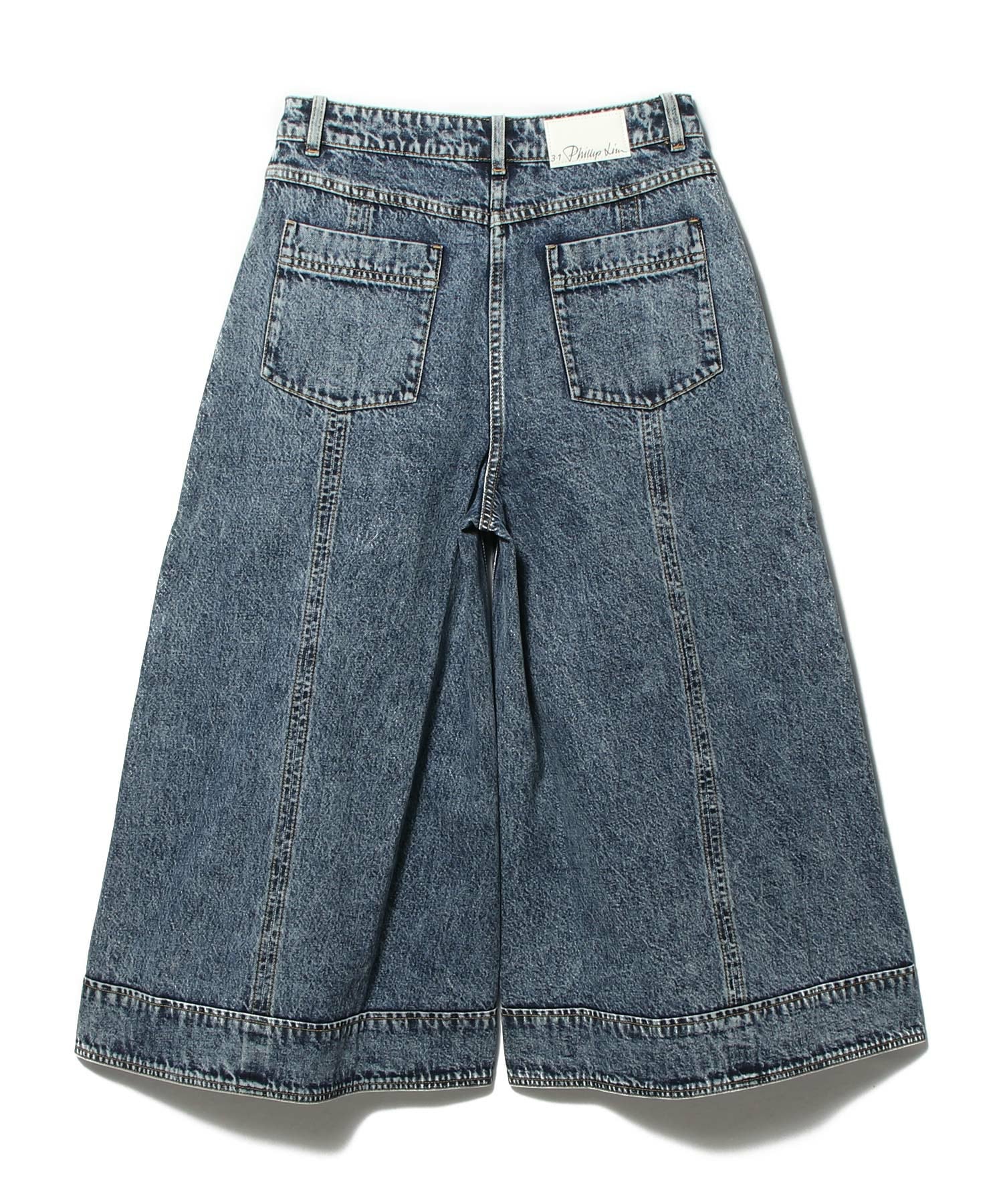 歩くたびにボリュームと動きを生み出す、彫刻的なインバーテッドプリーツが特徴。ヴィンテージ風のウォッシュ加工を施したオーセンティックなコットンデニムを使用し、クラシックなテーラリングを彷彿とさせるシルエットは、モダンな遊び心も取り入れています。