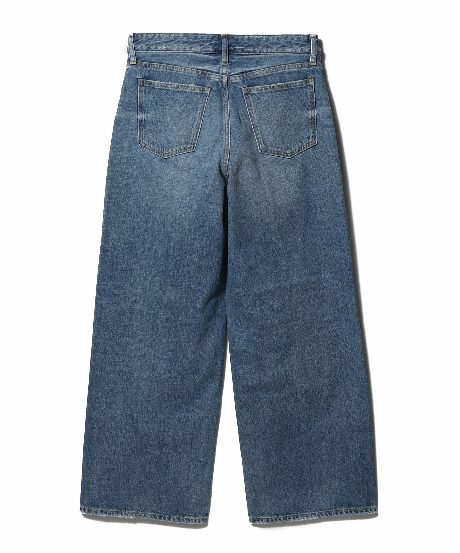 女性らしさを引き立てるワイドシルエットのデニムパンツ。
