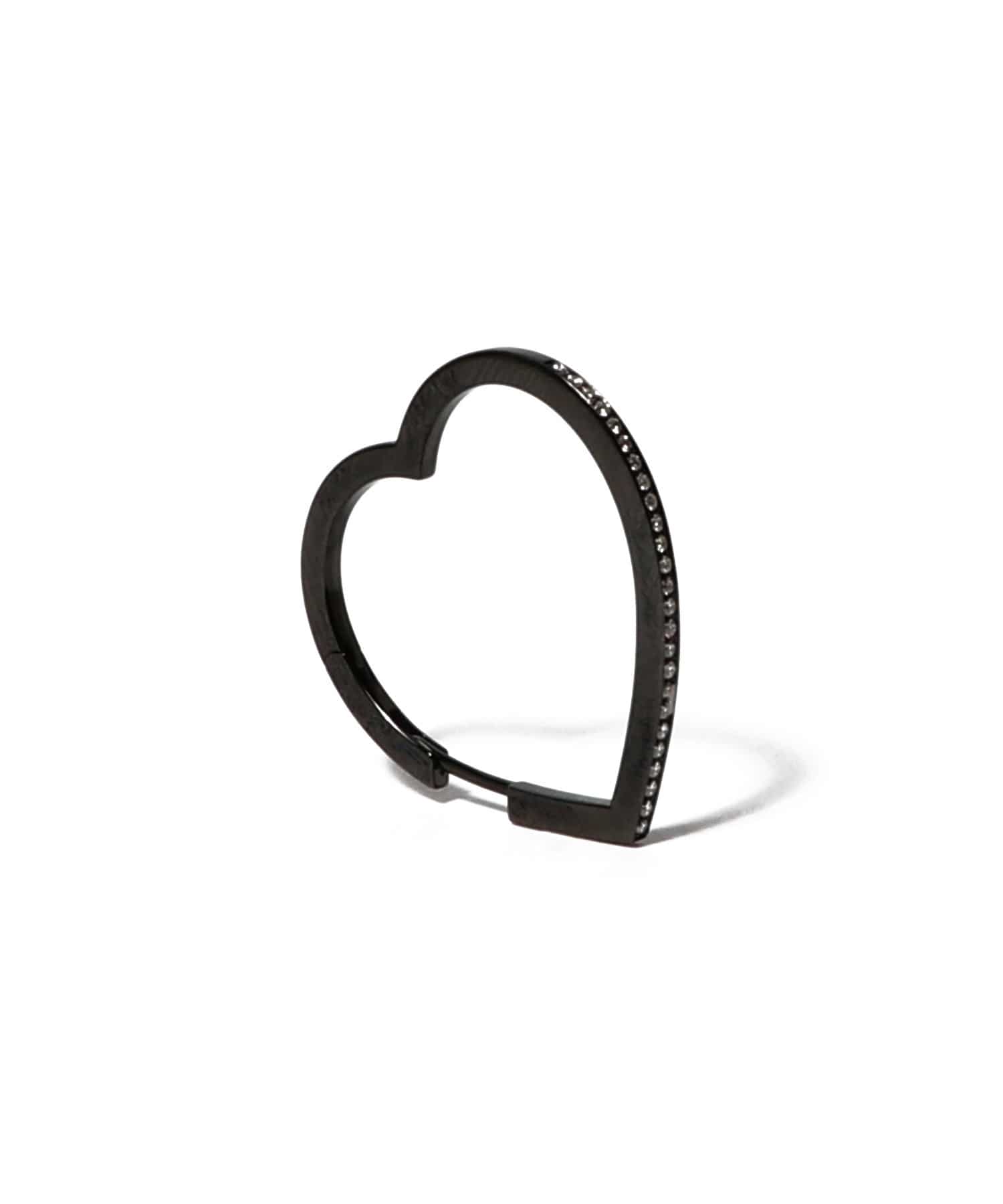 ハート状のデザインが特徴のダイヤをあしらった片耳用のピアス。