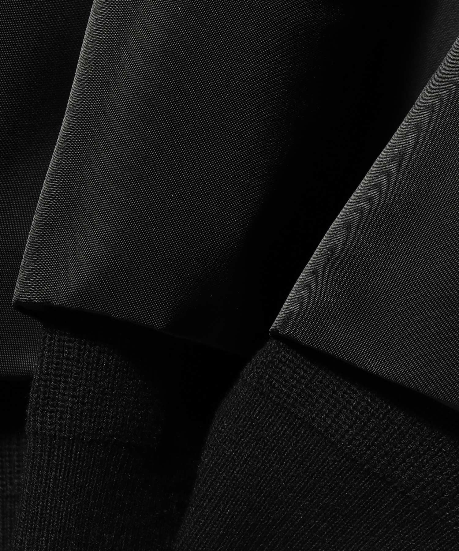光沢感のあるシェル素材に、アシンメトリーにカットされたヘムラインがモード感をプラスします。