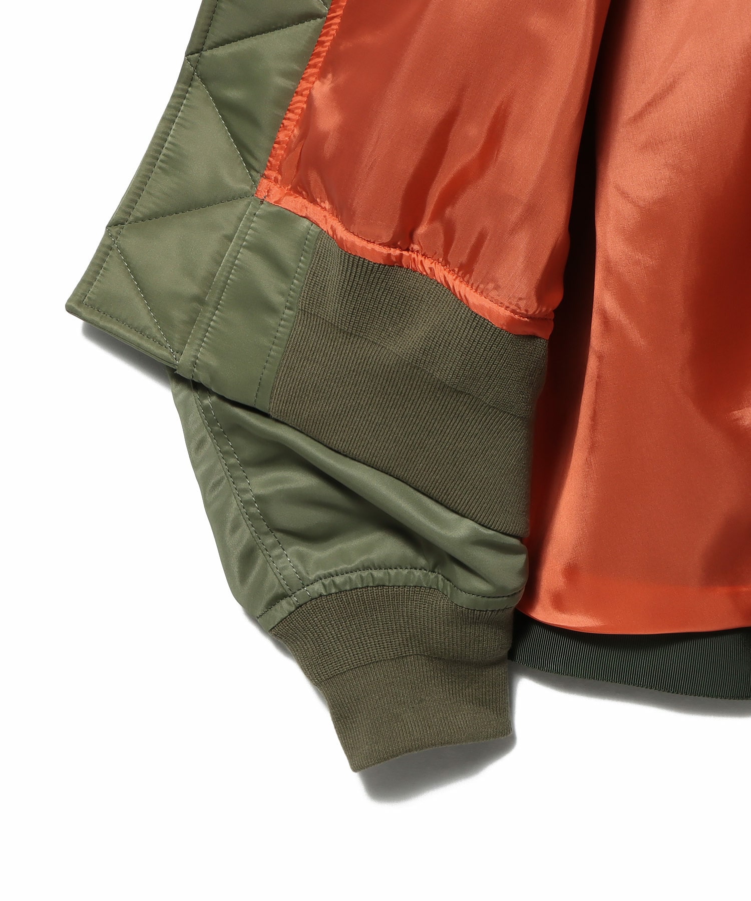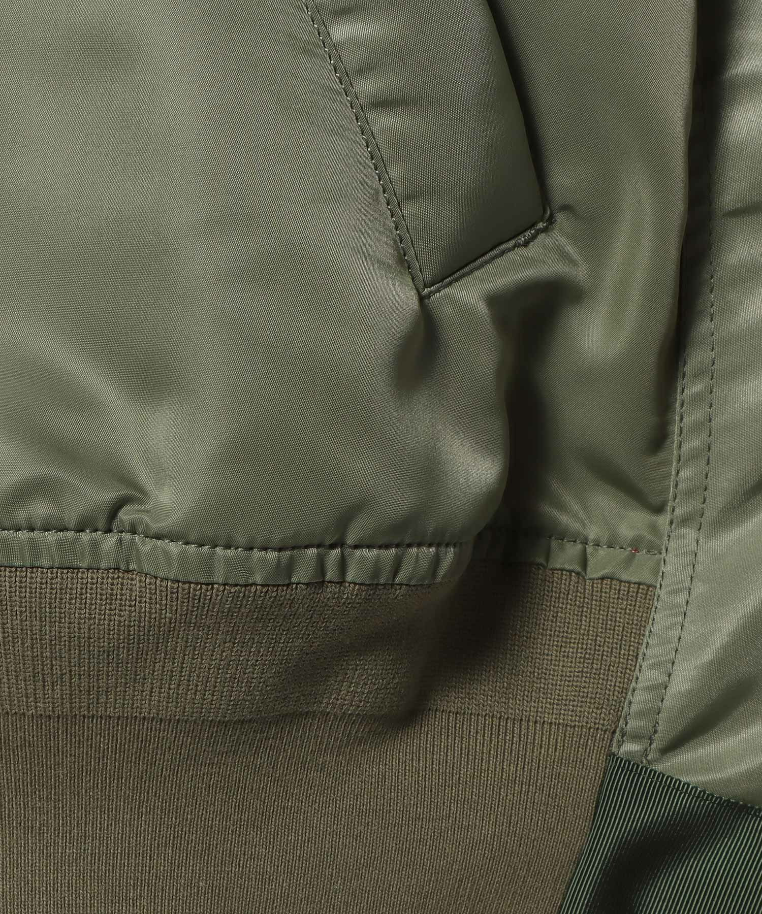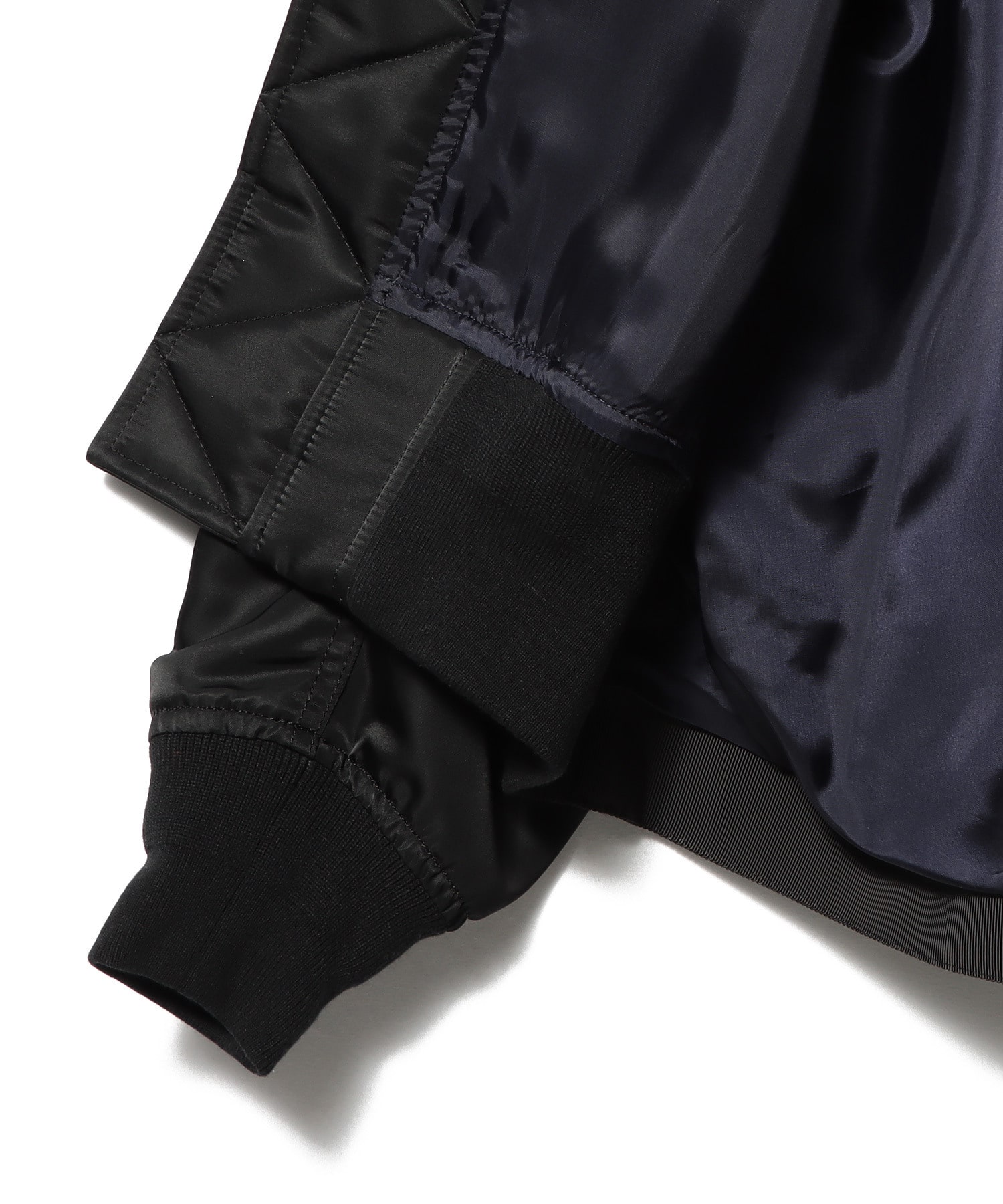 | 素材 | 表地:ナイロン100%、別布:ポリエステル55%、コットン44%、ポリウレタン1%、裏地:キュプラ100%、中綿:ポリエステル100% |