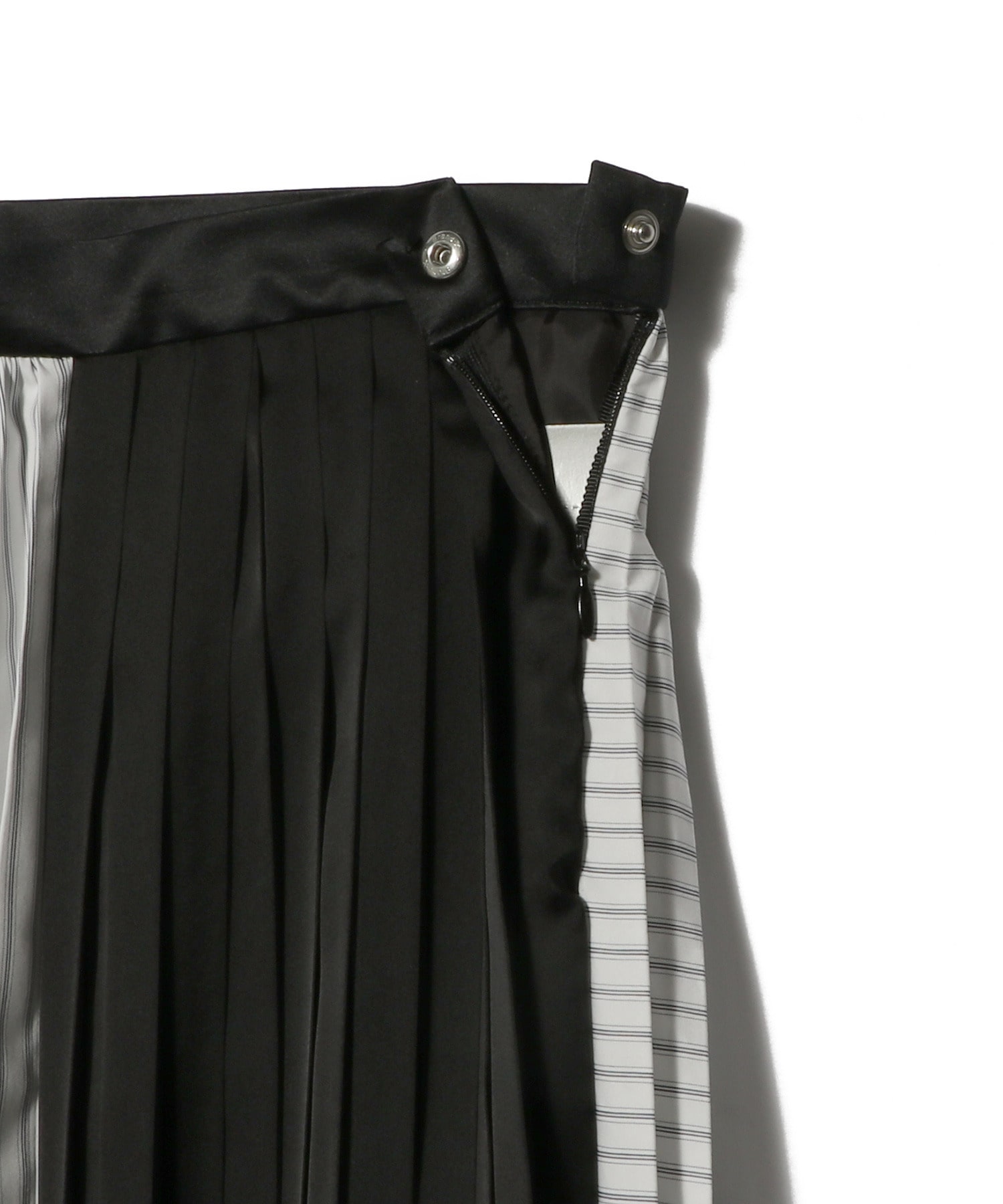 異素材ドッキングが印象的なプリーツスカート。