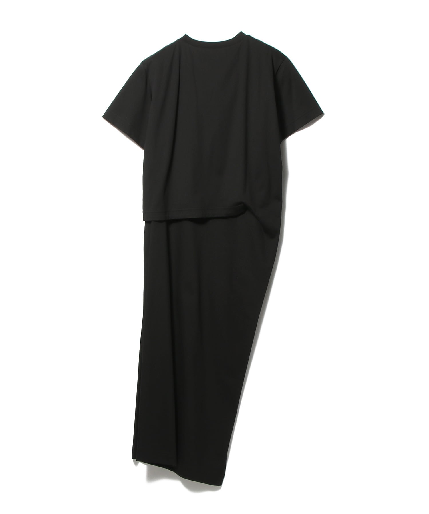 Tシャツとスカートを重ねたようなユニークなデザインが目を惹くレイヤード風ワンピース。