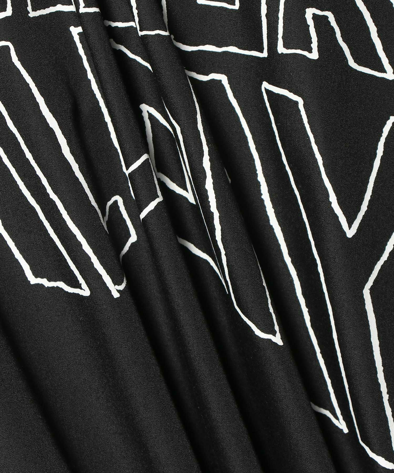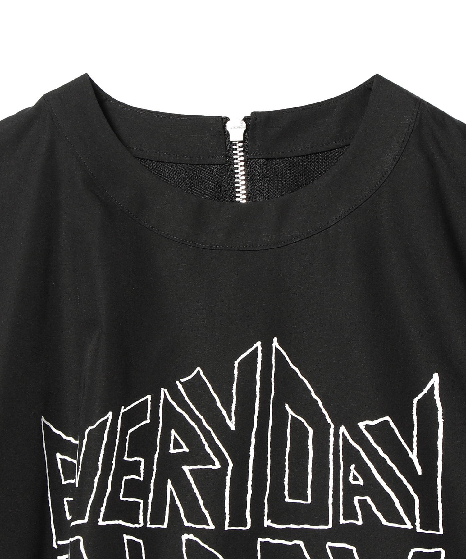 フロントに大胆なロゴ刺繍をあしらった、メッセージ性のあるアシンメトリーワンピース。