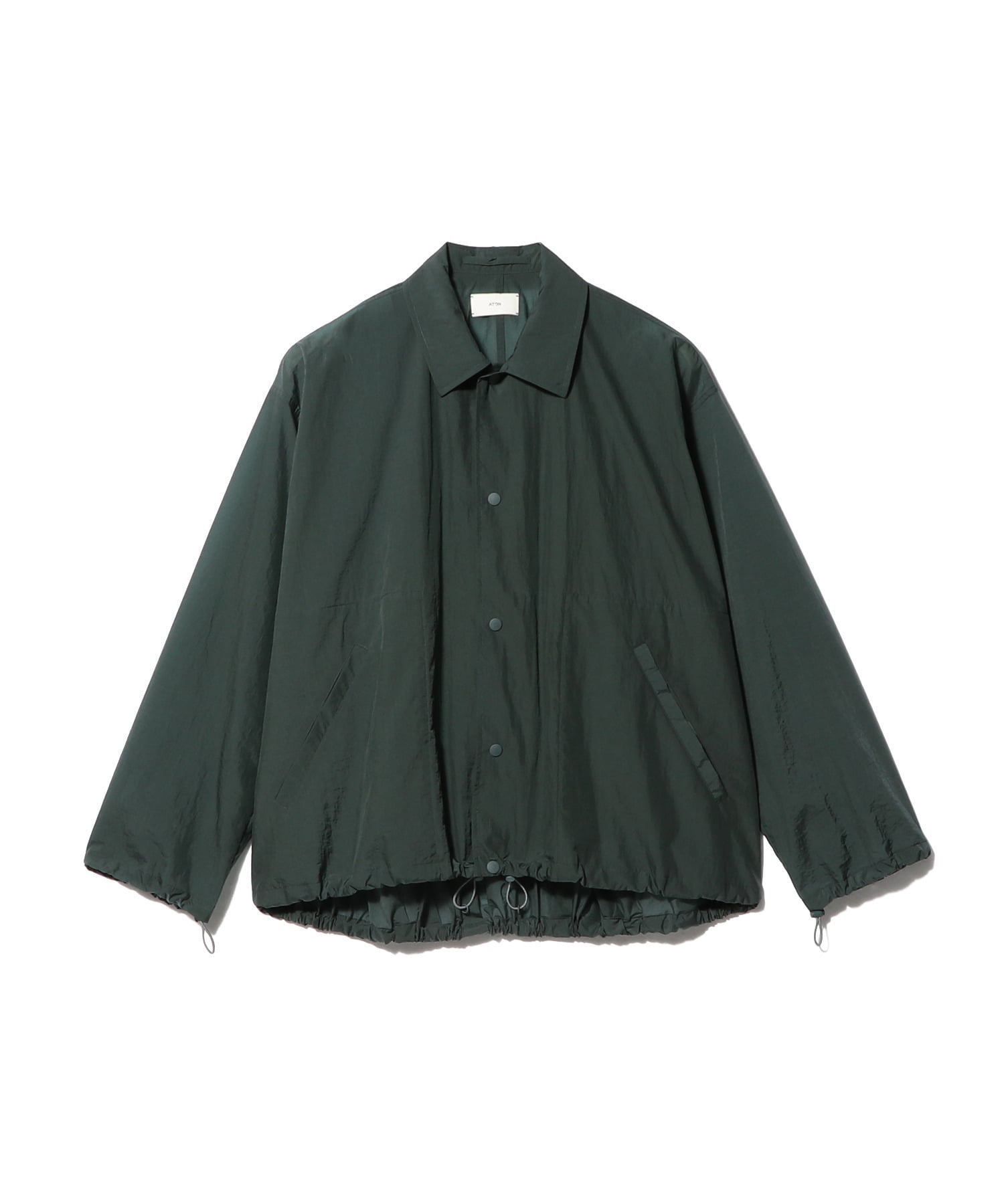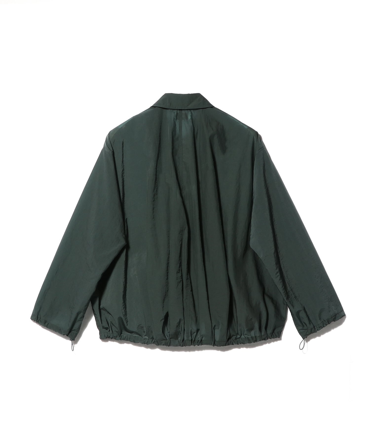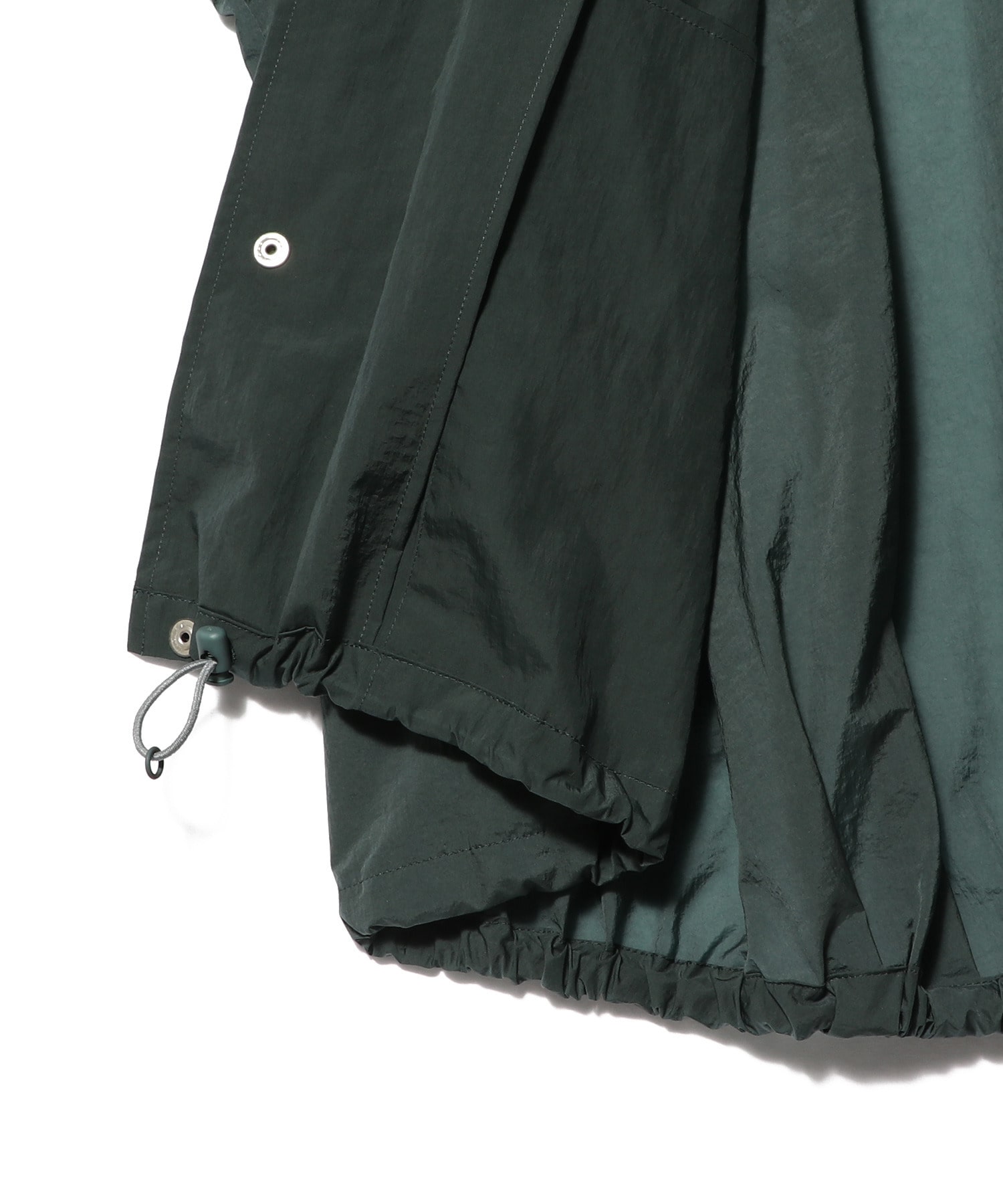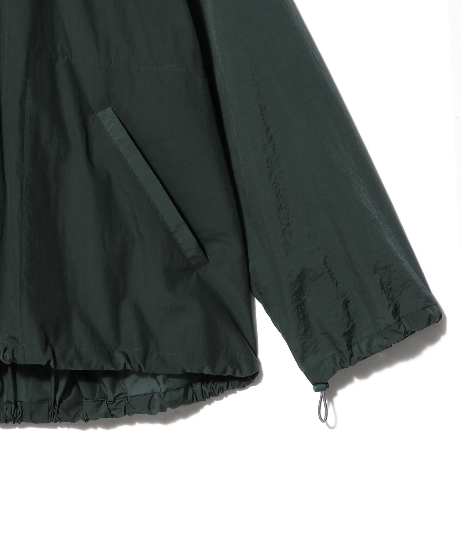 裾・袖口のドロストを絞って着丈感やシルエットの調整が可能。撥水機能のある素材で、レインジャケットとして持ち運びもできるパッカブルな仕様です。