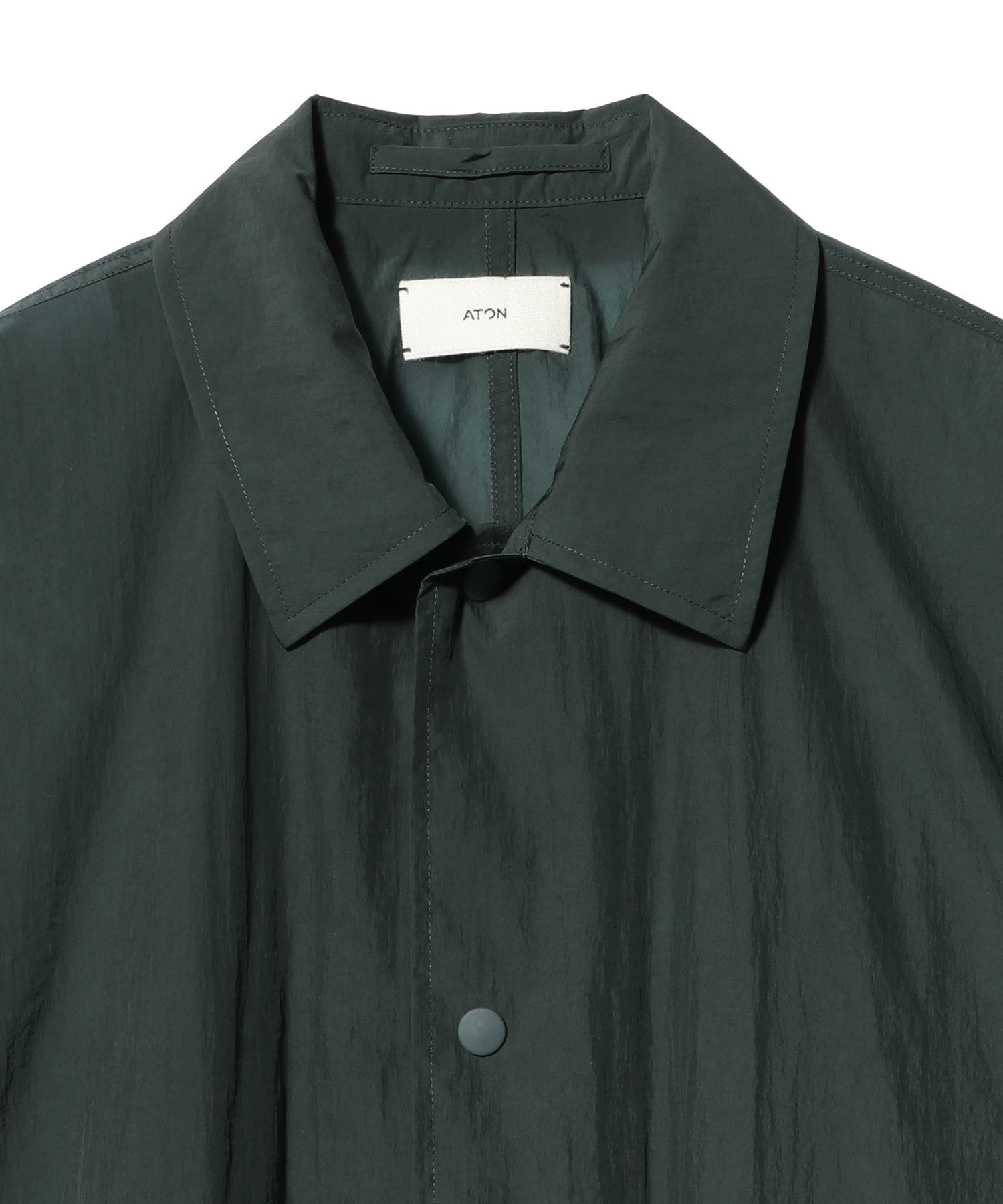 石川県にて、極細番手のナイロンの生糸を限界高密度に織り上げた薄手のタフタ素材を使用。通常の薄手のナイロンタフタ素材にはない、肌離れの良さと独特のハリコシが特徴です。強力な耐久撥水加工を施しているので、機能性にも優れているATONオリジナル素材です。