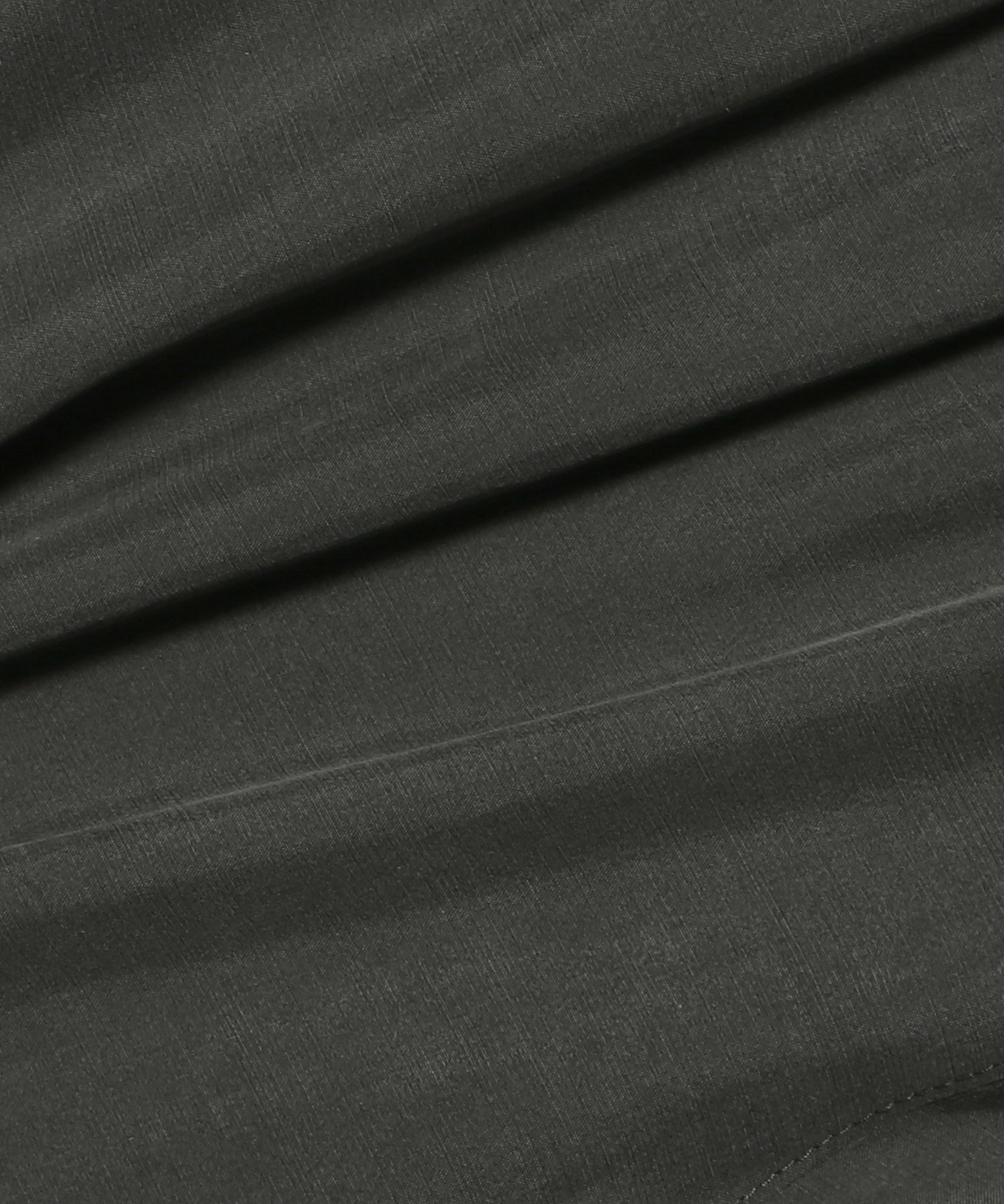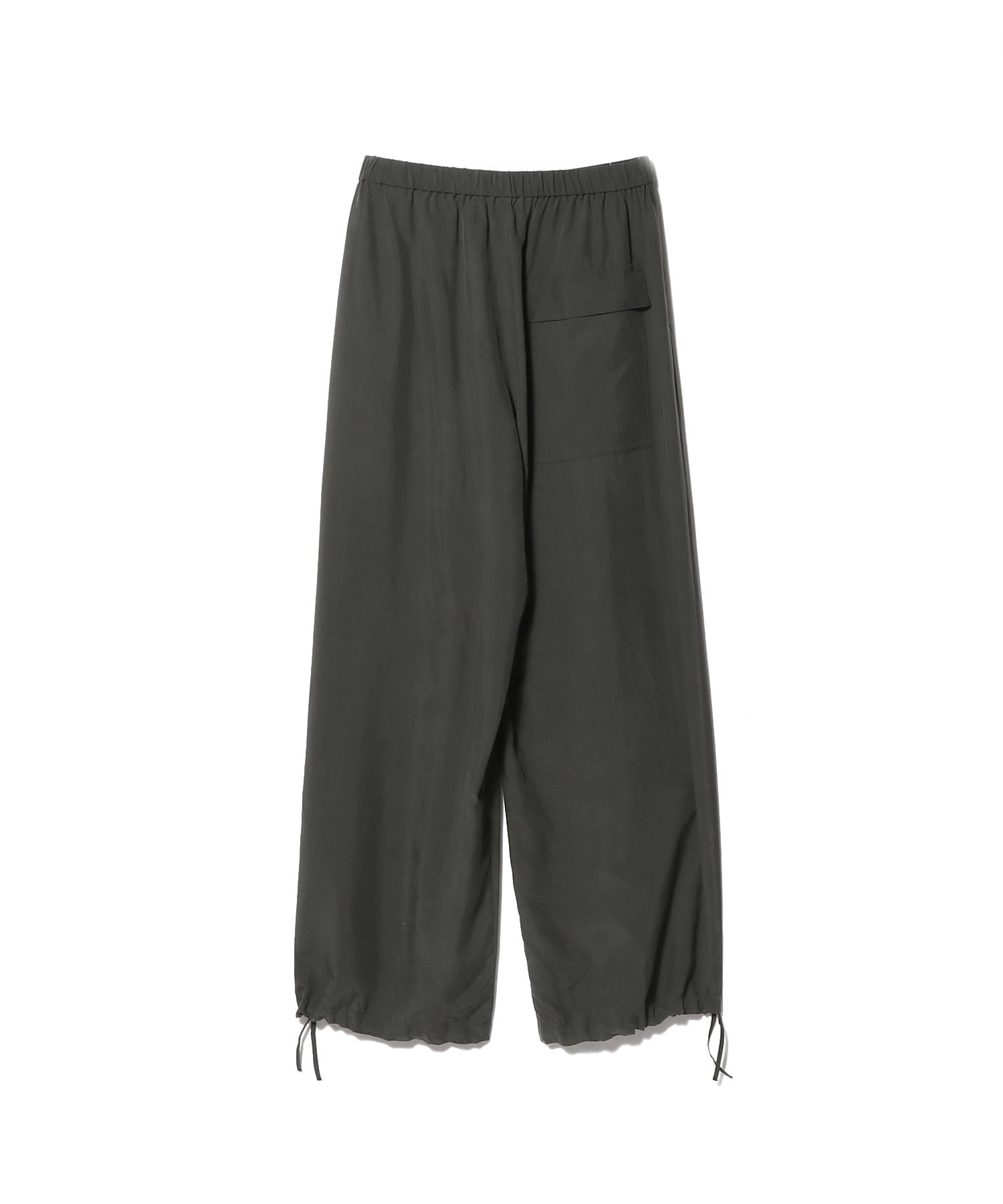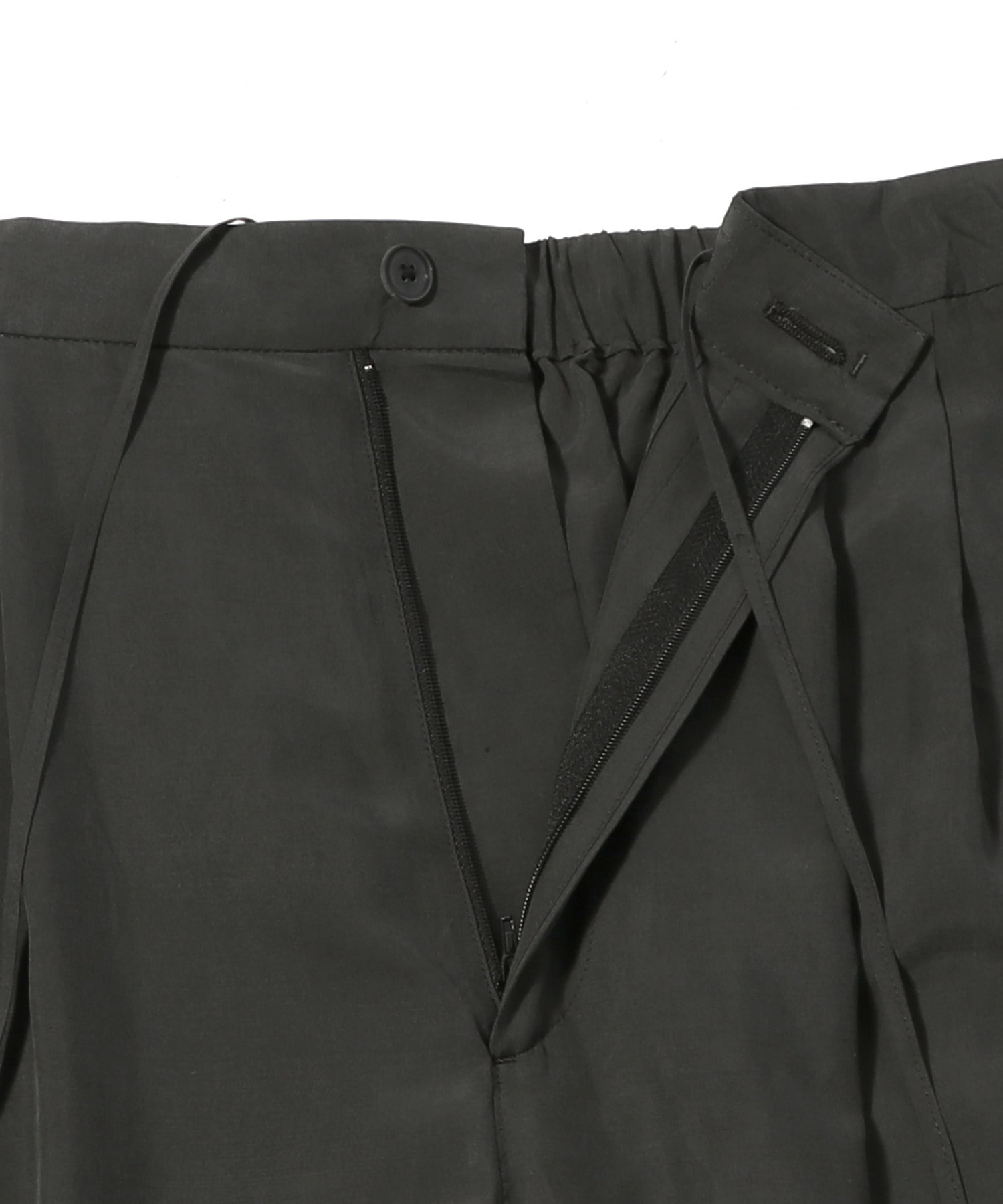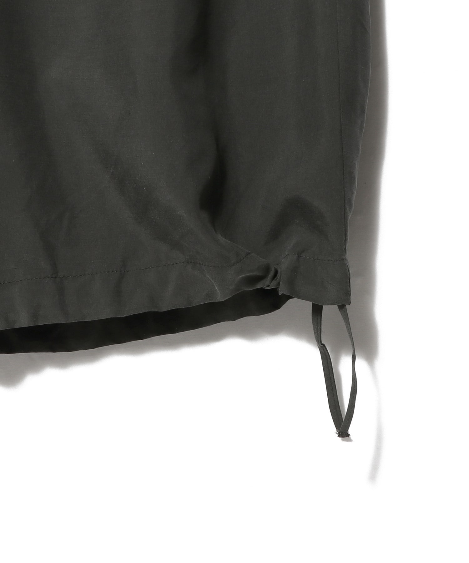 前ウエスト部分にはゴムギャザーの寄らない仕様でインしても決まりやくなっています。また、裾にドロストが入っているので絞って着用いただけます。