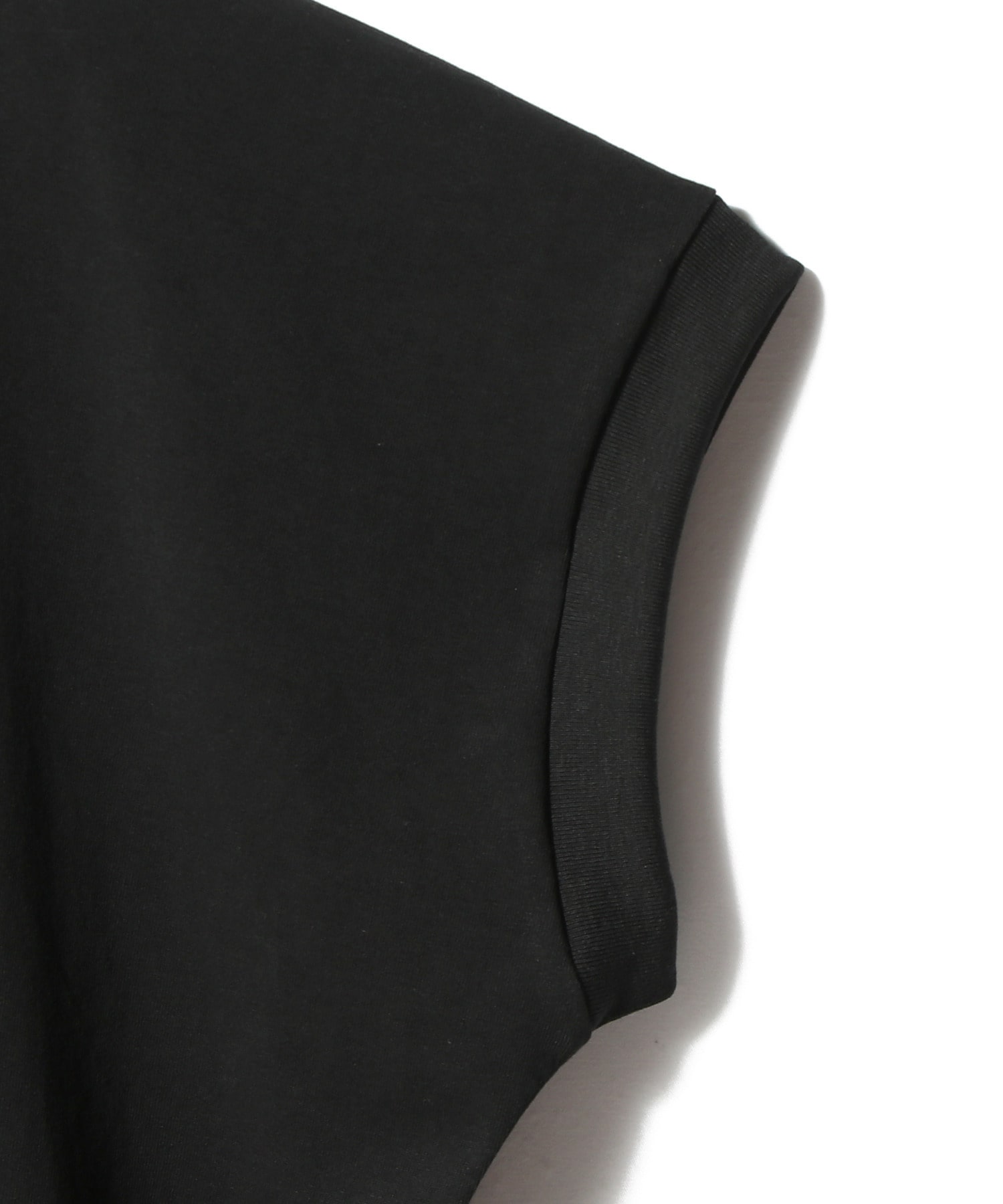 オーバーサイズのタンクトップの着丈をカットしたようなバランス。