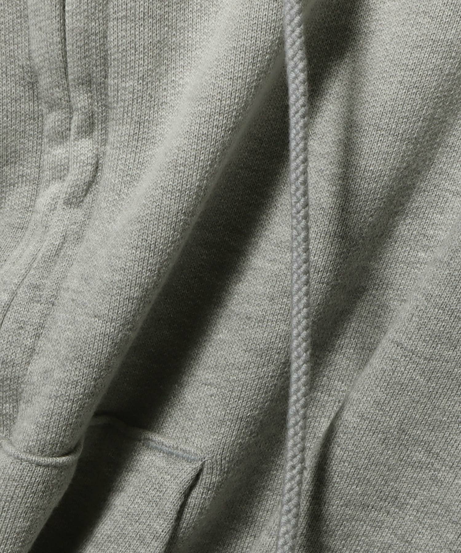 ピマコットンと弾力のある空紡糸を用いて編まれたスウェットパーカー。