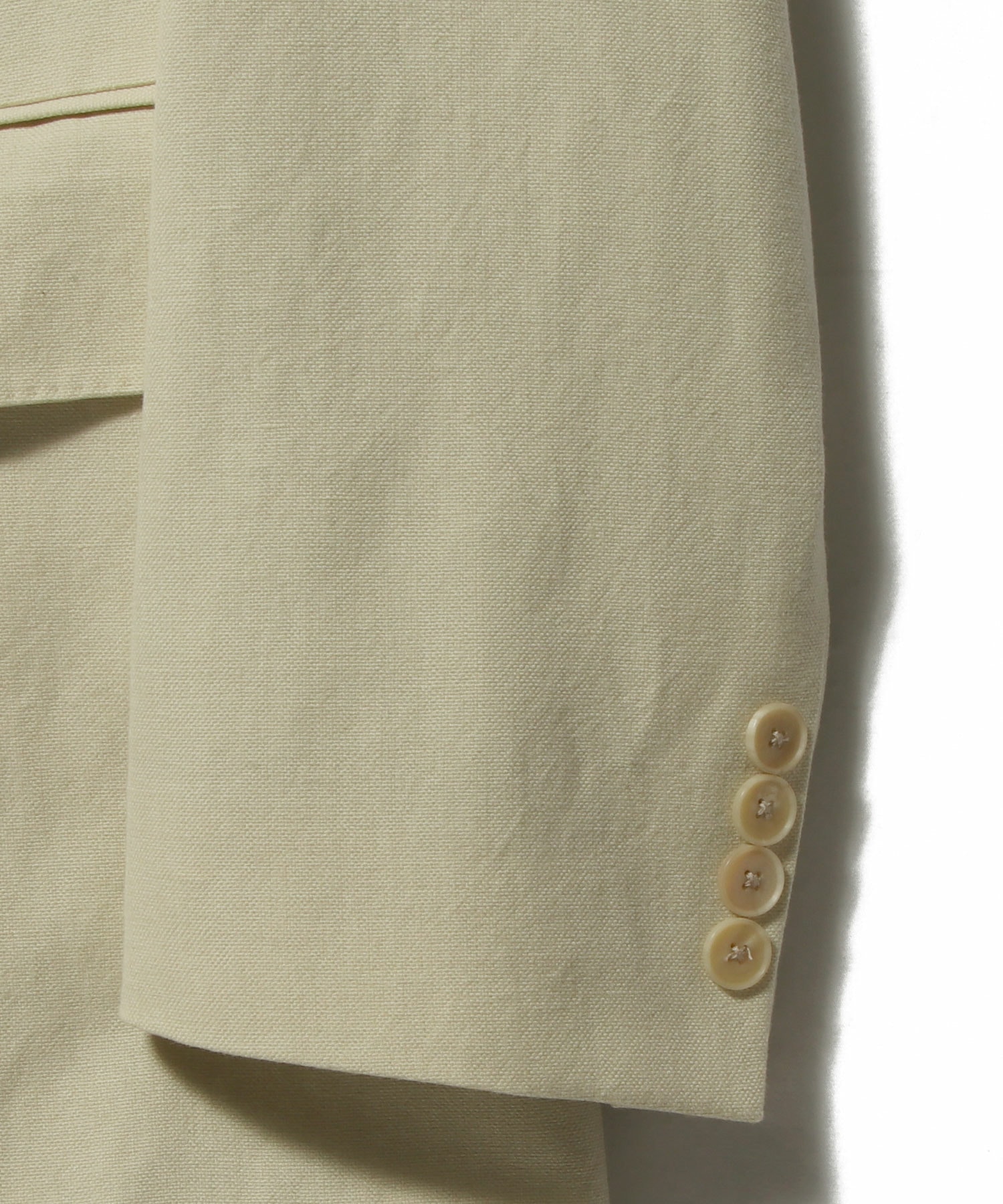 リラックスフィットにハーフライニング、シングルベント仕様で、軽やかさと上品さを兼ね備えた一着です。
