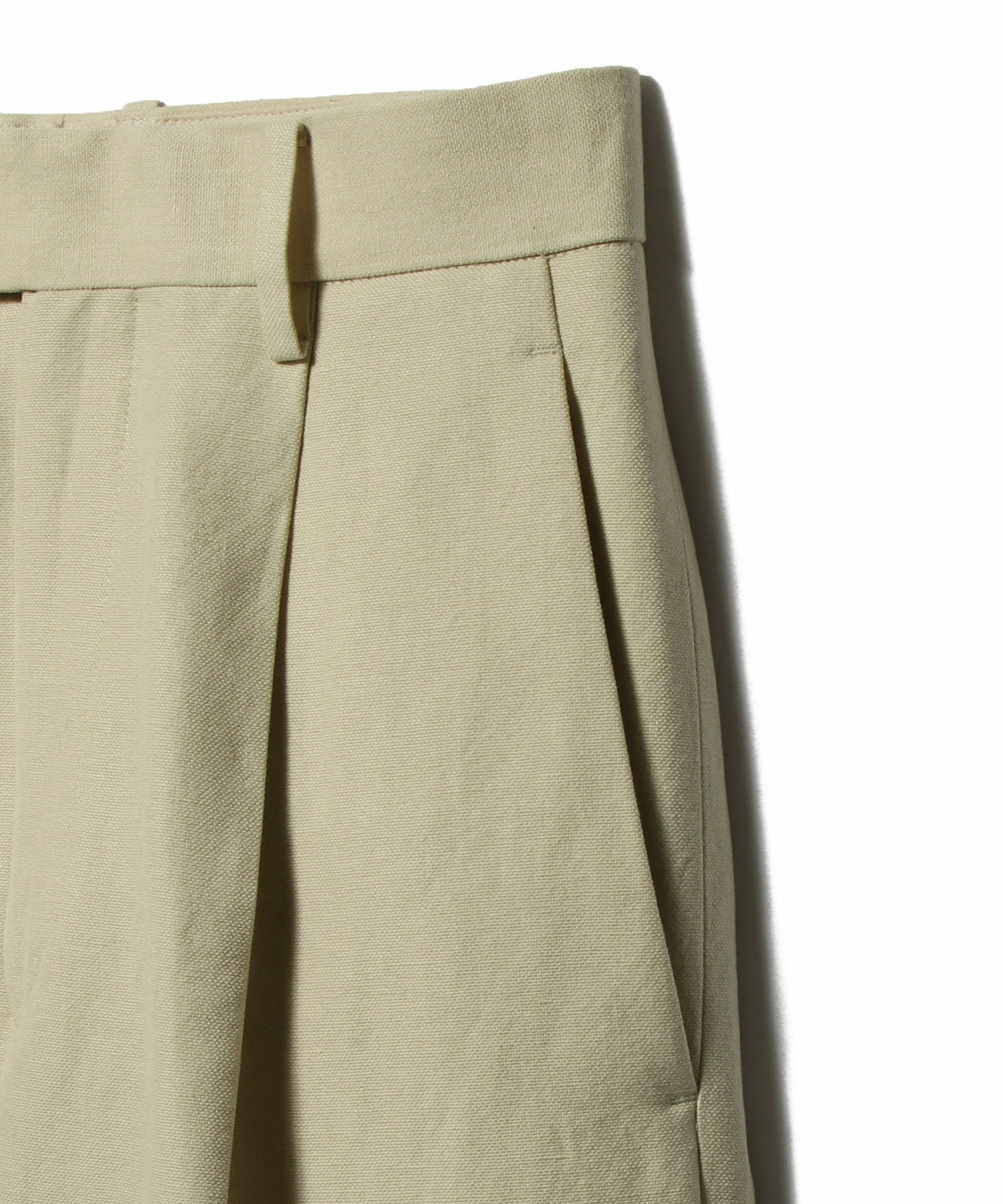 リラックスフィットのシルエットに1プリーツを施し、快適さと上品さを両立。